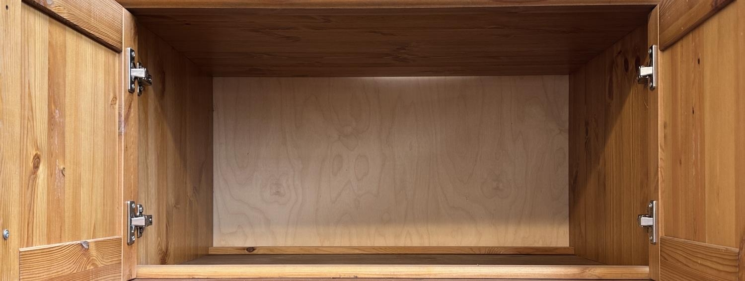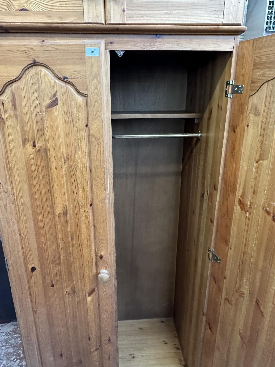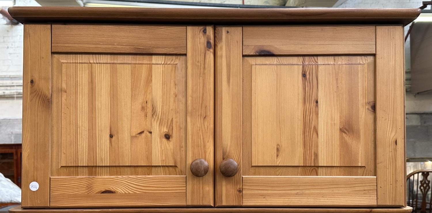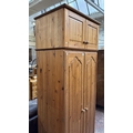 A pine double wardrobe with later added top - approx. 220cm high x 85cm wide x 55cm deep