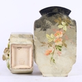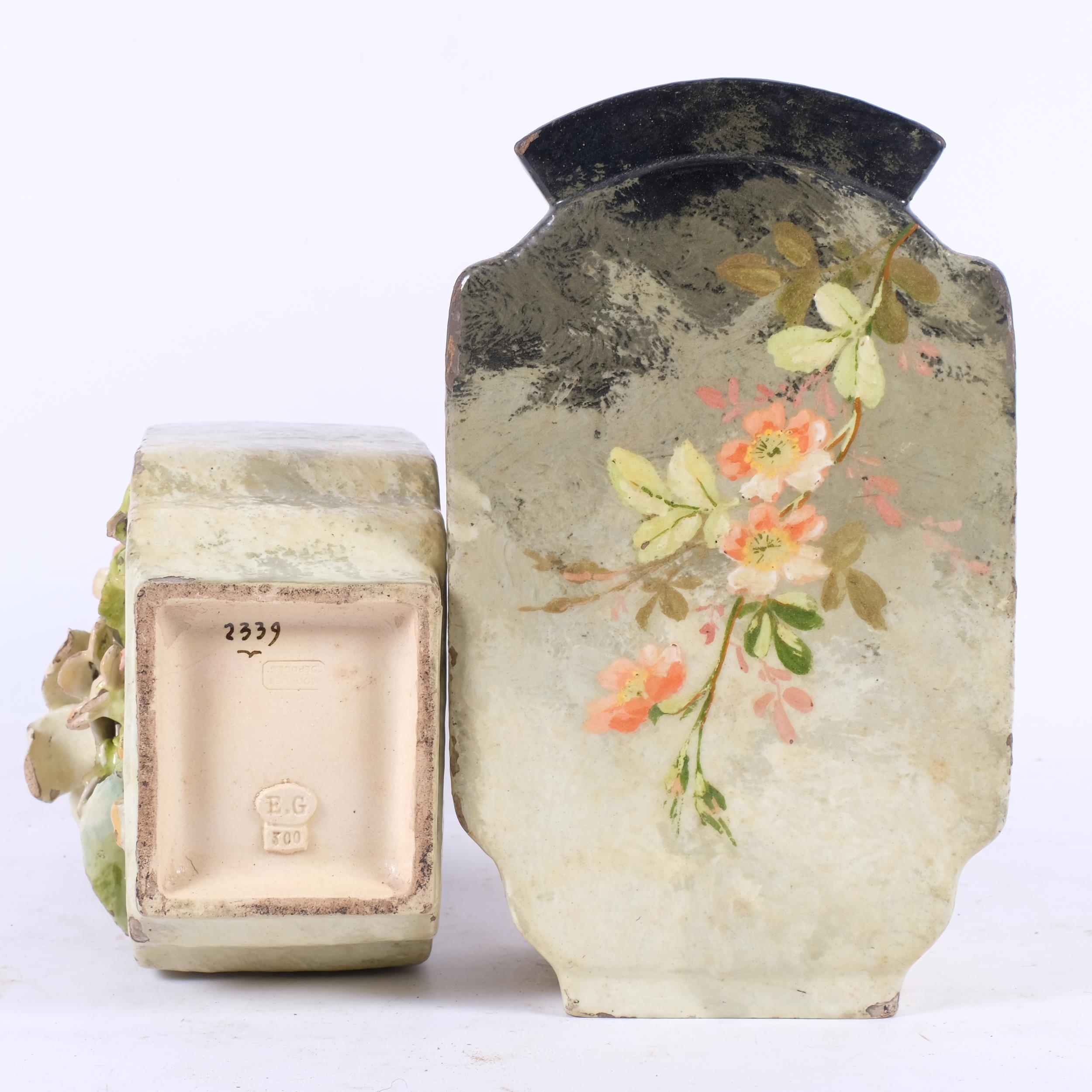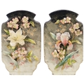 A pair of 19th century French Barbotine Majolica vases, by Edouard Gilies, with floral decoration and maker's marks to base