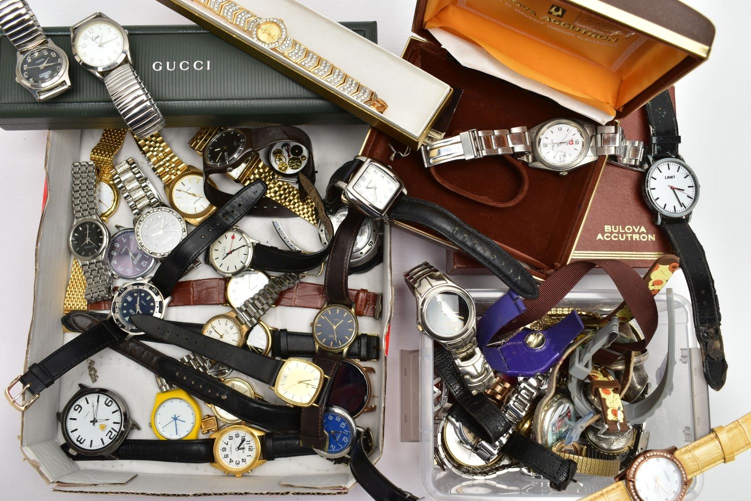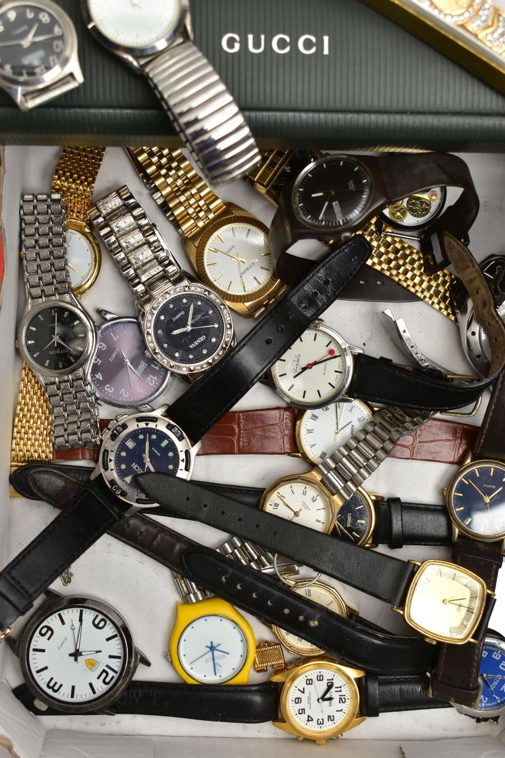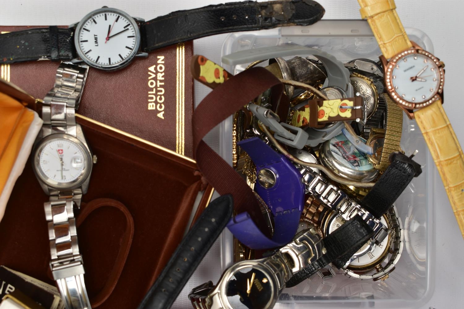 AN ASSORTMENT OF WRISTWATCHES, a Swiss Army quartz wristwatch with white dial, a Citron quartz wristwatch with blue dial, a Vintage Sekonda moonphase quartz watch with black case, together with further wristwatches (overall condition: conditions vary from good to poor, many watches AF, none tested)