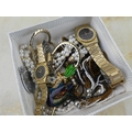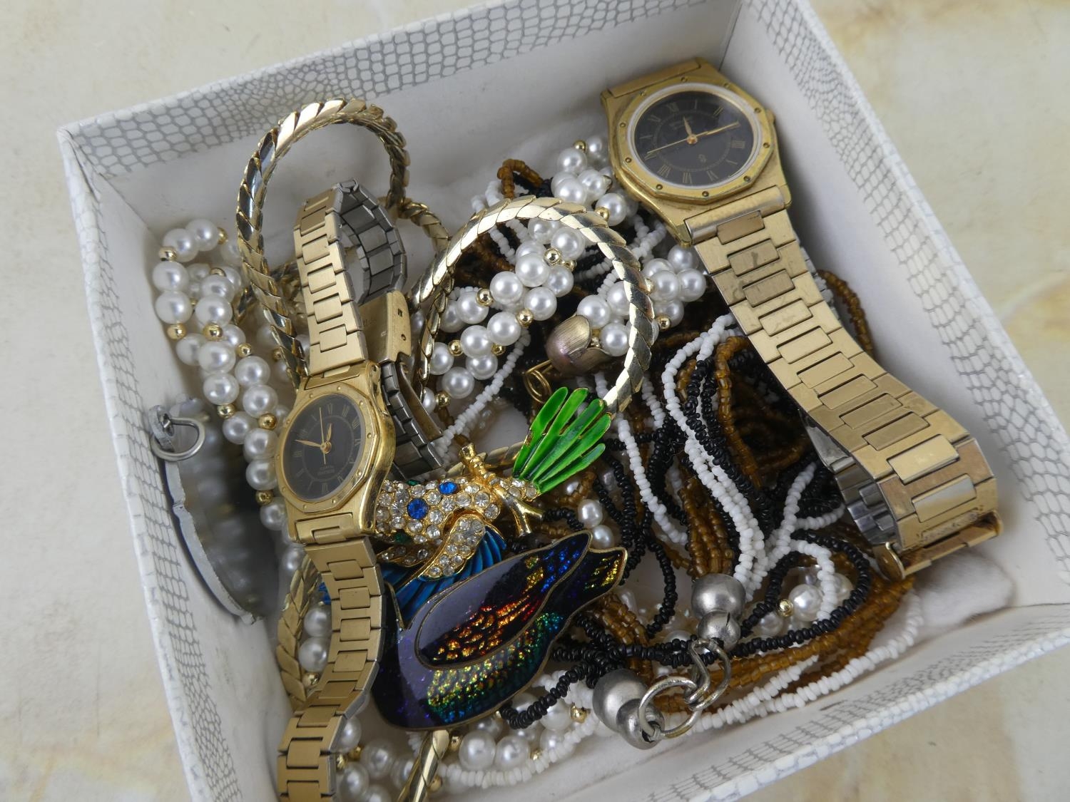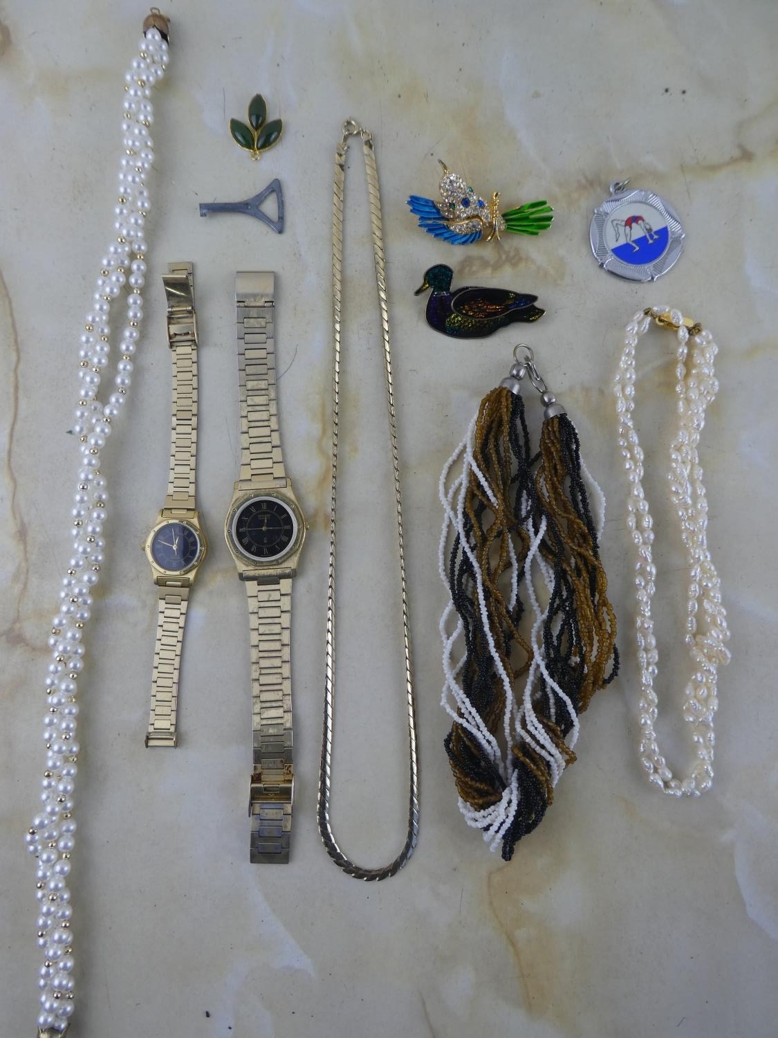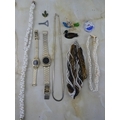 An assorted lot of vintage jewellery to include ladies and gents Sunlord Quartz wrist watches.