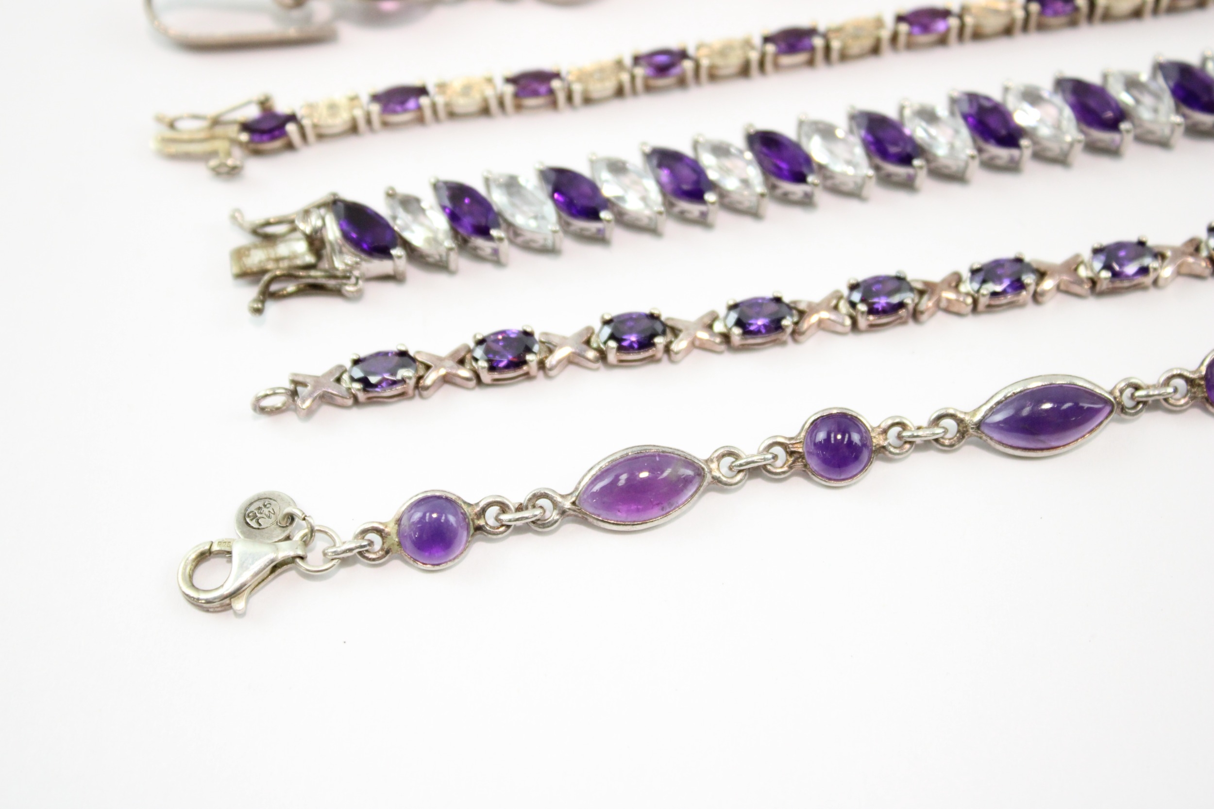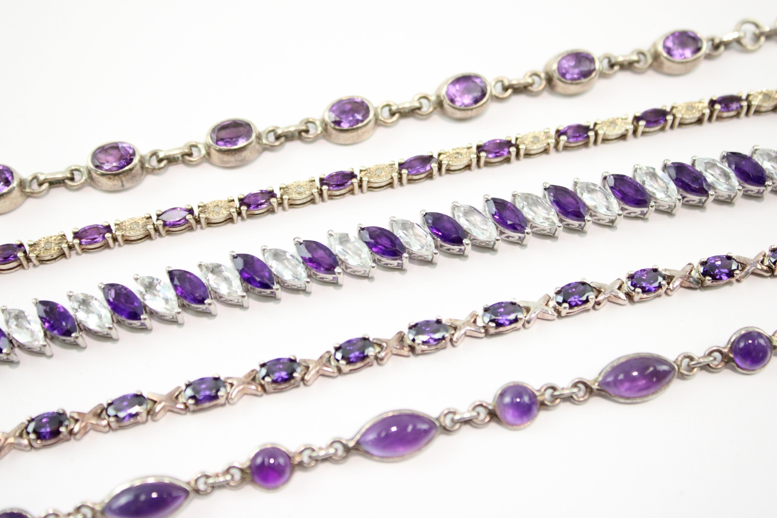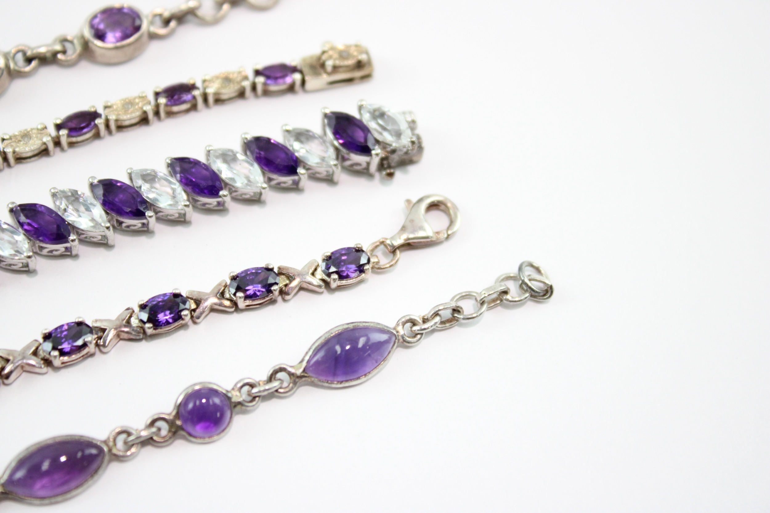 Collection of Sterling Silver Bracelet, inc. Gemstone, Amethyst, Tennis x 5 (64g)