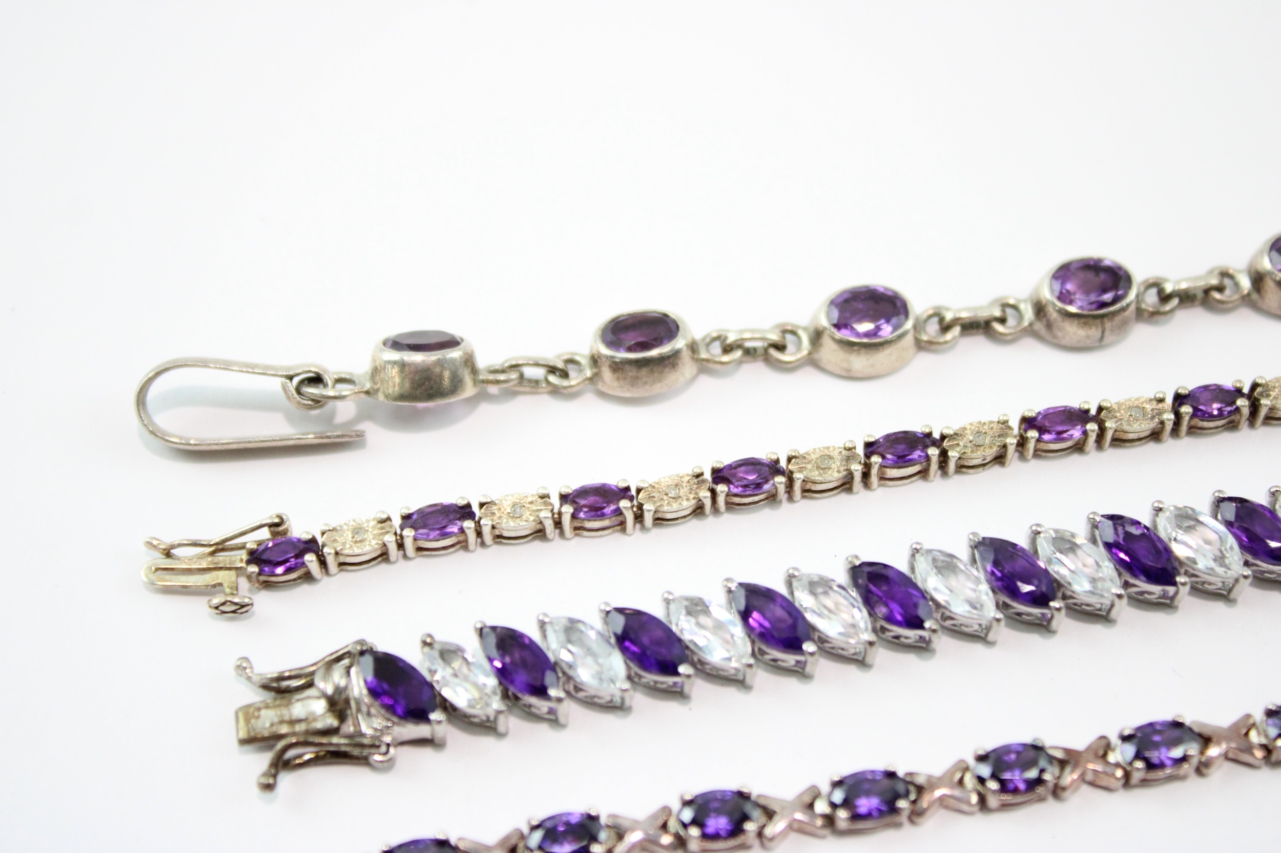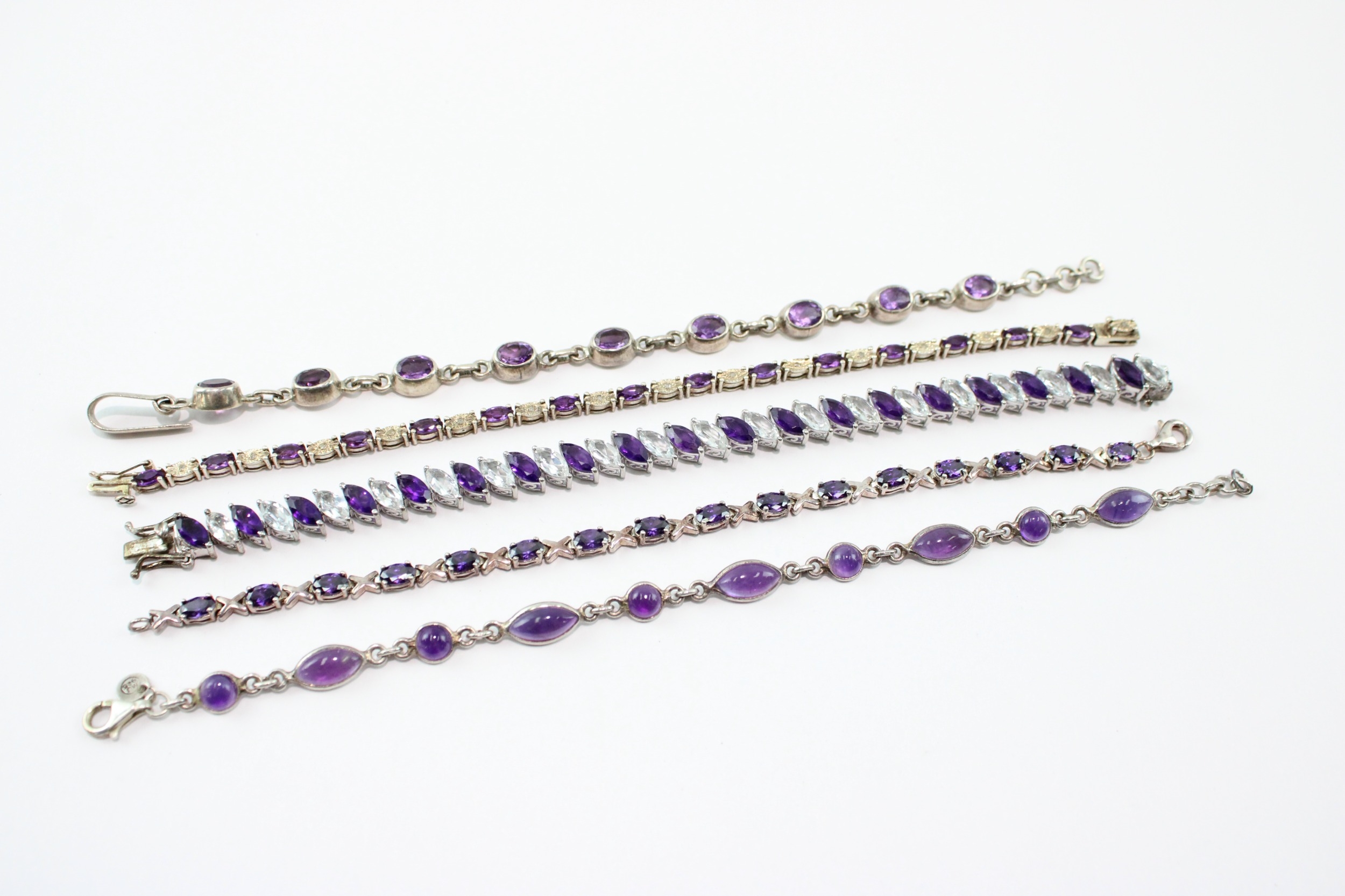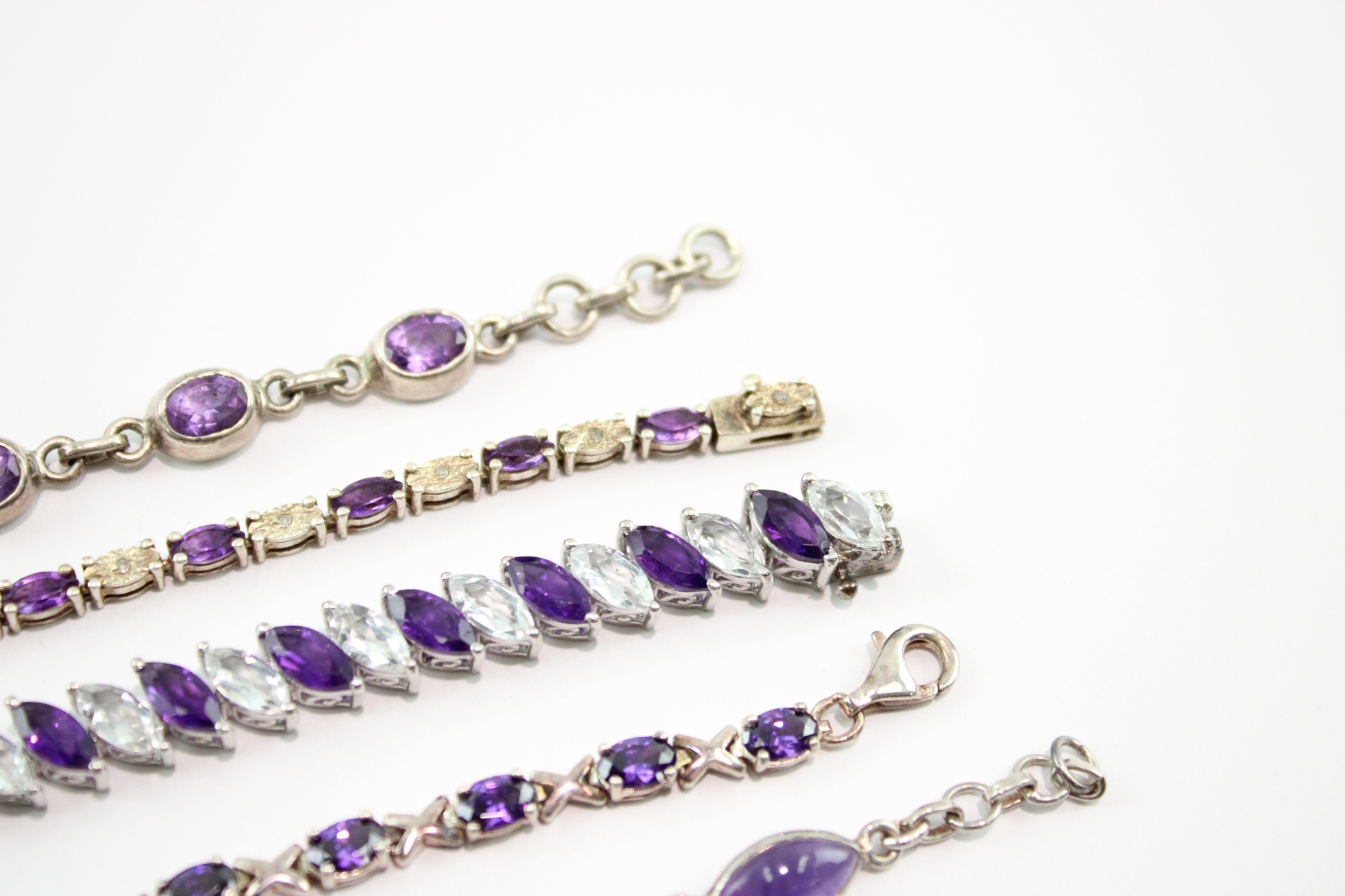 Collection of Sterling Silver Bracelet, inc. Gemstone, Amethyst, Tennis x 5 (64g)