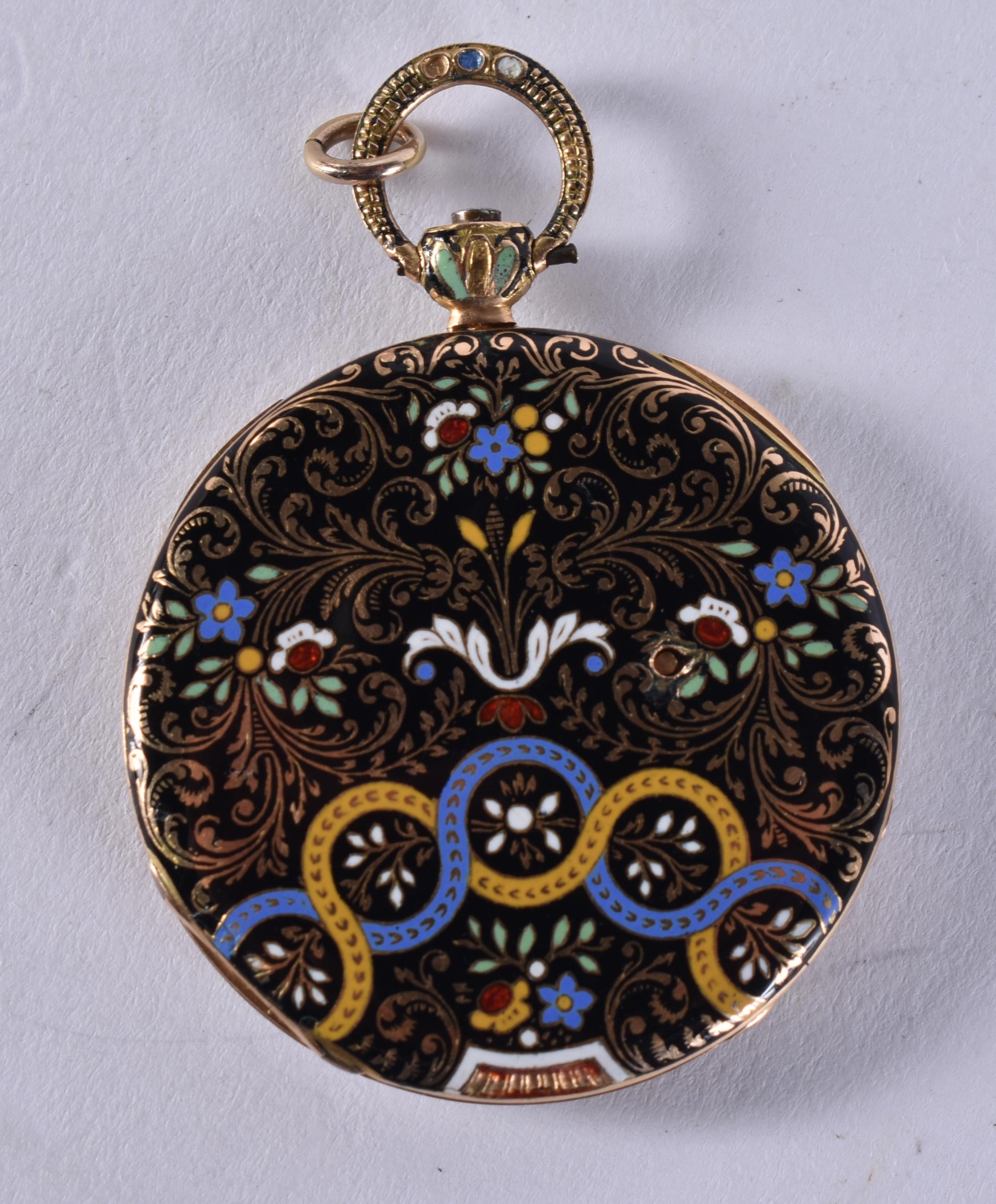 A FINE 18CT GOLD AND ENAMEL POCKET WATCH. 22.3 grams. 3.5 cm...