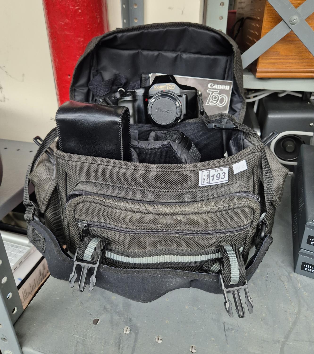 Canon T90 camera with original lens and accessories including 2 other lenses