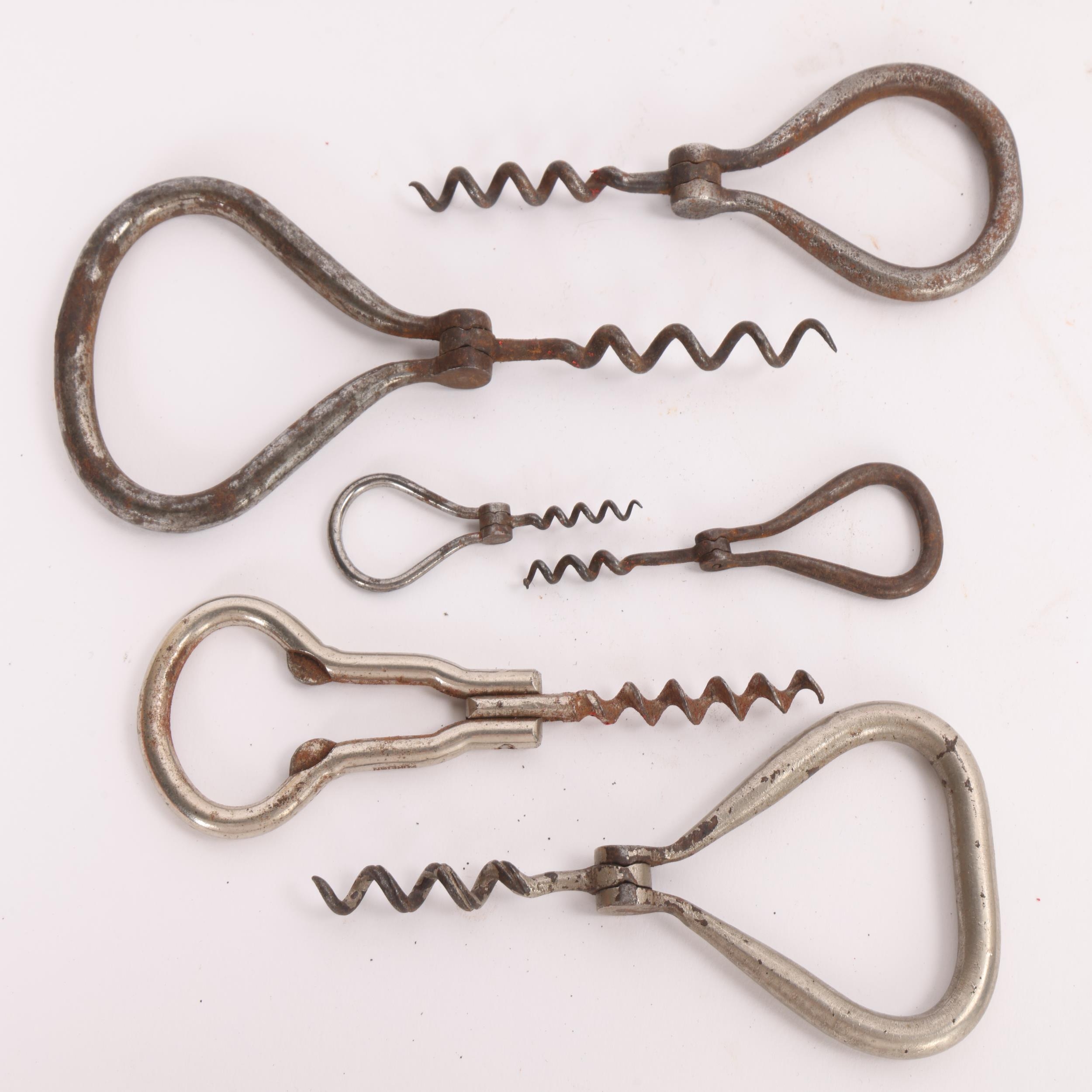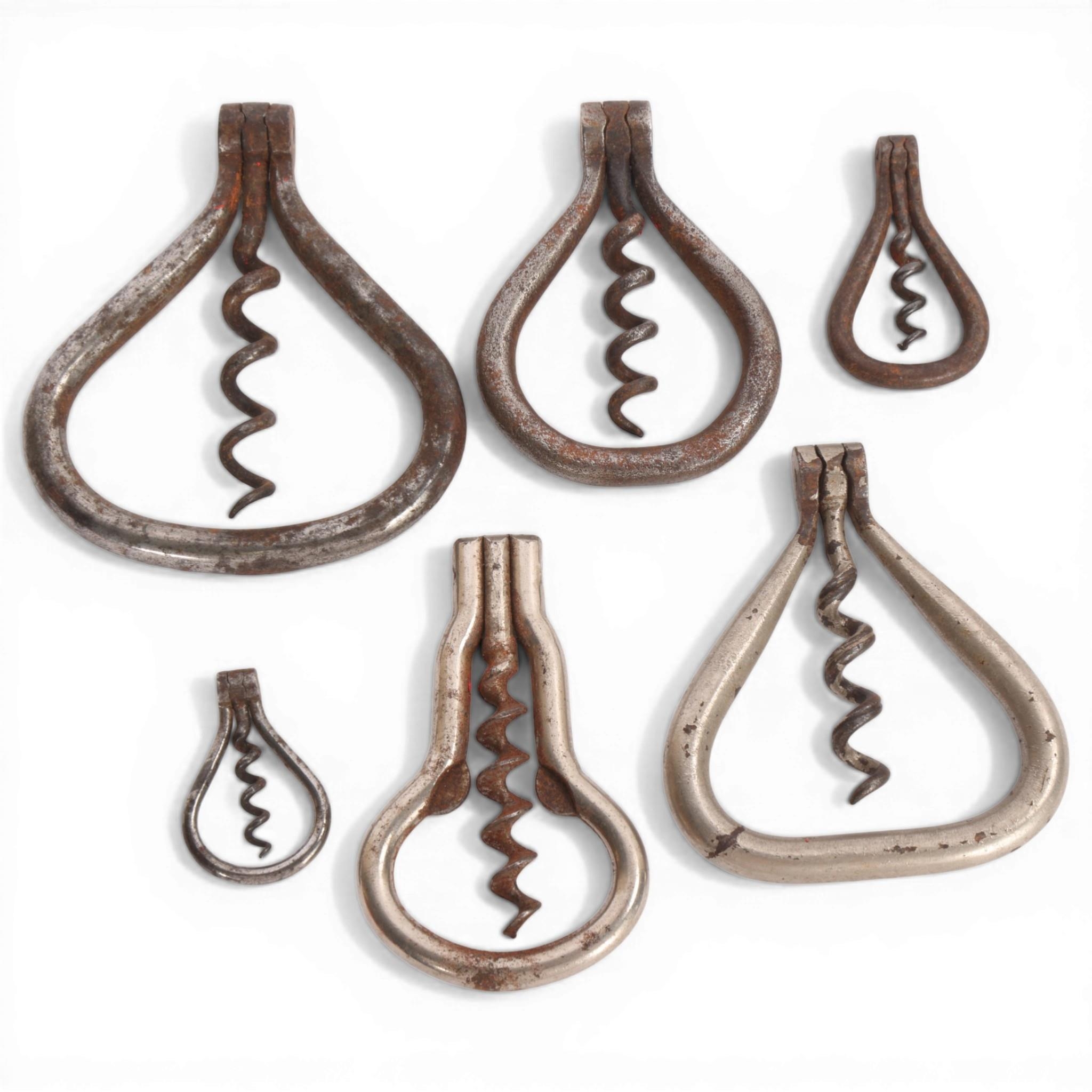 6 folding bow or stirrup type corkscrews, including miniature examples