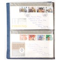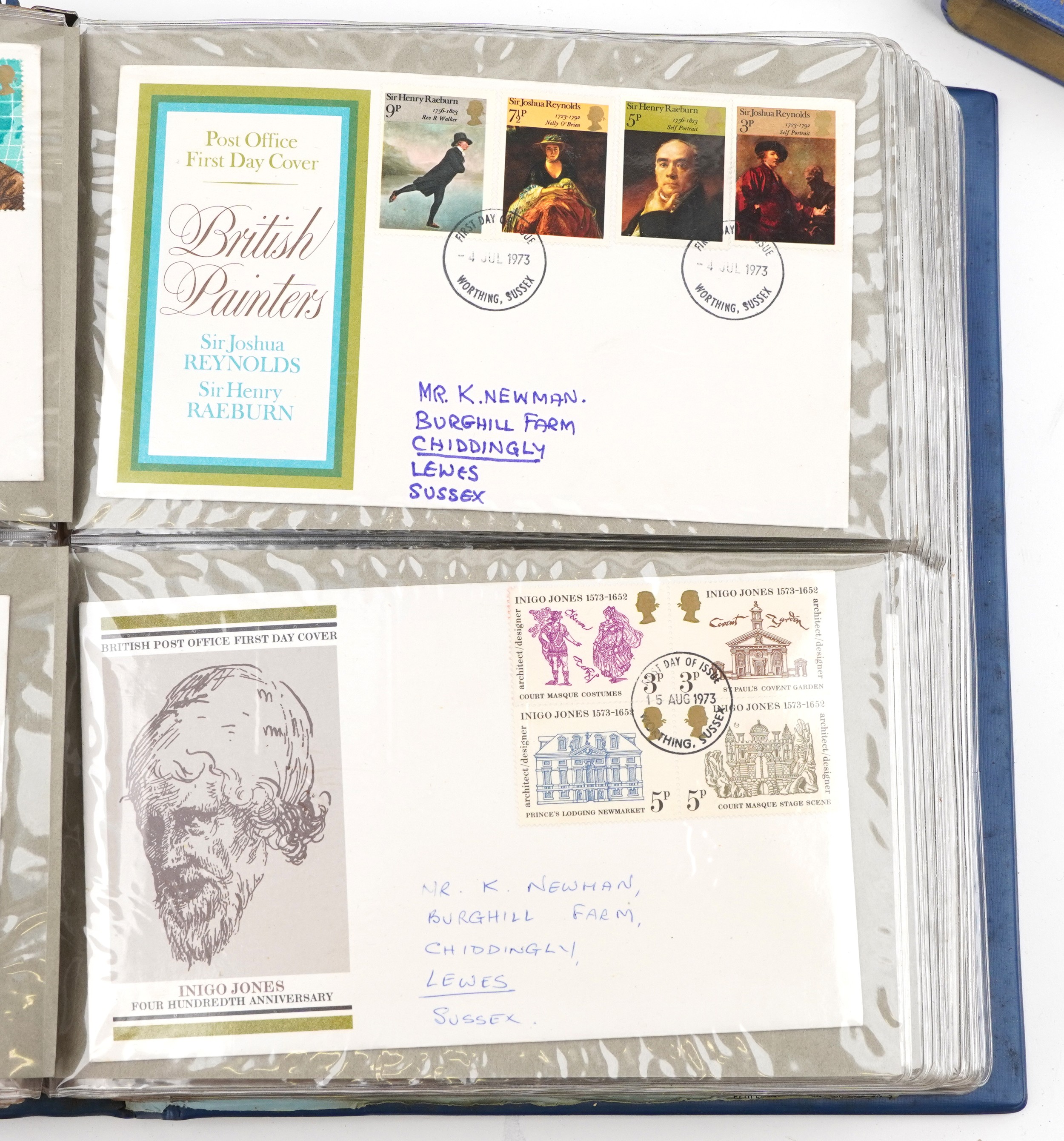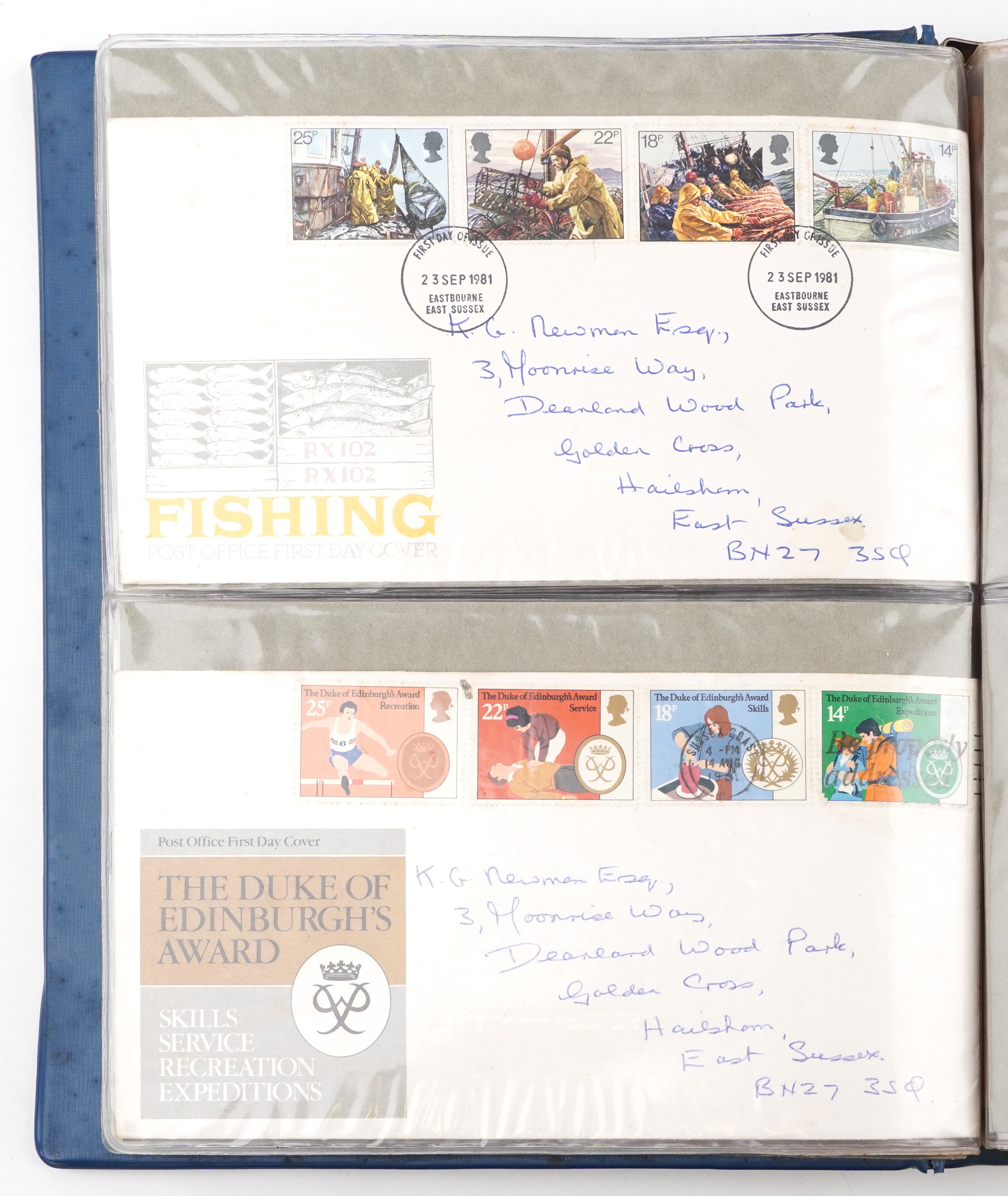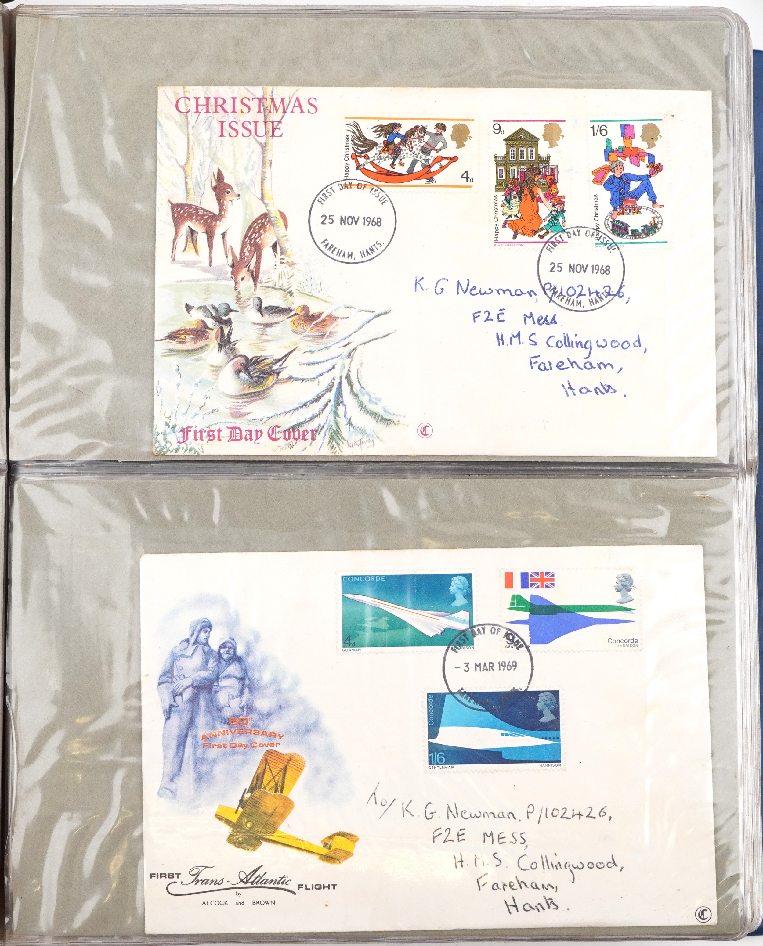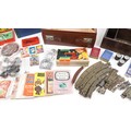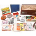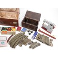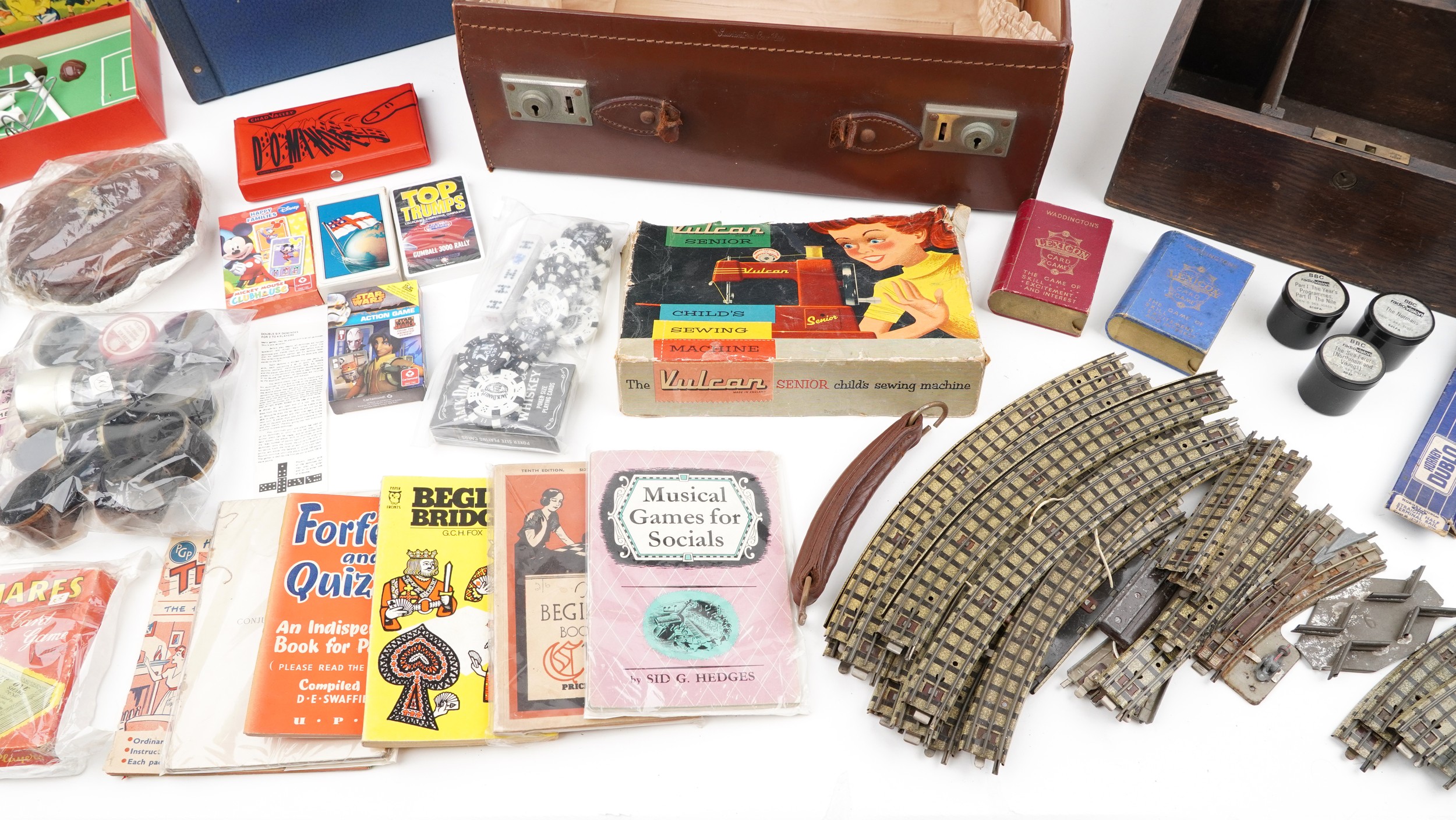 Antique and later sundry items including a travelling vanity case, card games, a child's sewing machine and measuring instruments and One hundred 1960s and 70s British first day covers housed in a blue covers album.