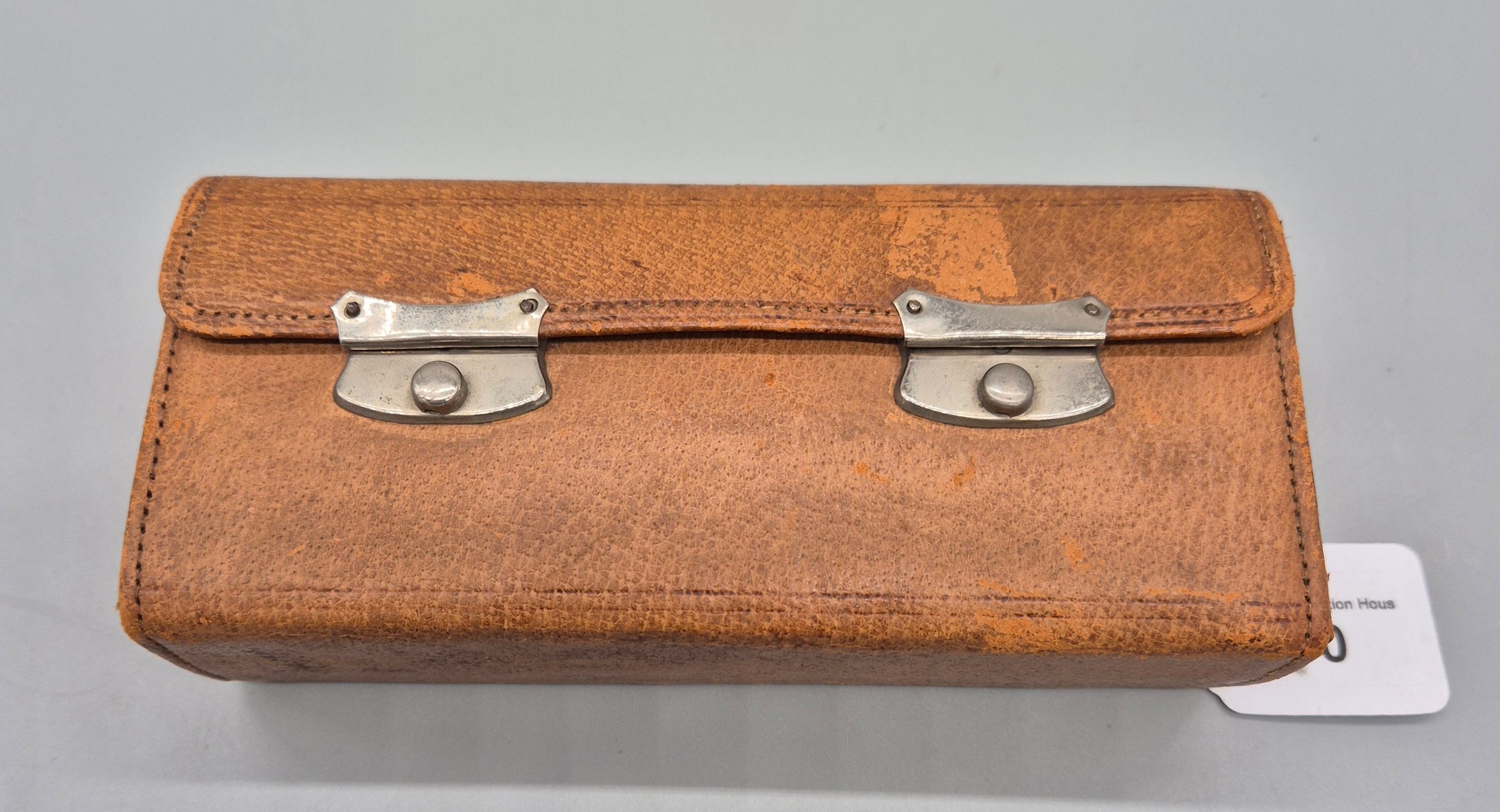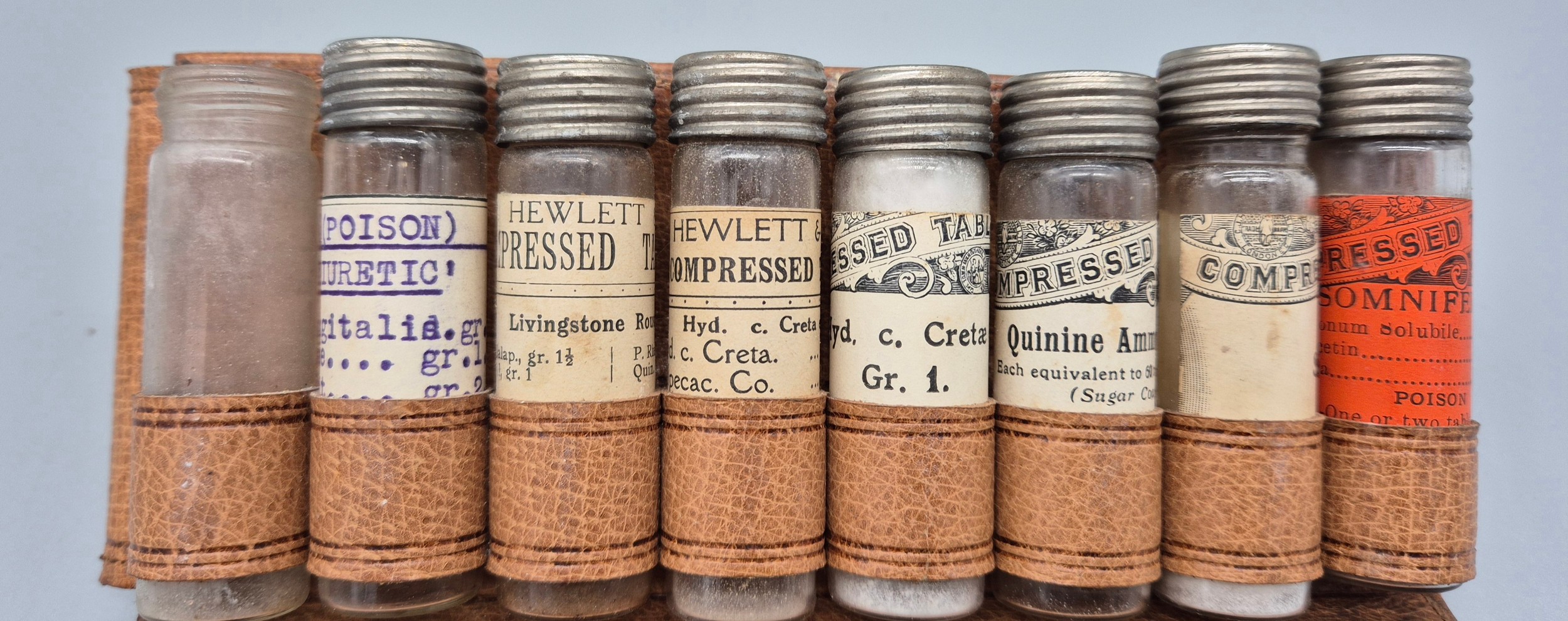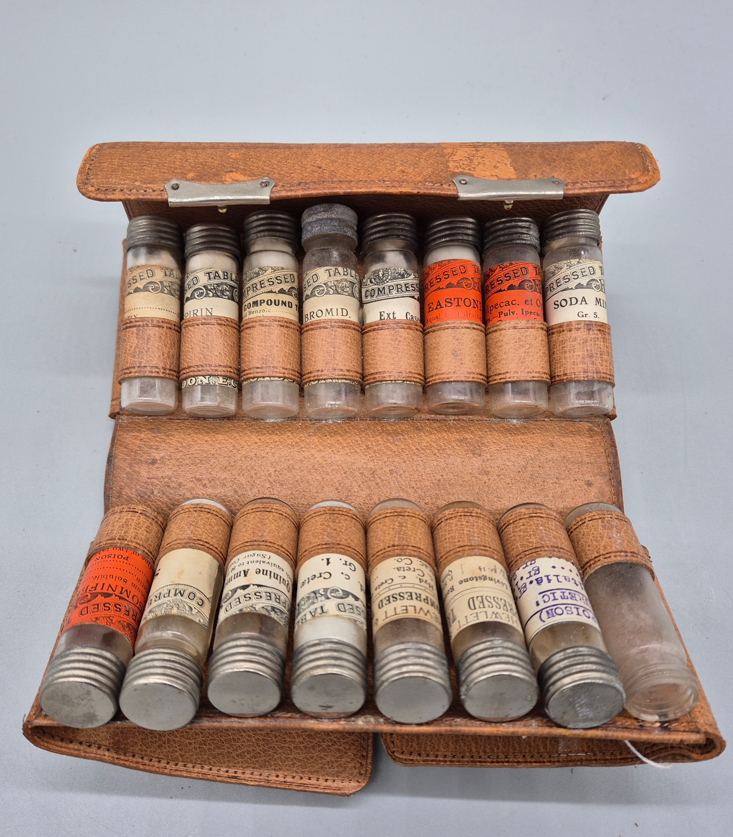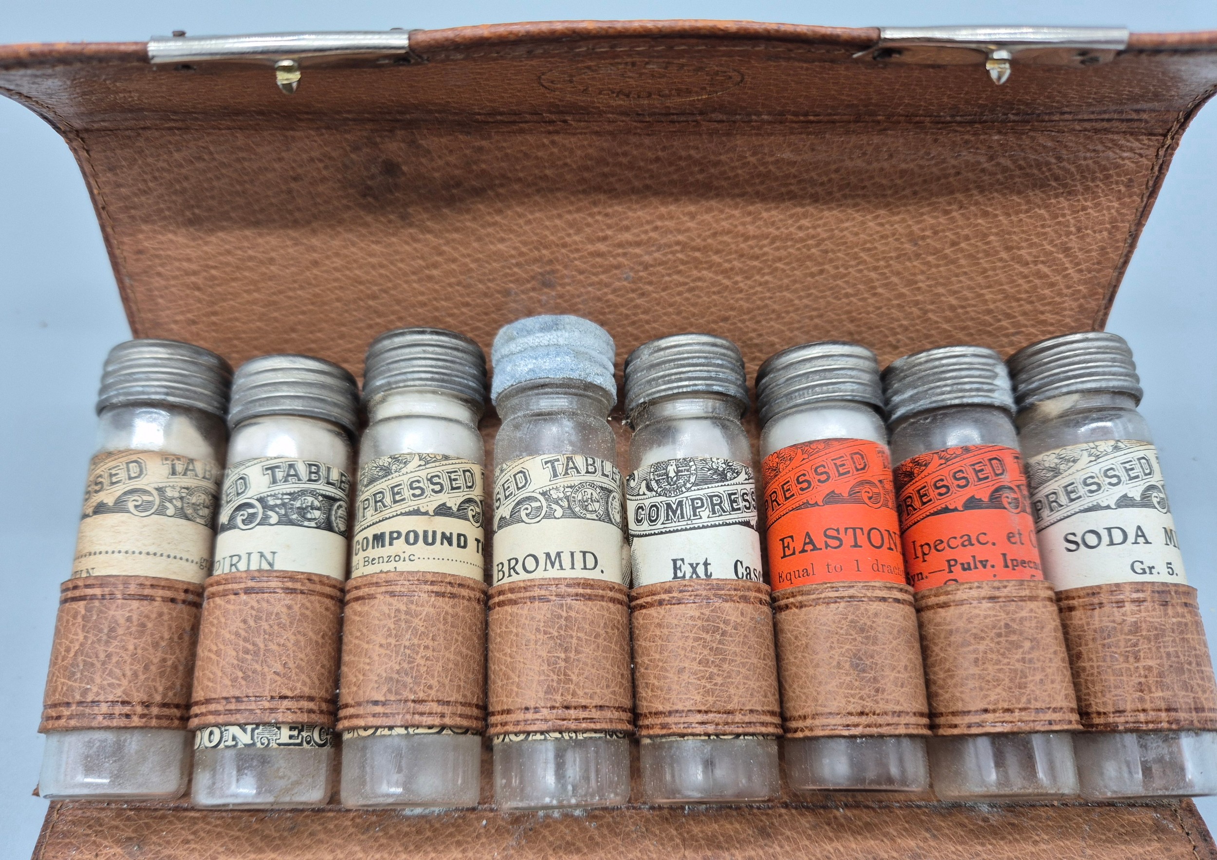 Antique leather cased travelling apothecary set by C.J. Hewlett & Son of London.