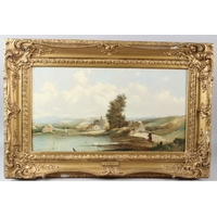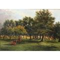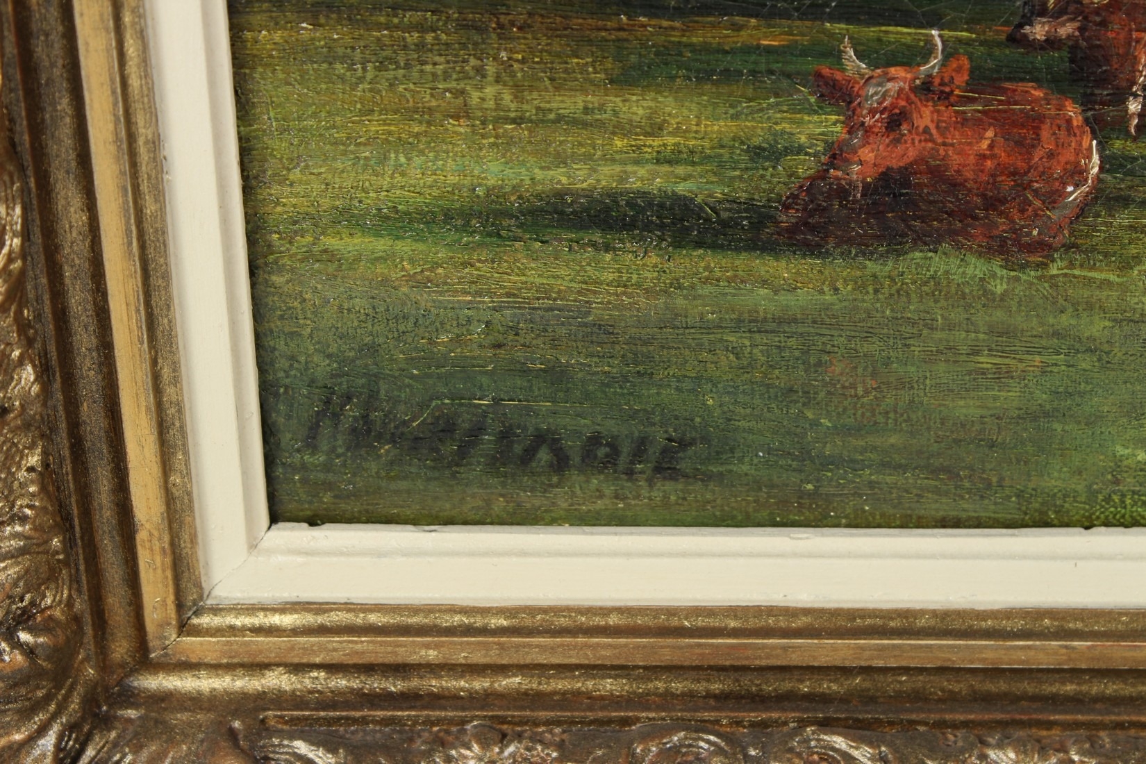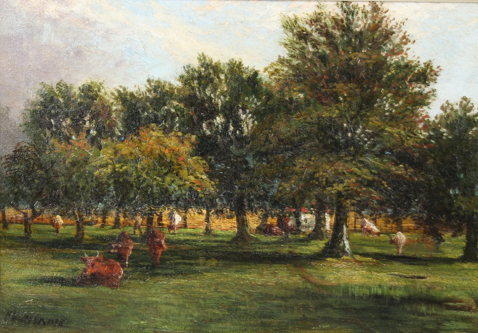 19TH CENTURY SCHOOL Cattle grazing in an orchard oil on canvas signed indistinctly 41 x 59cm