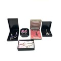 collection of handmade silver items in boxes.
