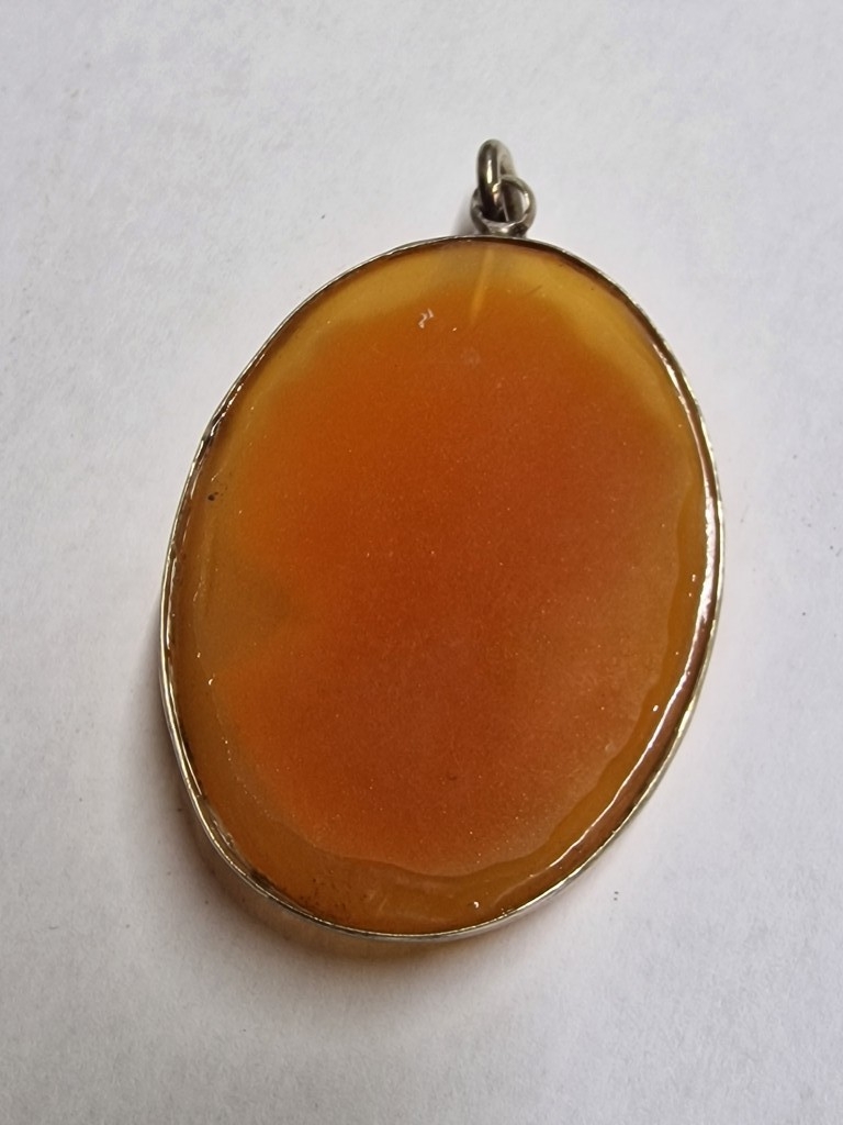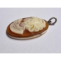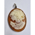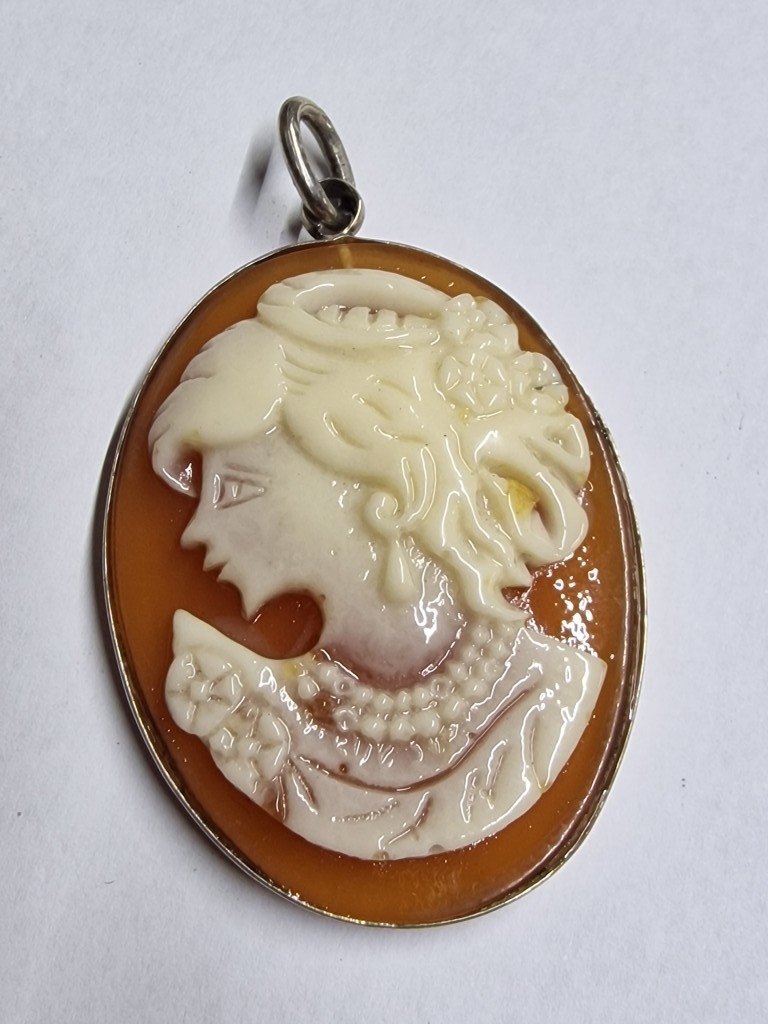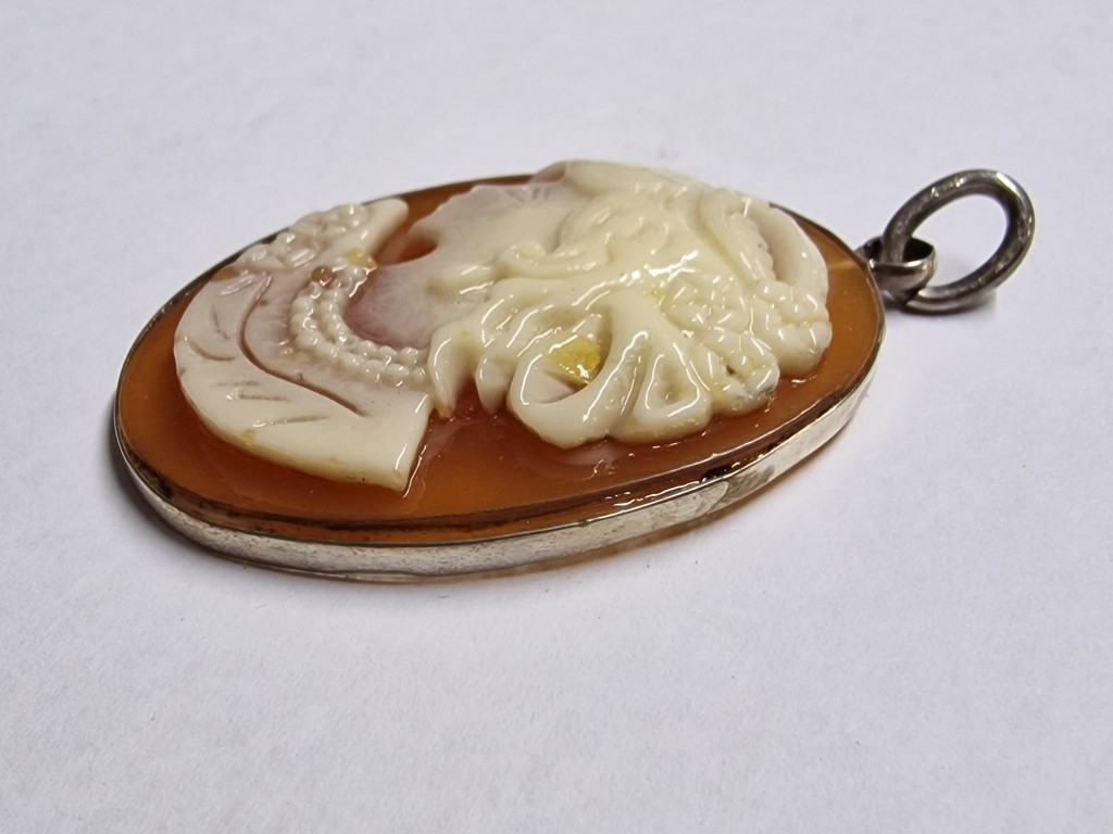 Vintage Large Cameo Pendant with Silver(?) Surround, (Approx. H: 5cm, 9.9g)