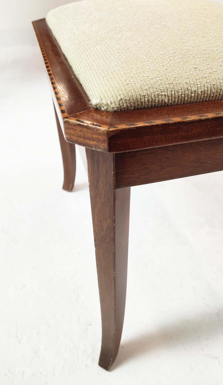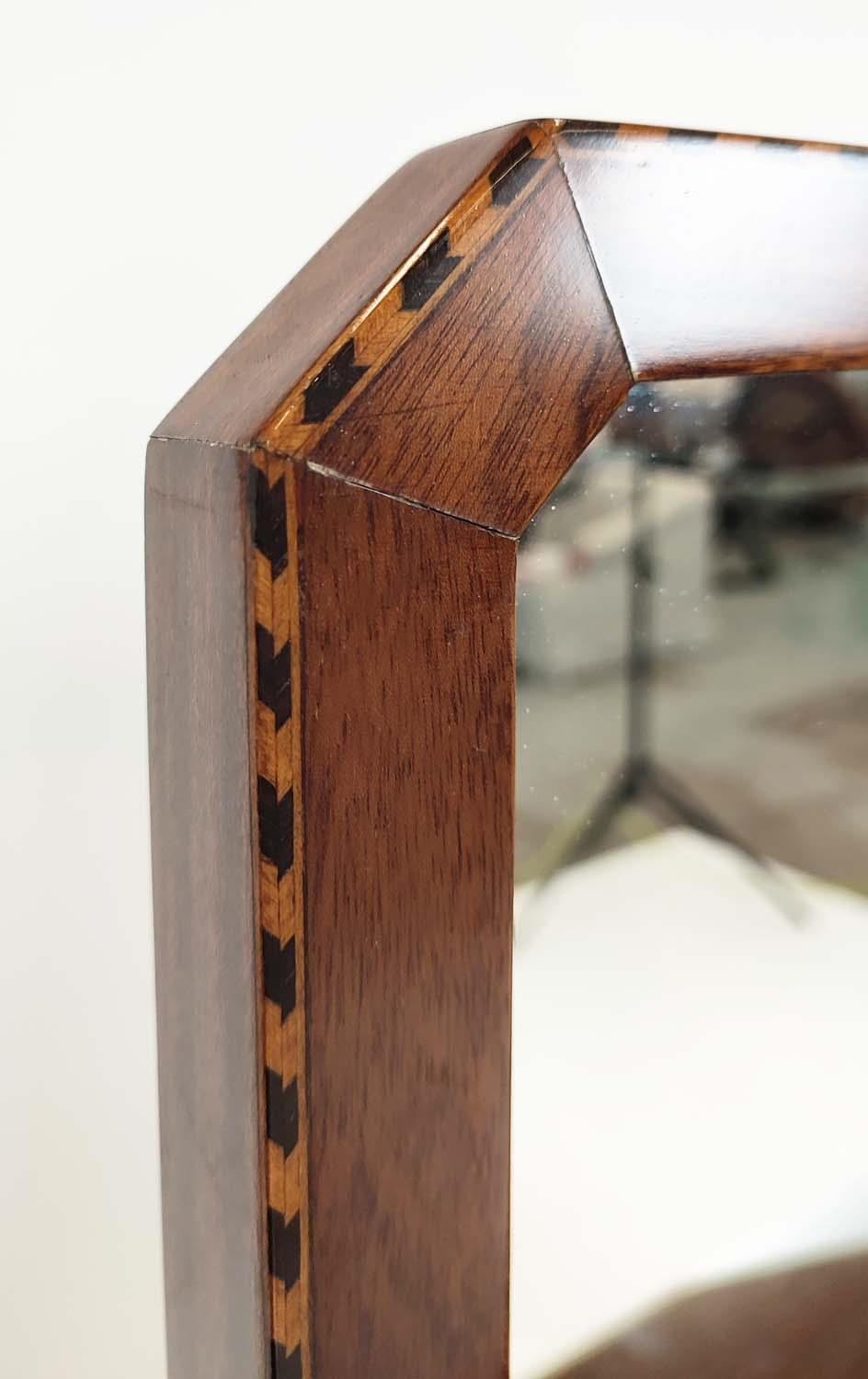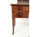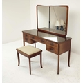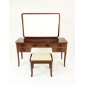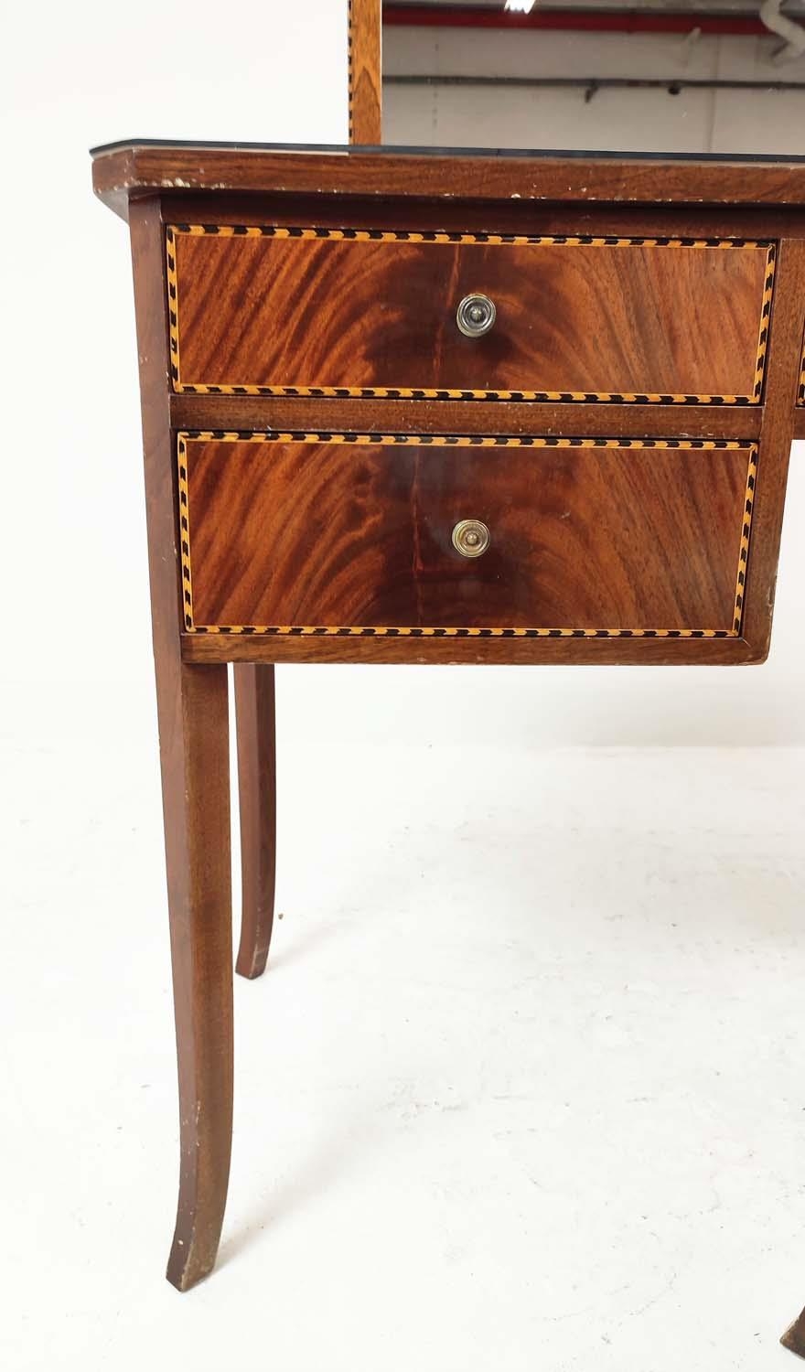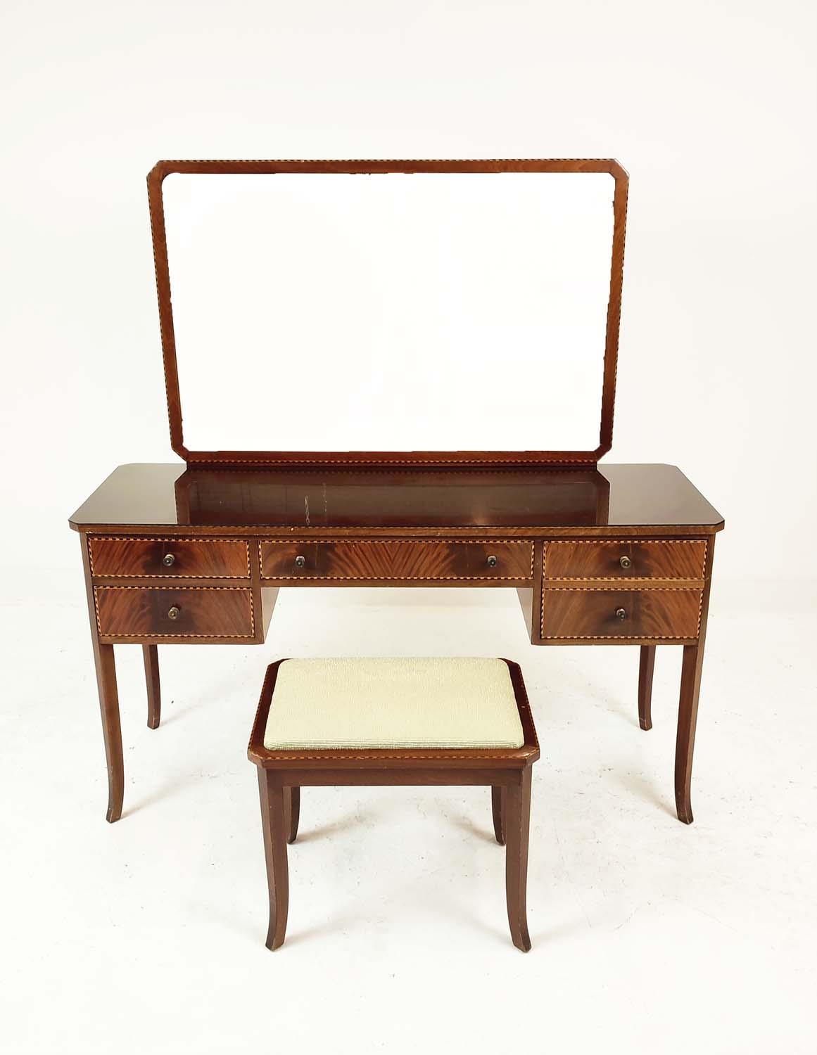 DRESSING TABLE, mid 20th century mahogany and chevron inlaid banding with five drawers and mirror, 147cm H x 141cm W x 48cm D, with stool. (2)