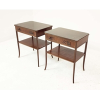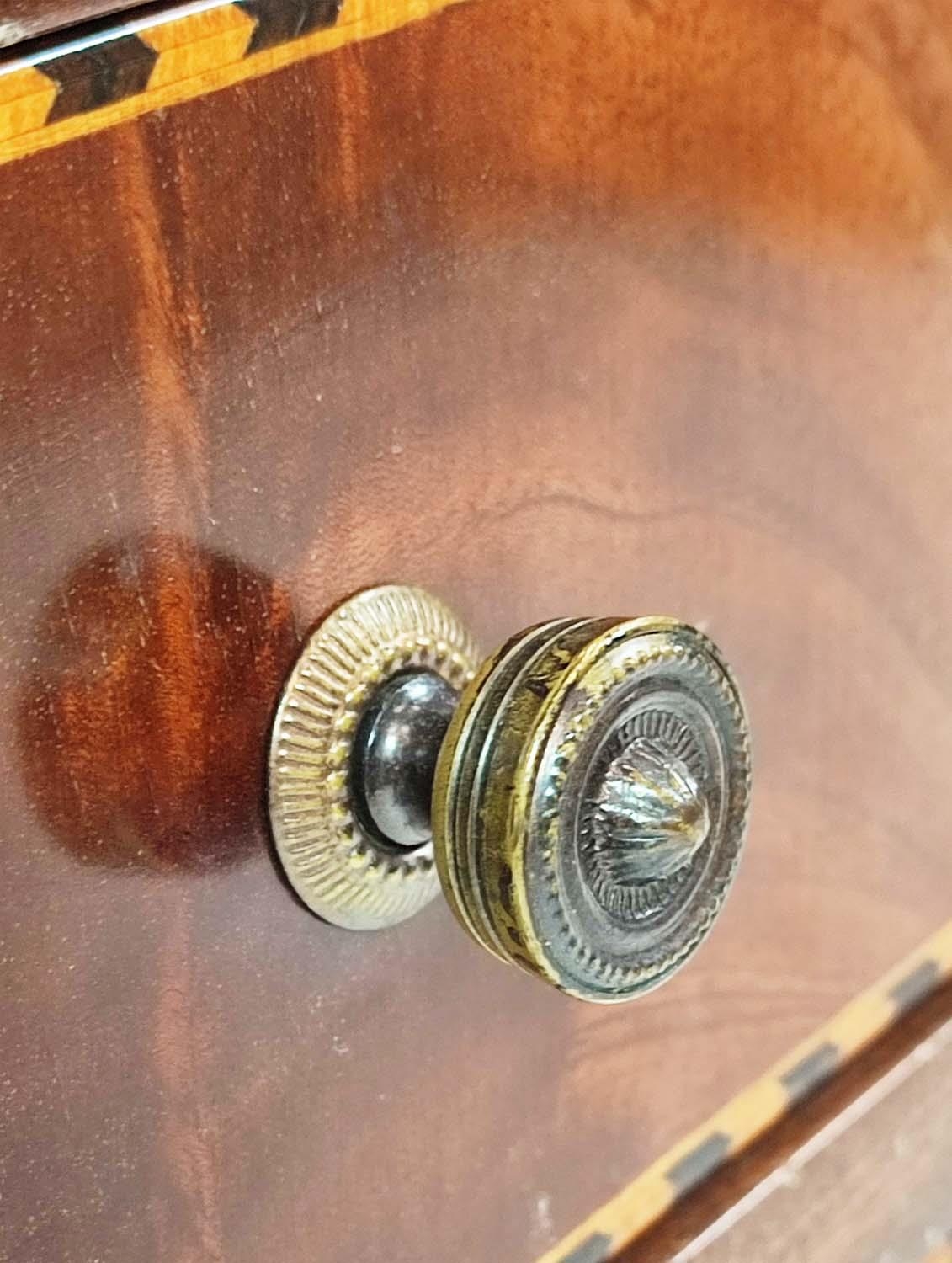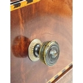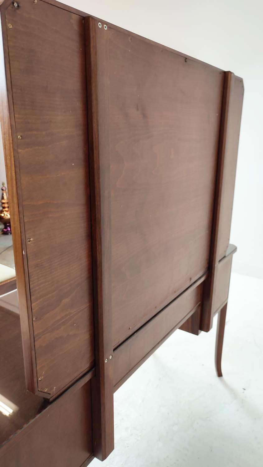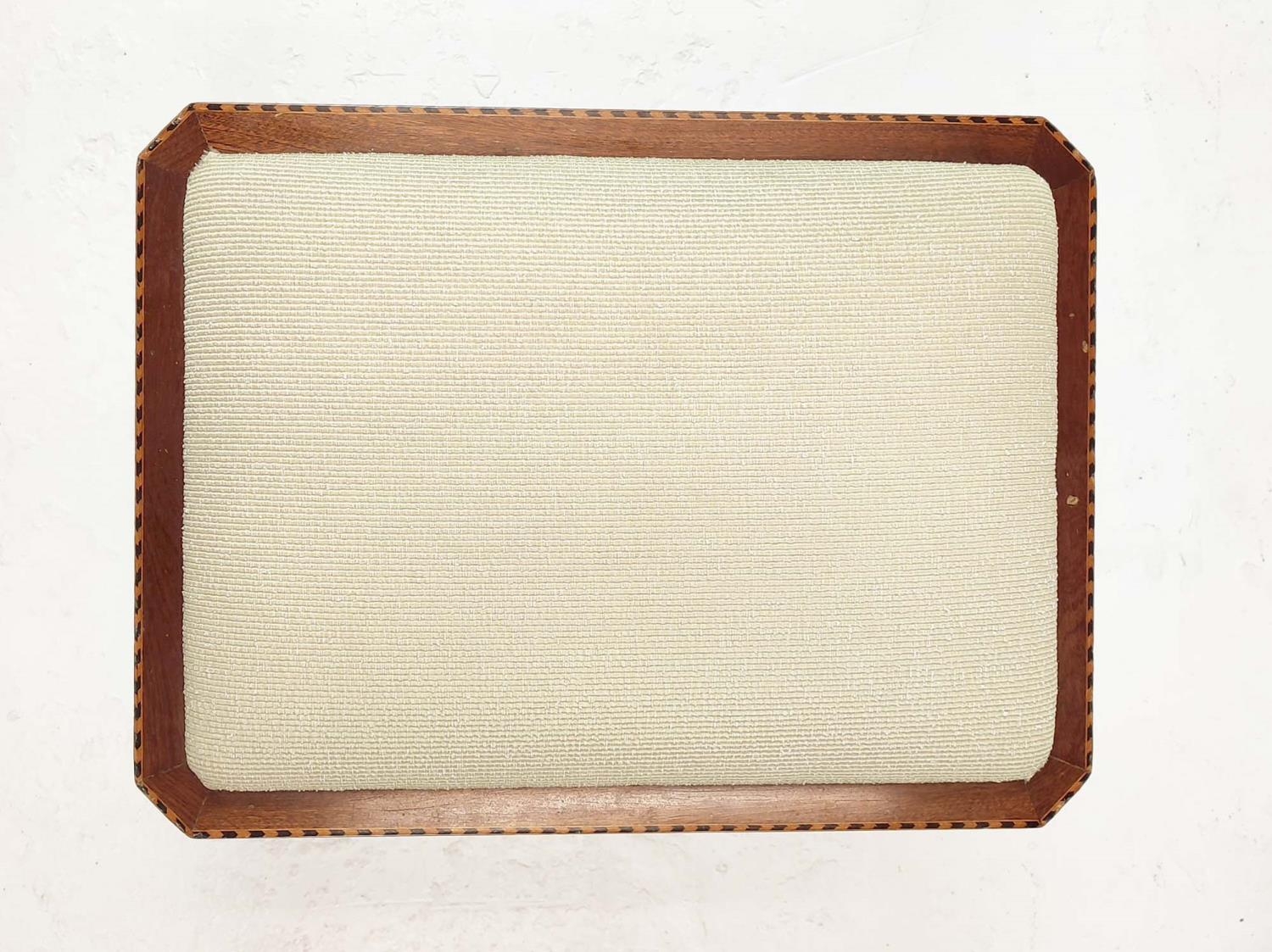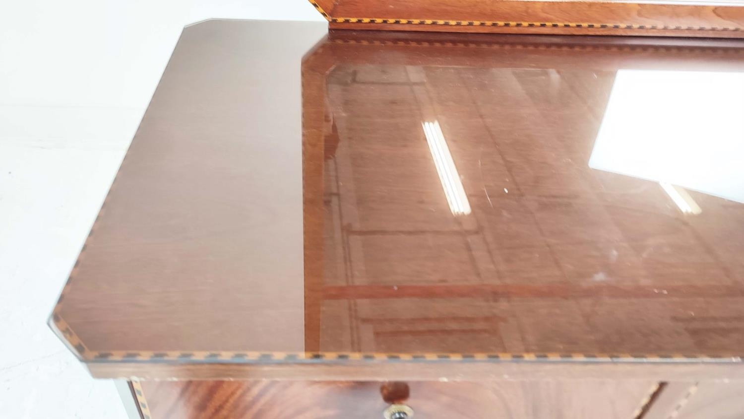 DRESSING TABLE, mid 20th century mahogany and chevron inlaid banding with five drawers and mirror, 147cm H x 141cm W x 48cm D, with stool. (2)