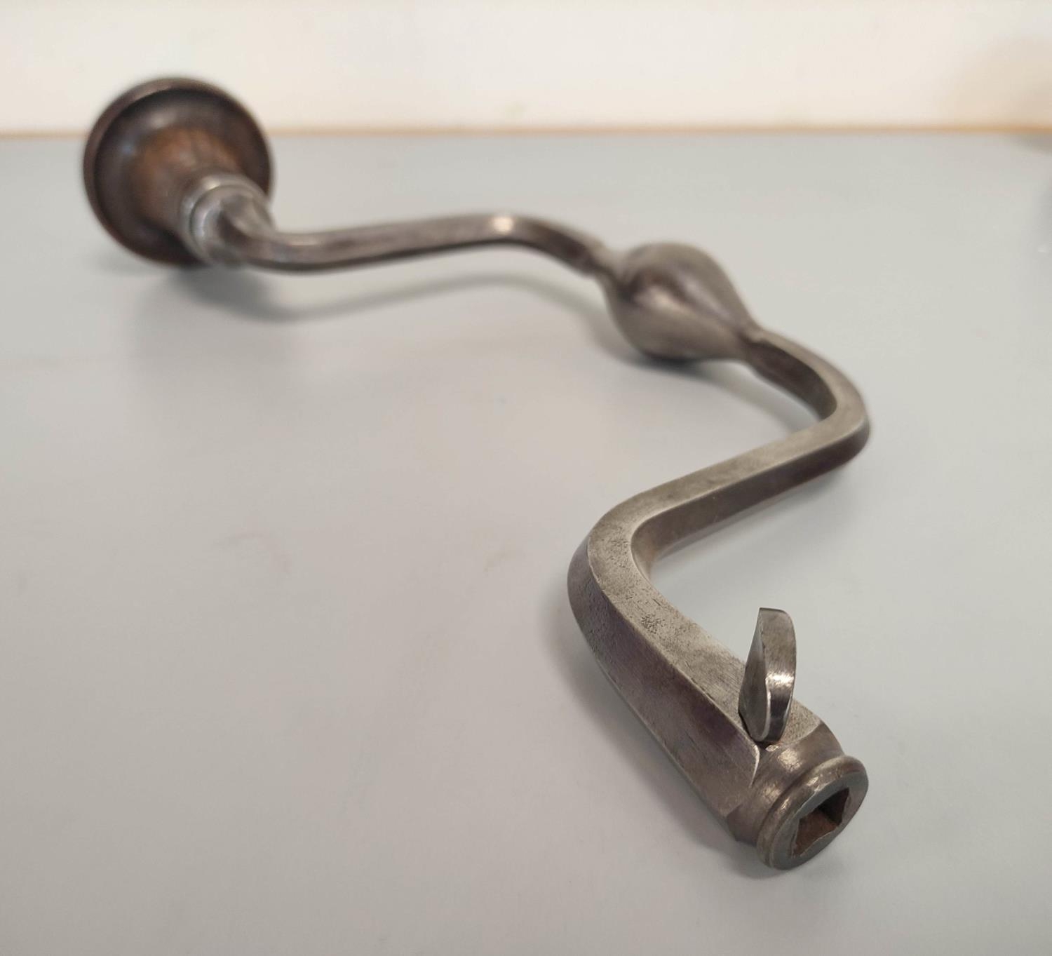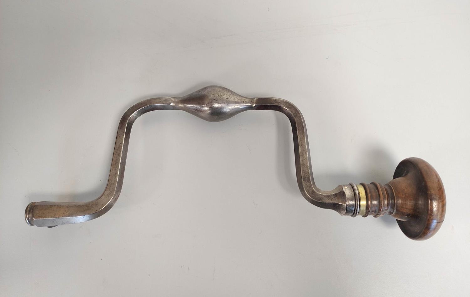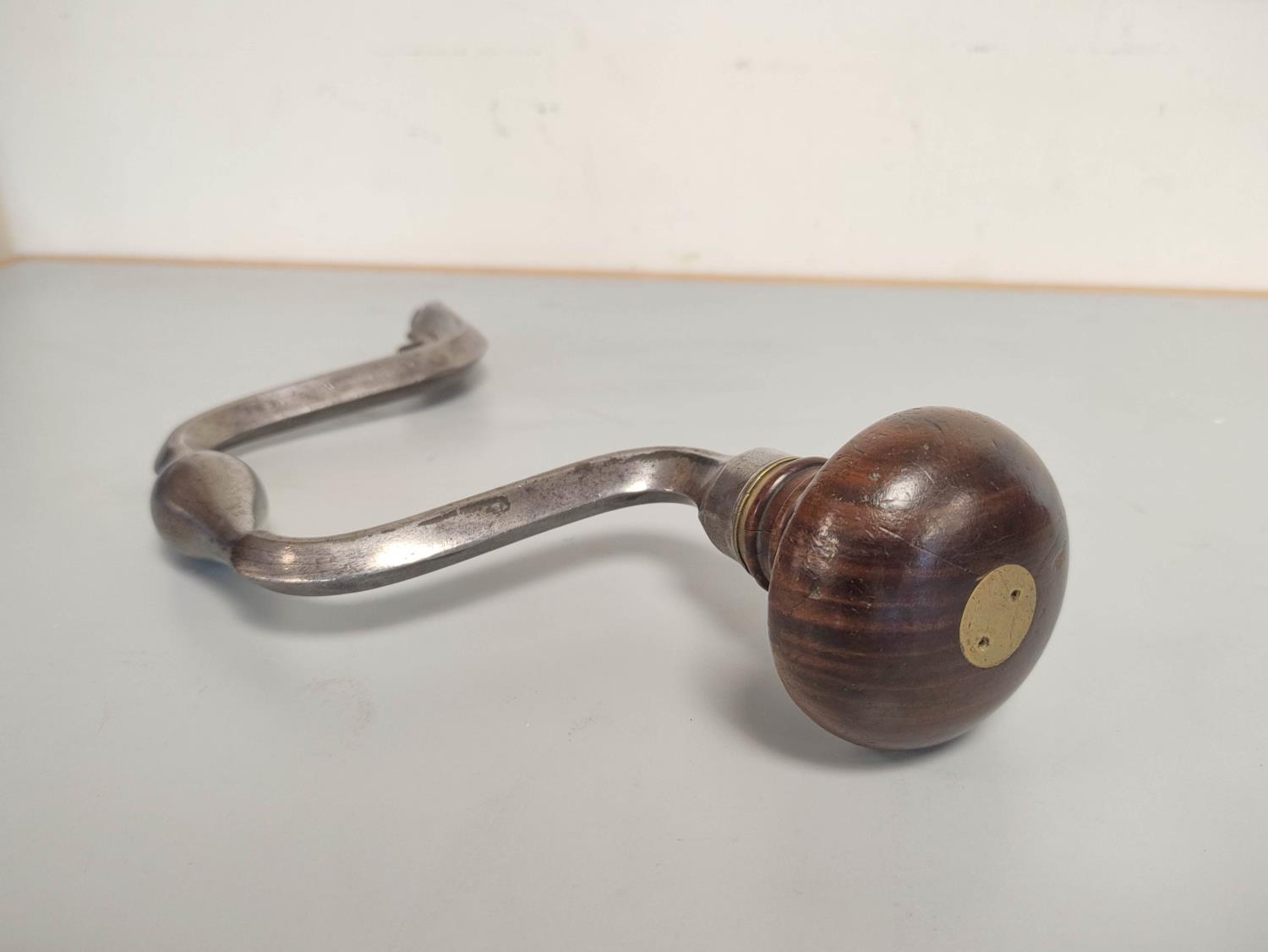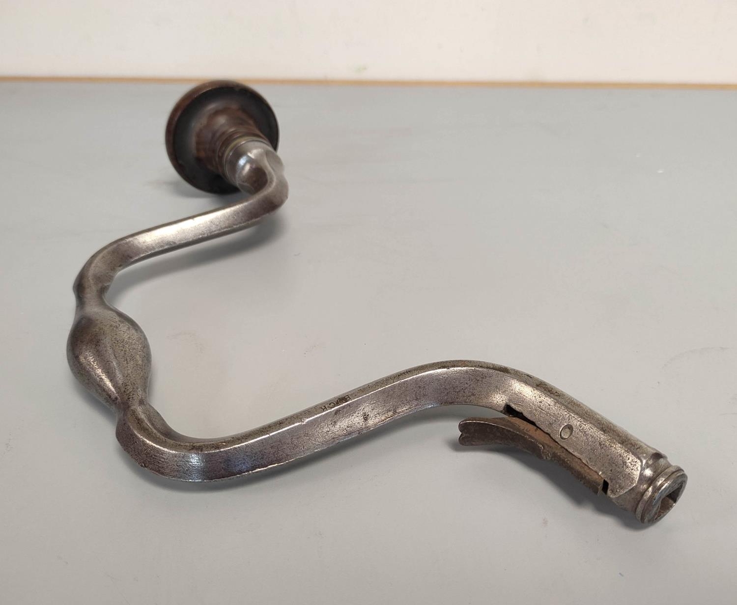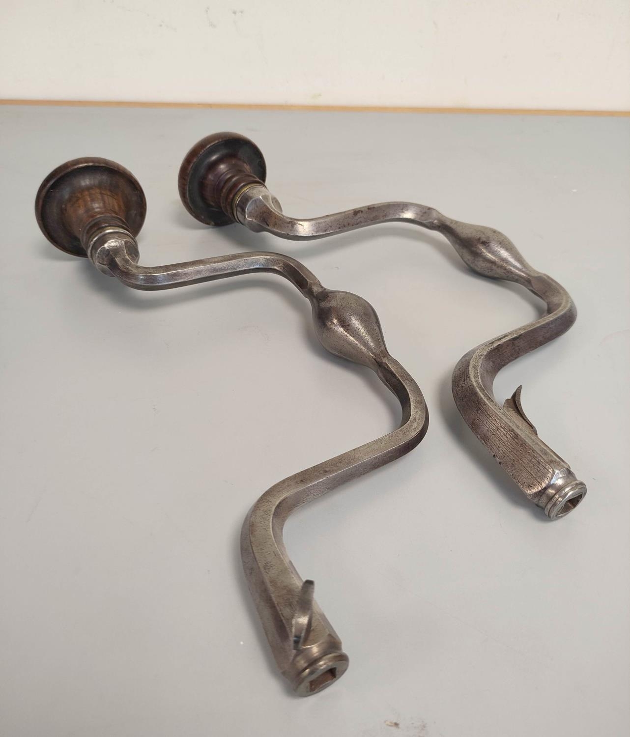Two Victorian steel hand drills with hard wood hand rests. The first by Buck is stamped W.R Hide towards drill head, the other unnamed but of a similar quality. (2)