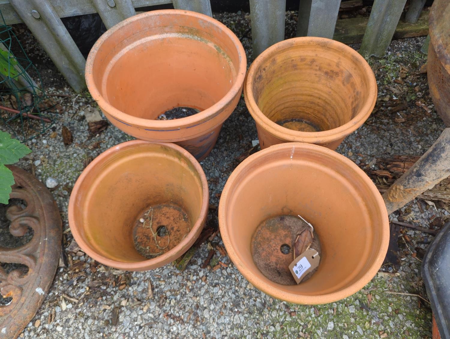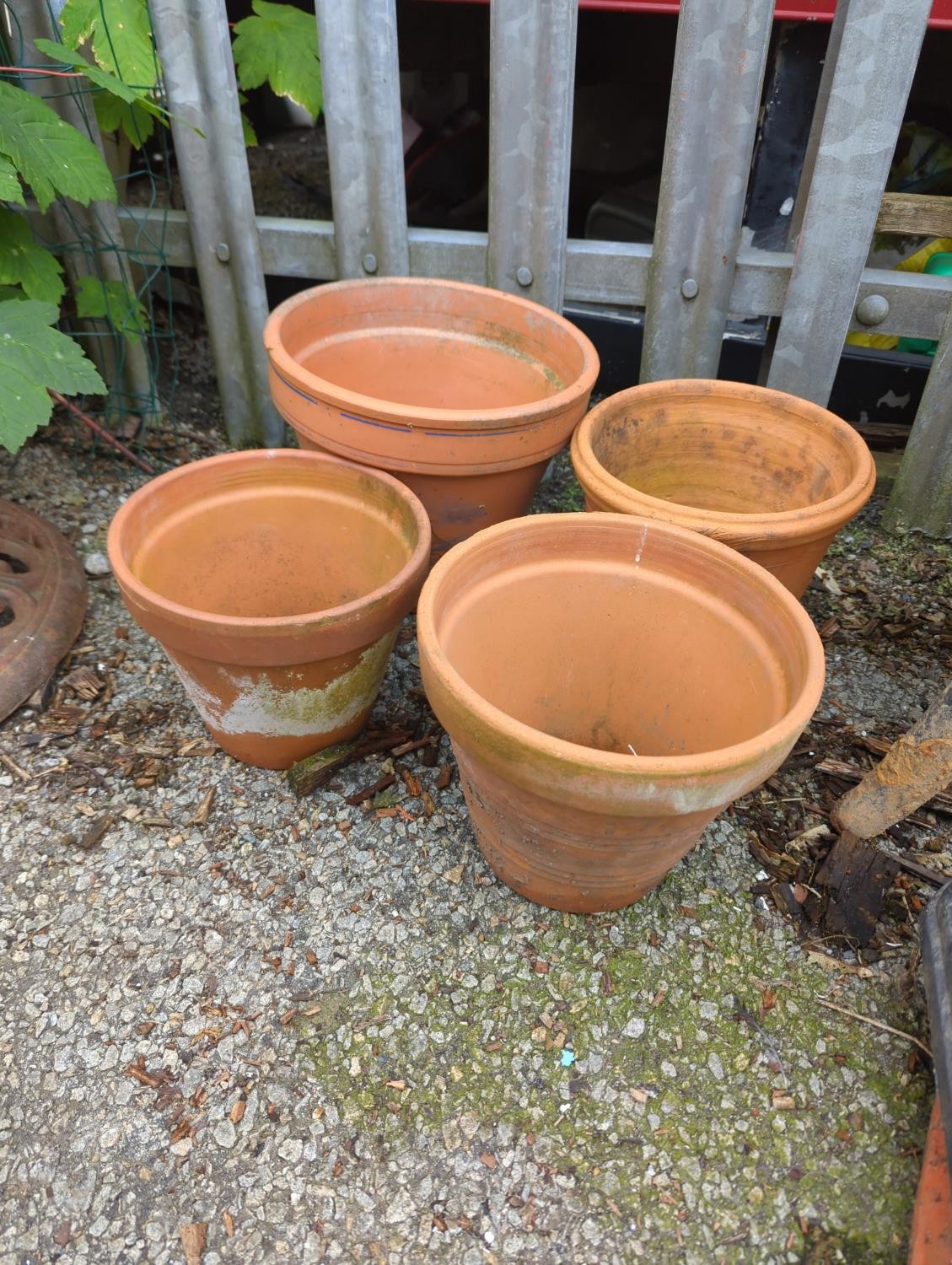 4 x terracotta planters. Largest Dia 27cm H25cm.