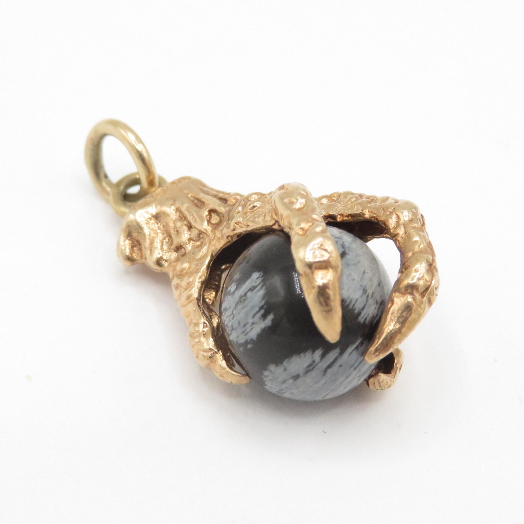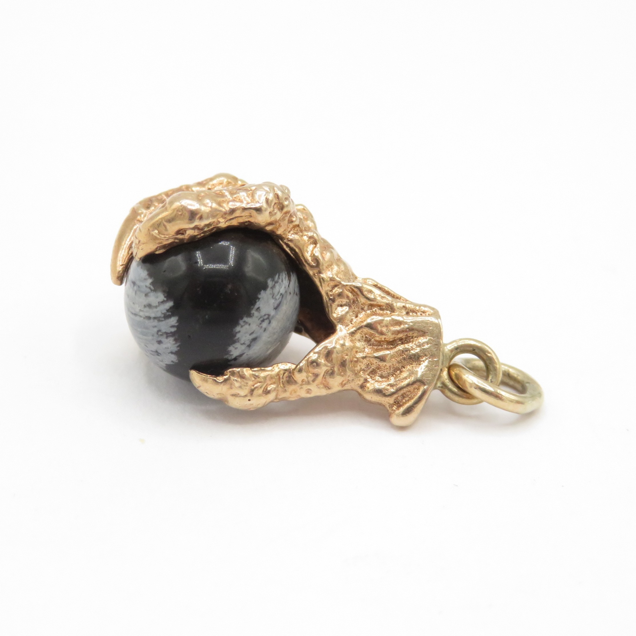 9ct gold eagles claw snowflake obsidian charm / pendant (4.1g)