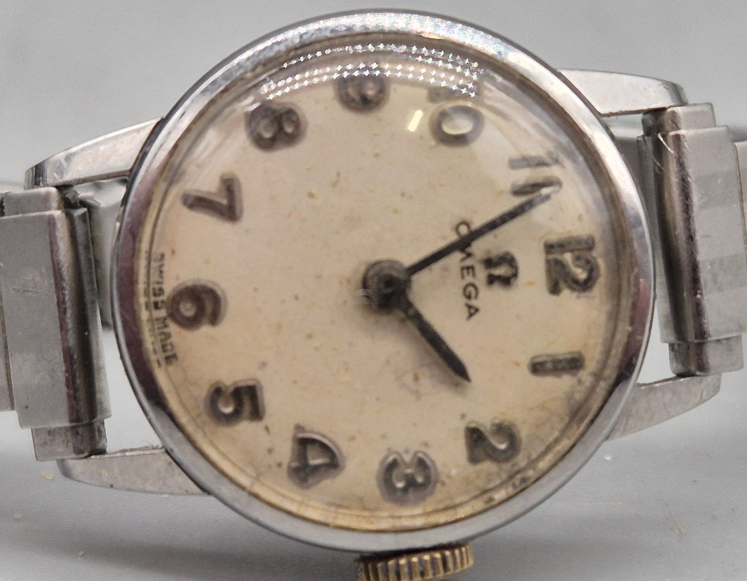 Vintage Ladies Omega Cocktail Wristwatch. Fitted with a later elasticated band. Working.