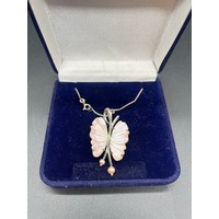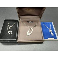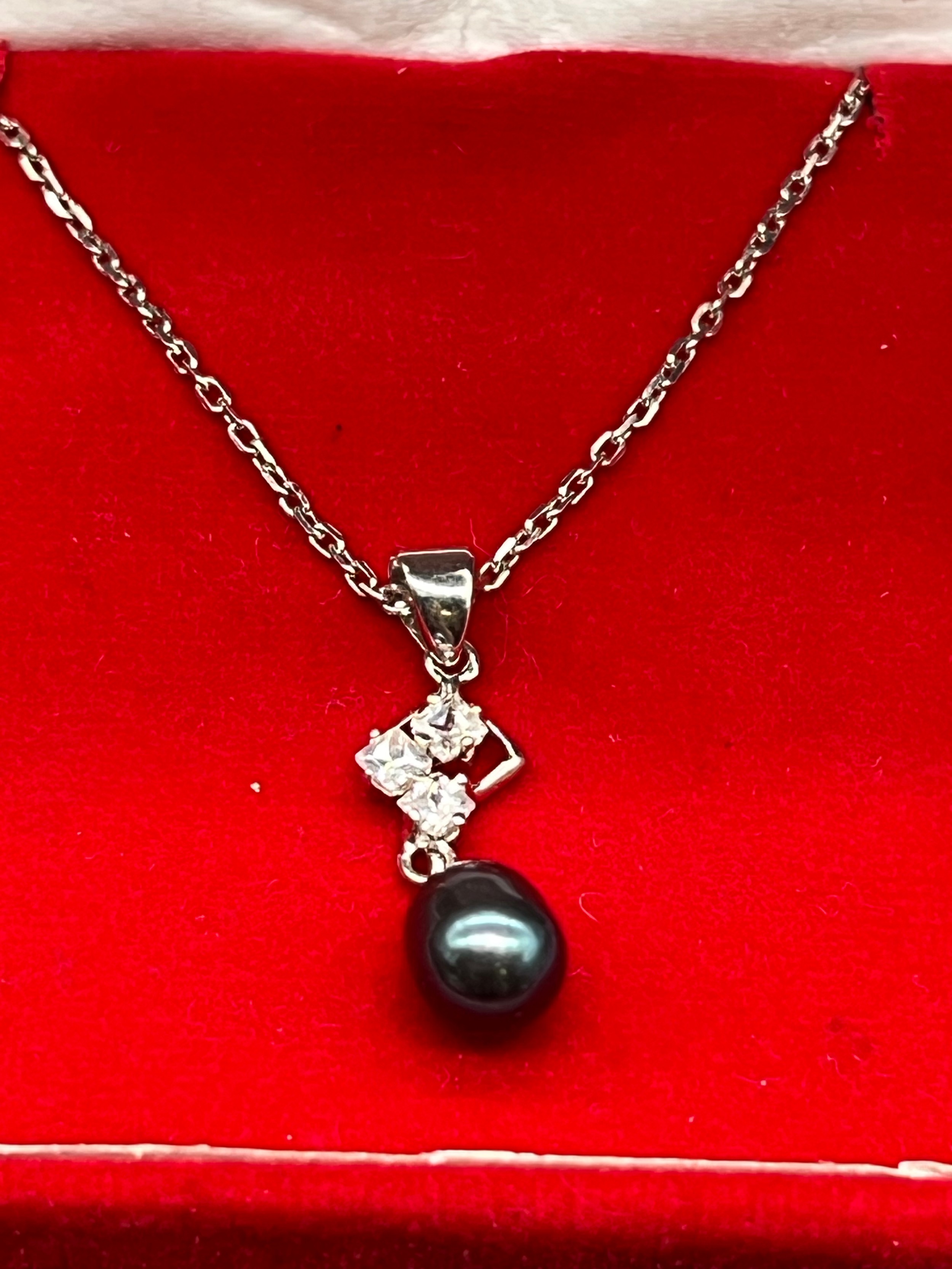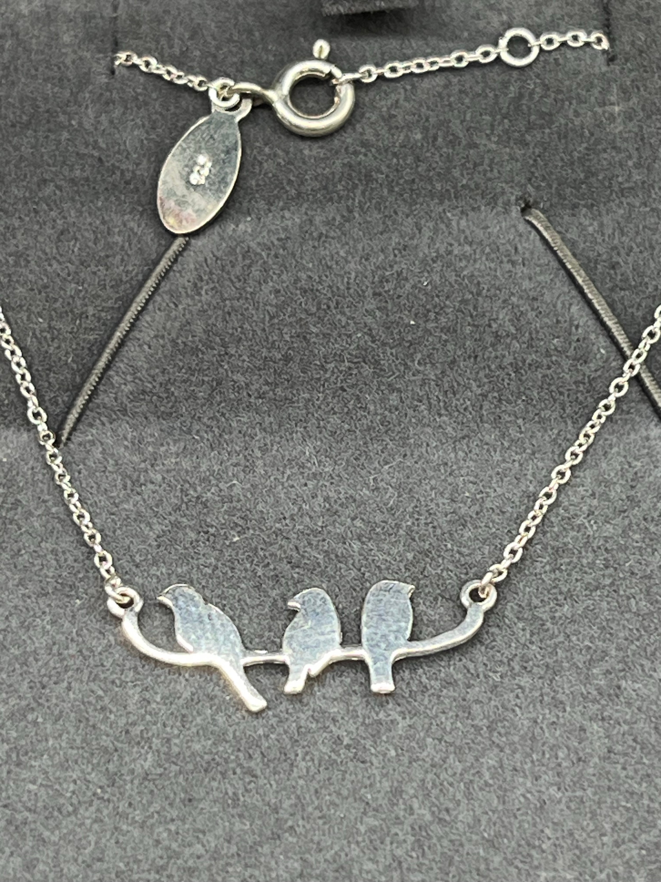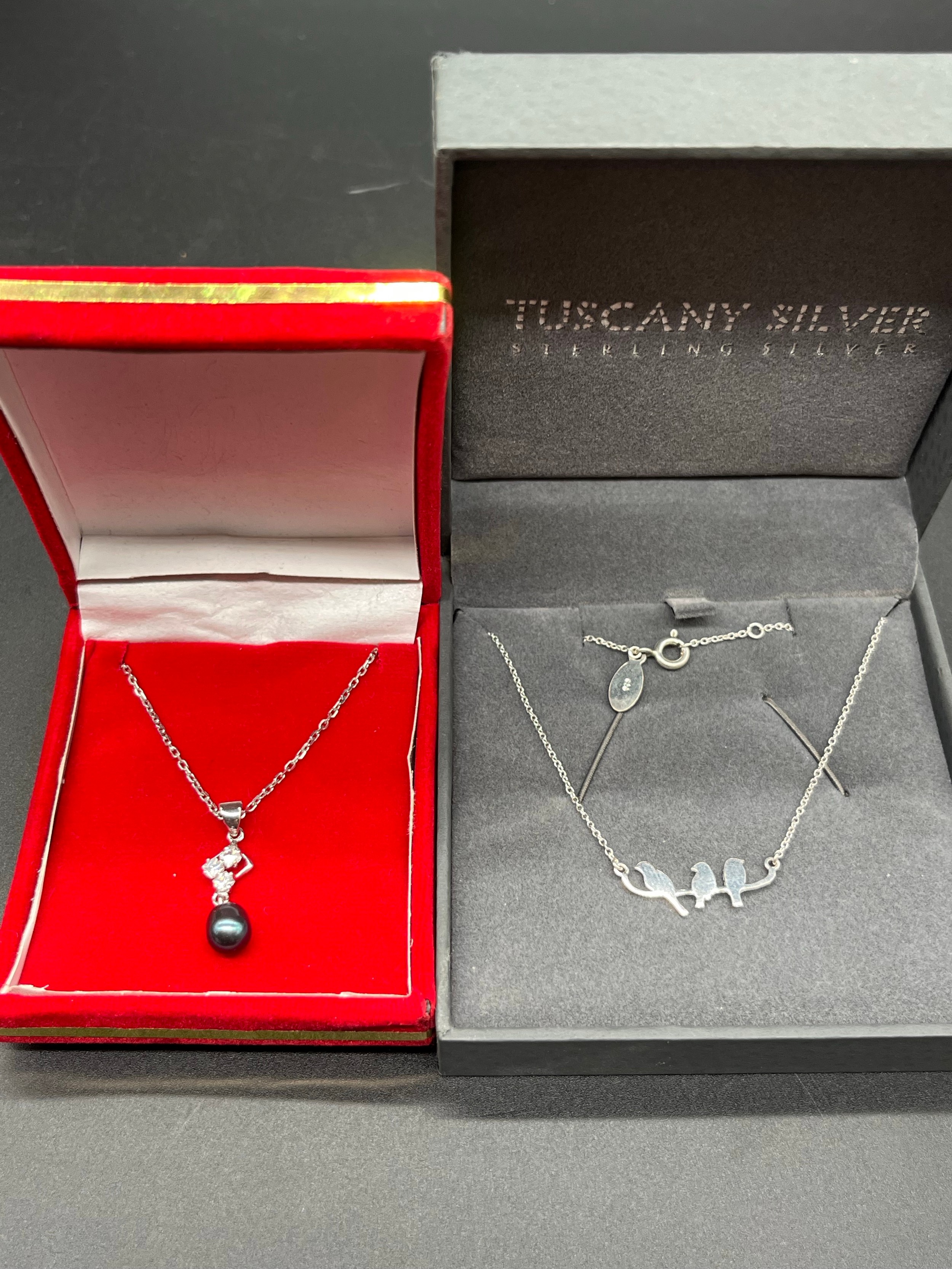 2 x silver necklaces - black pearl and 3 birds.