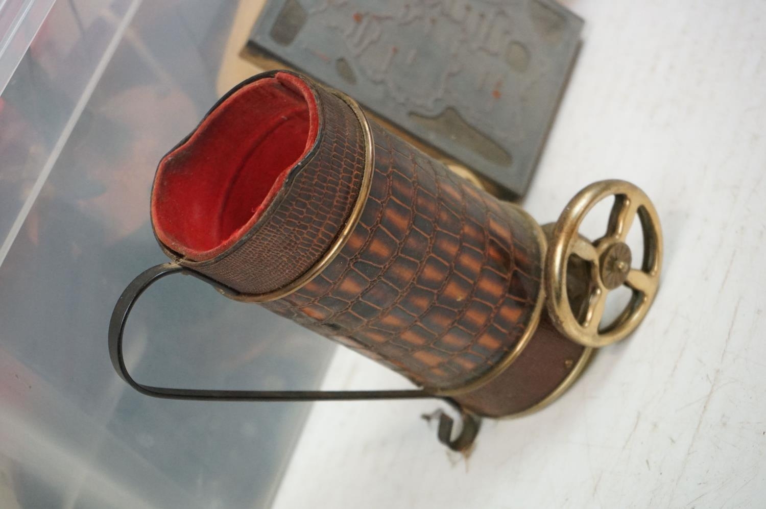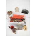 Collection of miscellanea to include: red No.2 Portrait Brownie Camera, a wine bottle holder modelled as a cannon with brass wheels and other items