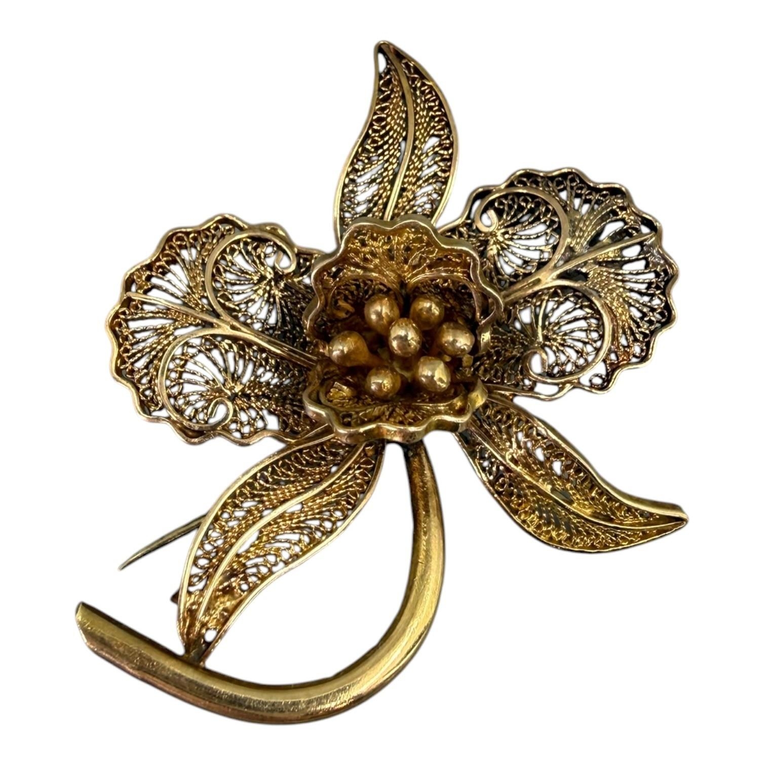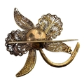 Orchid flower form with filigree decoration, marked indistinctly to stem.