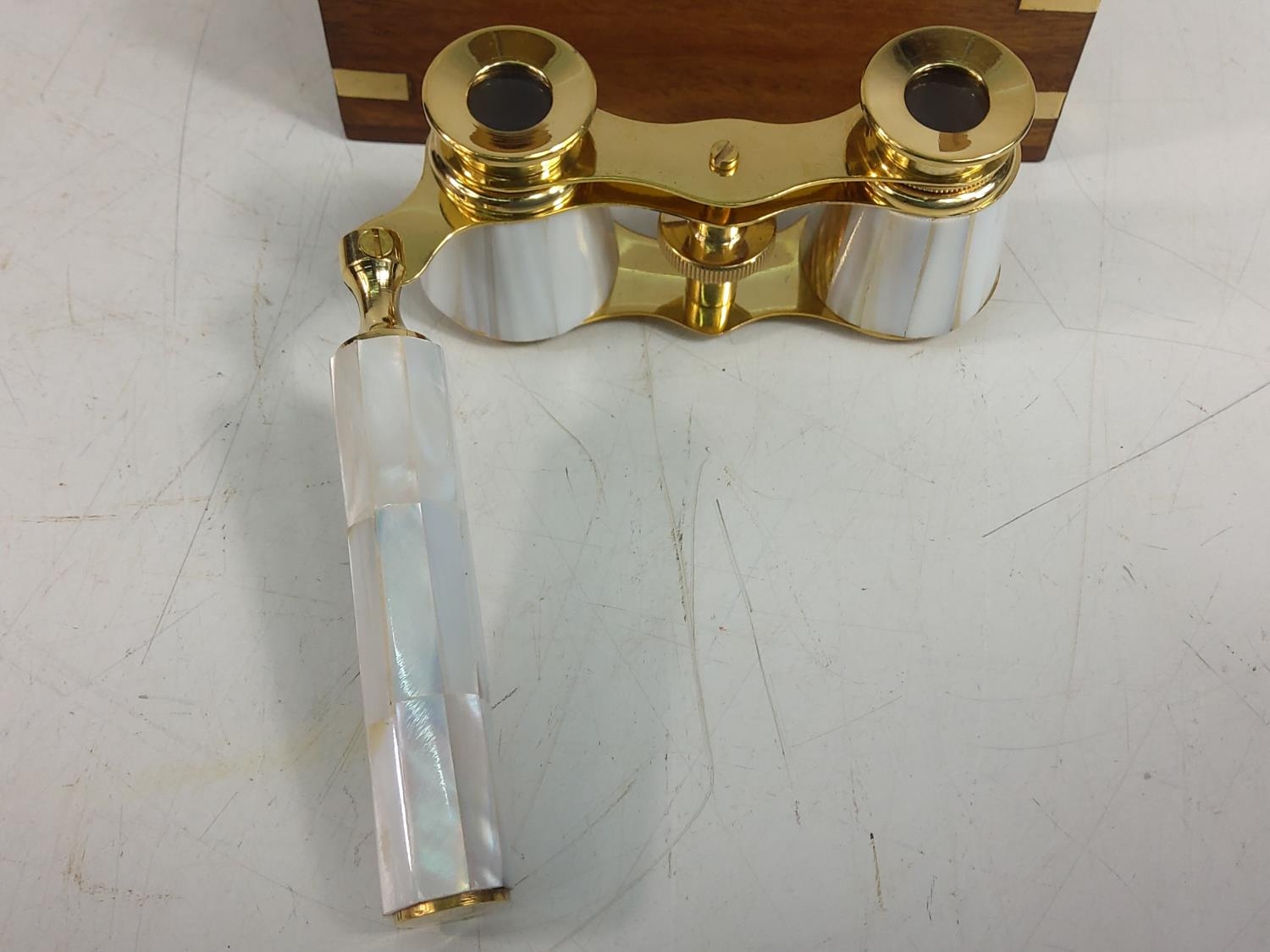 Wooden cased opera glasses