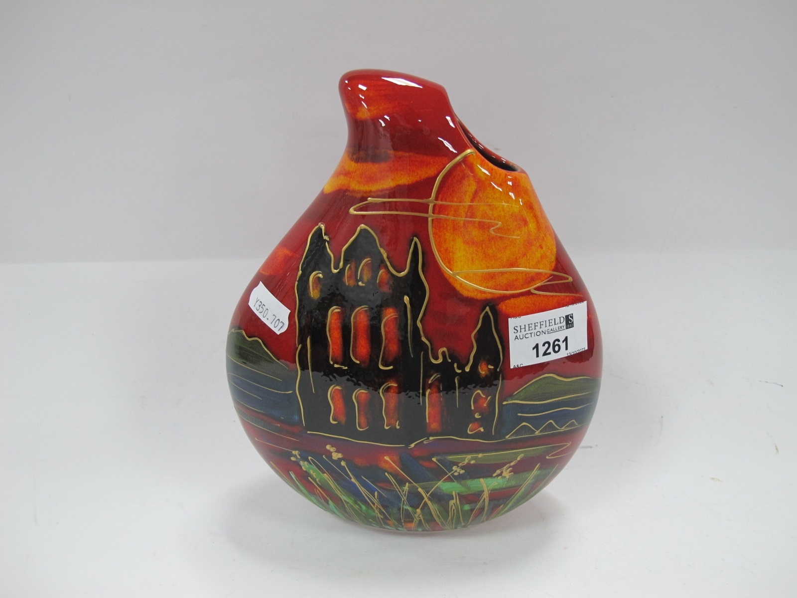 Anita Harris 'Whitby Abbey Sunset' Large Teardrop Vase, gold signed, 22cm high,