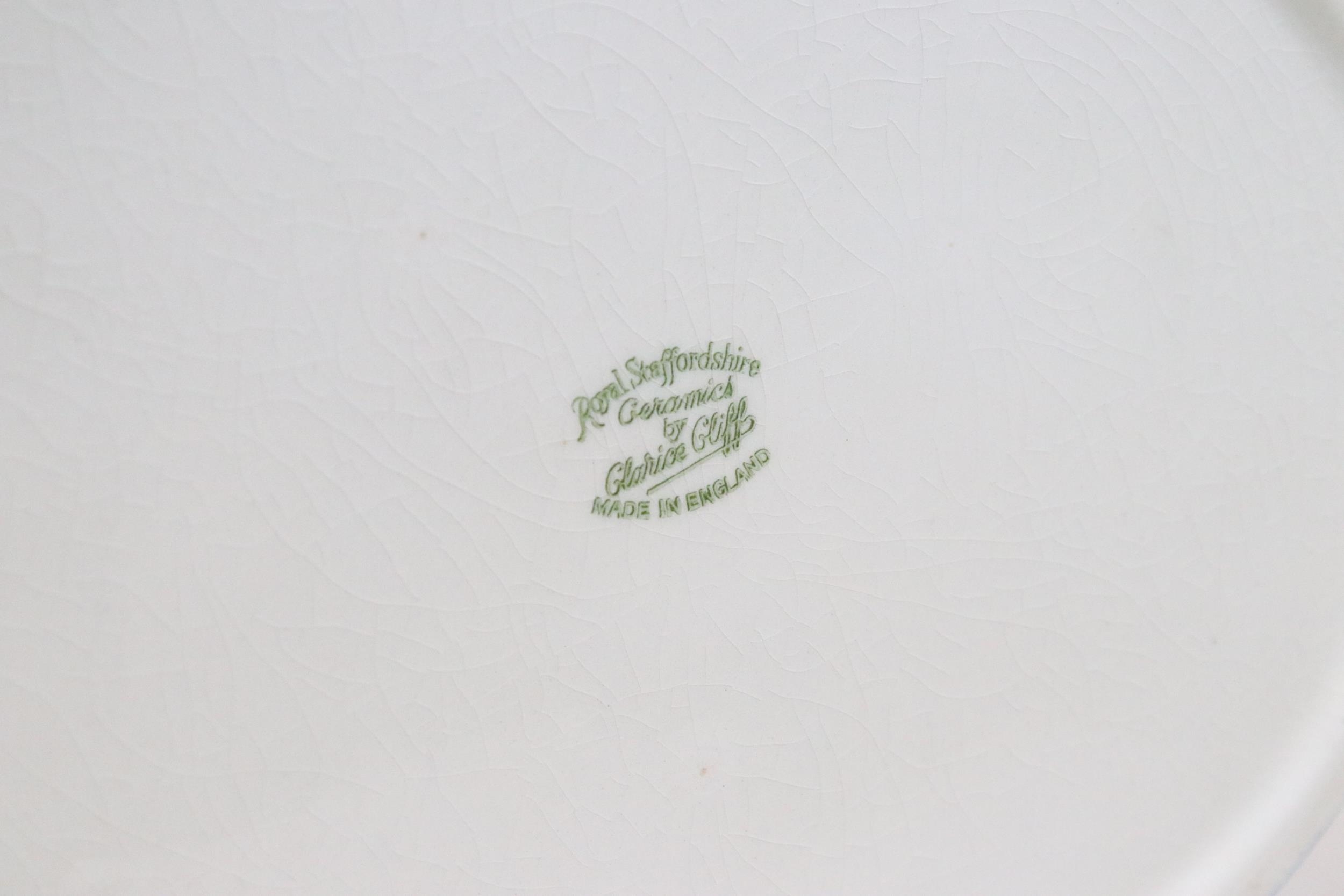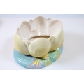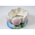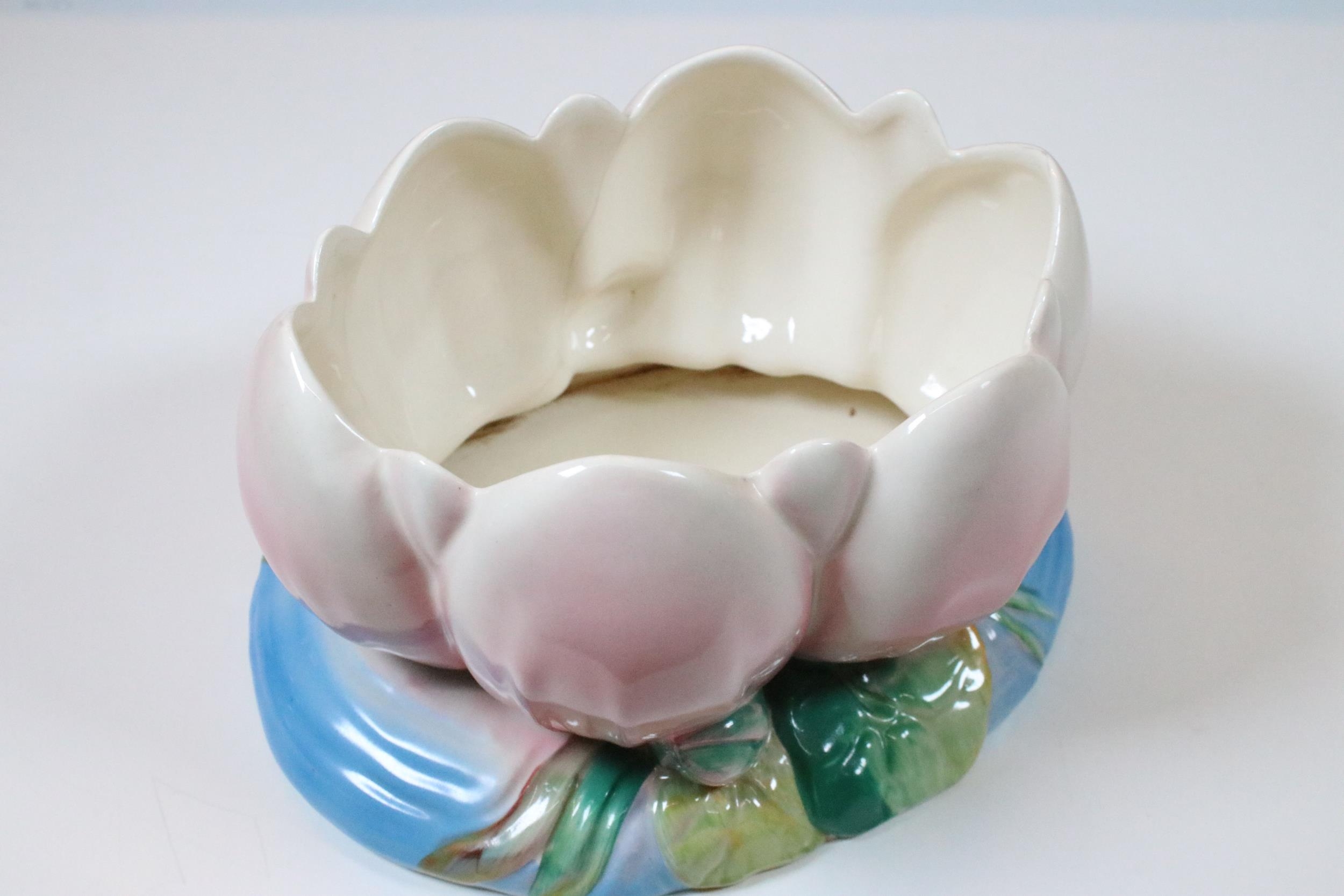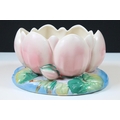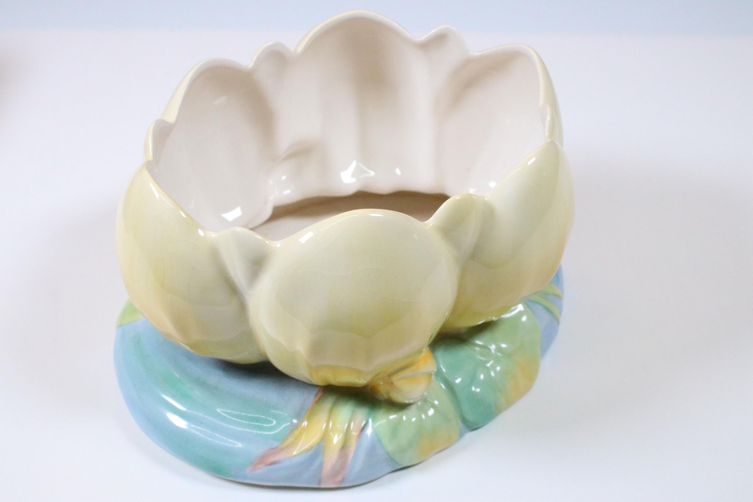 Pair of Clarice Cliff for Royal Staffordshire Ceramics Water Lily vases including one in a pink colourway and one in yellow. Measures 22cm wide.