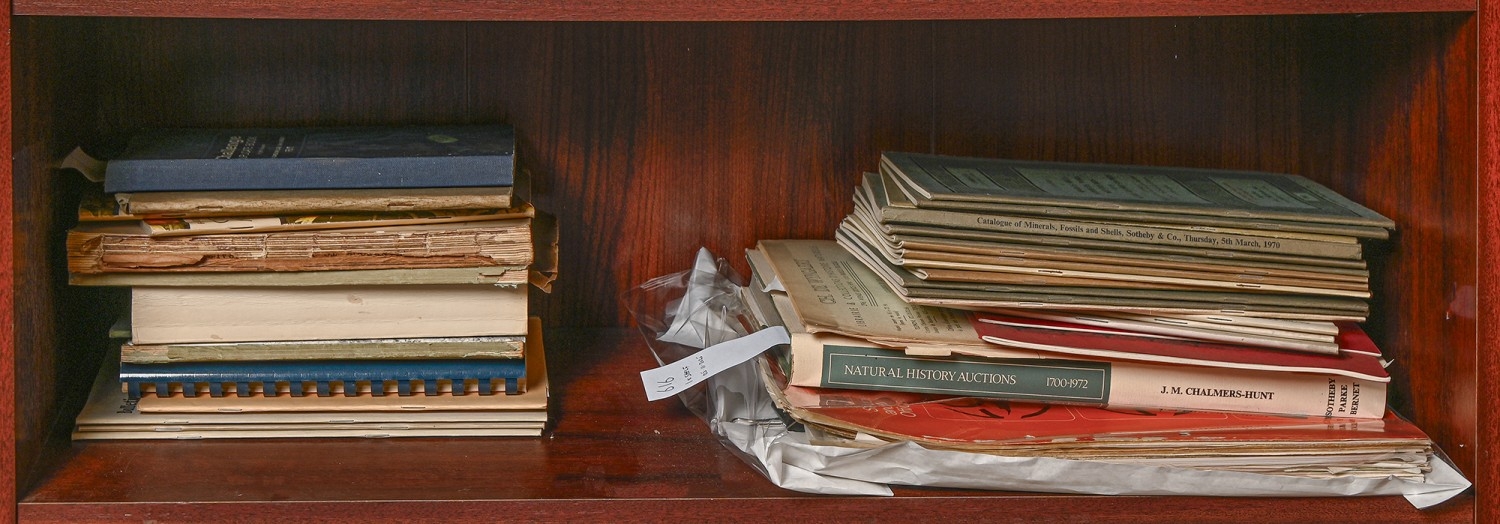 Geology. Mineral and natural history collections and collecting, mostly British, late 19th c and later, comprising fifteen Sotheby & Co auction catalogues, principally sales of mineral and geological specimens, 1960s/1970s, with material from the collections of the Dukes of Northumberland, the Drury-Lowes of Locko Park, The Trustees of The Warwick Castle Resettlement, and others, original wrappers, 8vo; Chalmers-Hunt's Natural History Auctions, 1700-1972, dj, hb, folio; two manuscript cash books for Robert Harker's Lythe Minerals; dealer's catalogues, Richard Tayler Minerals, Offa Rocks, David New, Gregory, Bottley & Co., etc; World Directory of Mineral Collections, [first] and second editions, 1974 & 1977, original wrappers, 8vo; British Museum: An Introduction to the Study of Minerals, 1888, original wrappers, 8vo; typed price list; etc