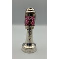 A silver & red glass novelty lighthouse table lighter, Grey & Co, Chester, 1911, stamped retailers mark 'W Thornhill & Co, 44 New Bond Street, 14.5cm. high.