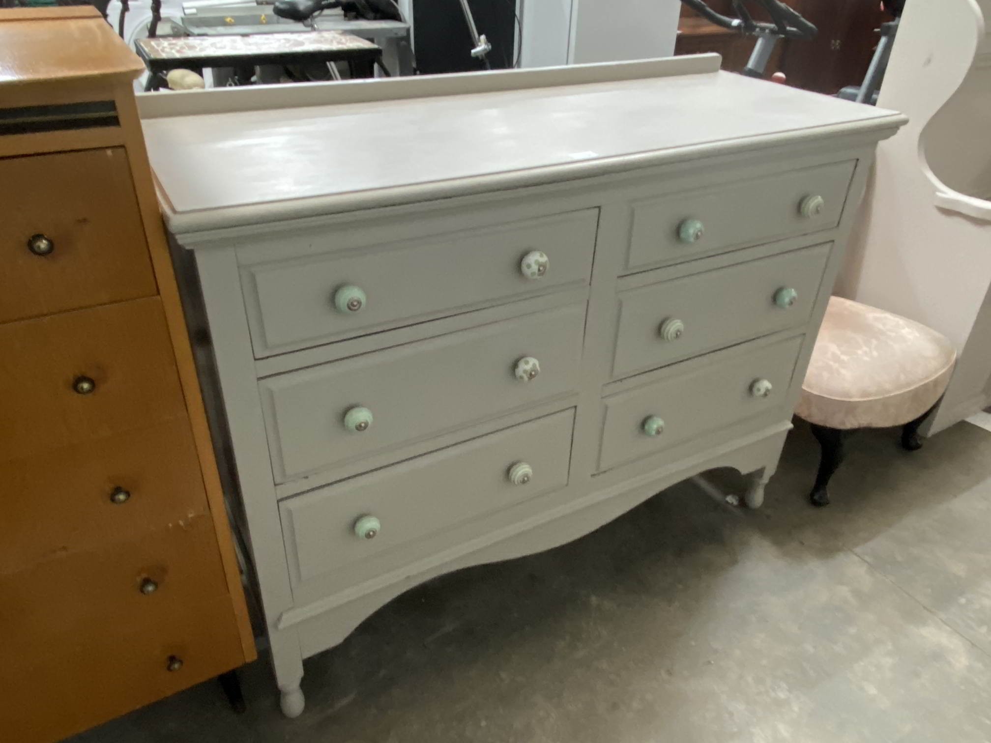 Painted pine six drawer chest 95H 120W 45D