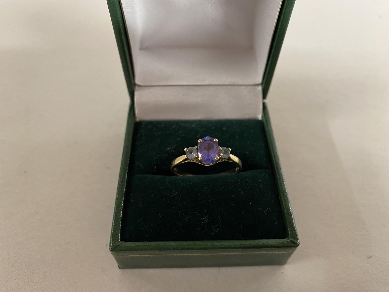 9ct Gold, Tanzanite & Blue Topaz Ring, size P