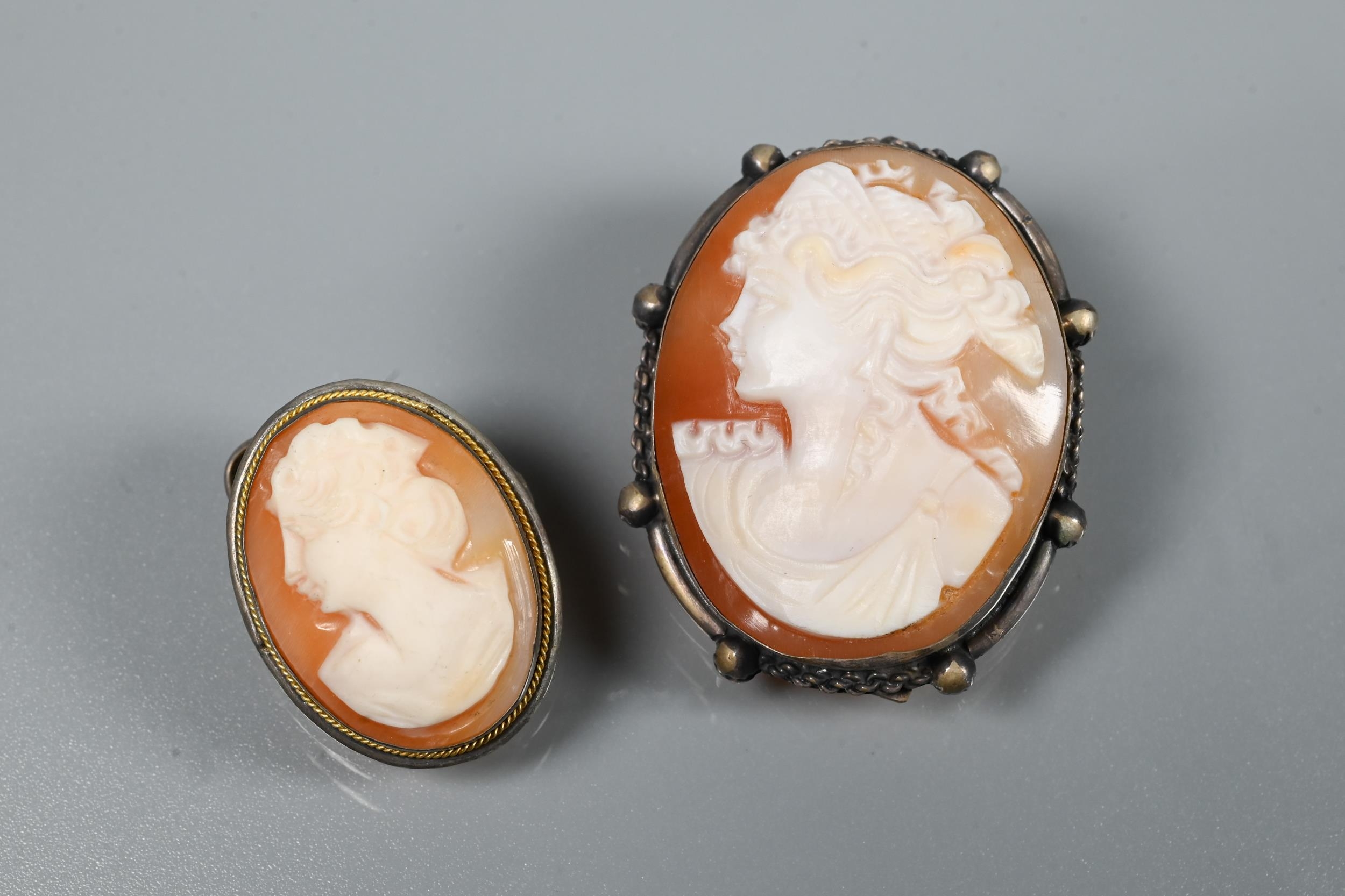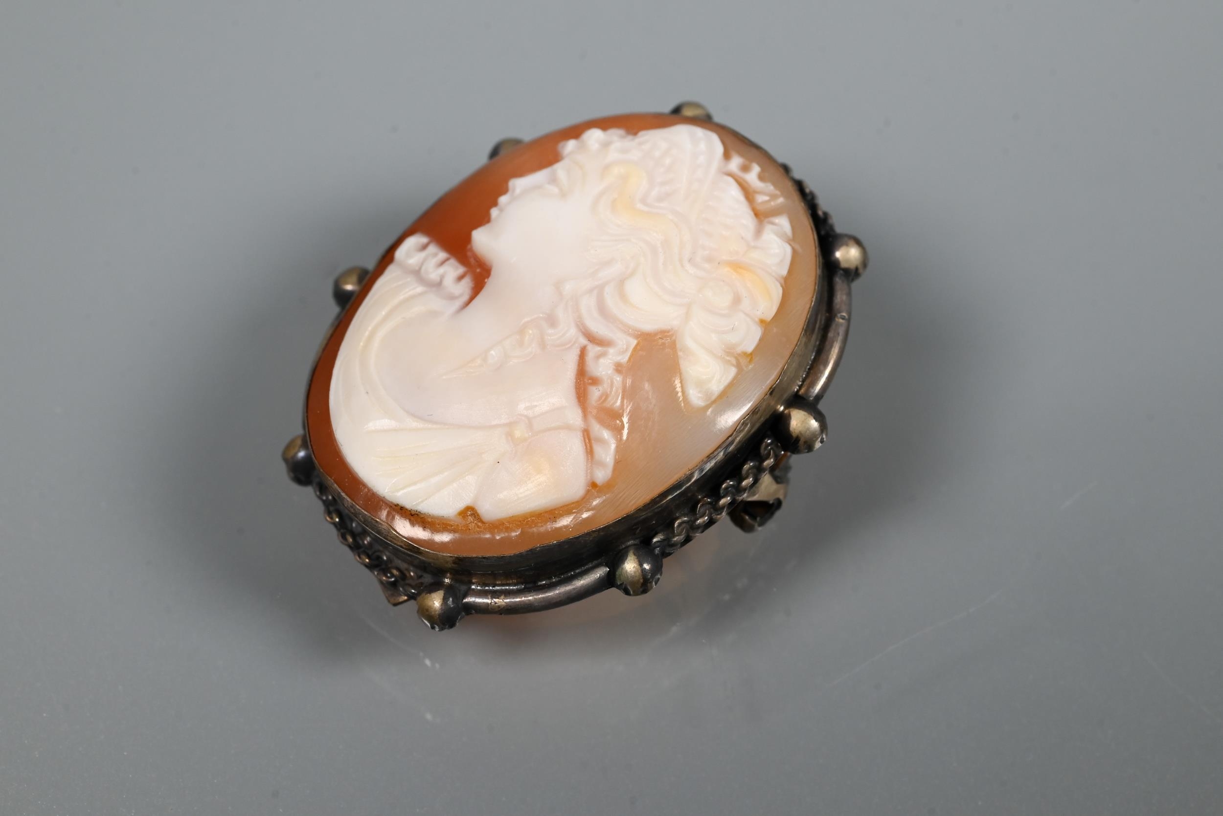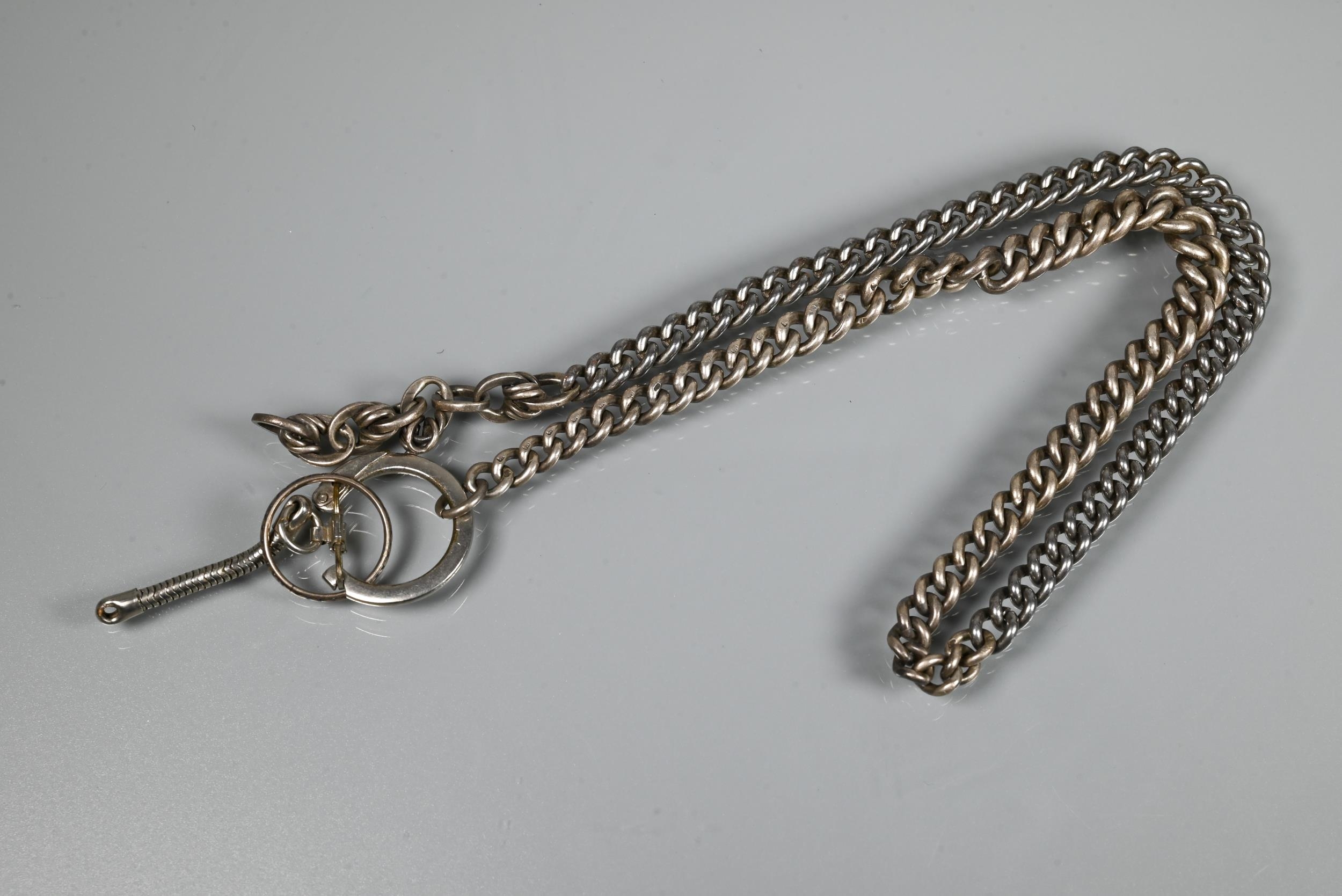 A Victorian silver graduated Albert, four various pairs of silver cufflinks, a silver mesh-link bracelet, two cameo brooches and a fine wedding band