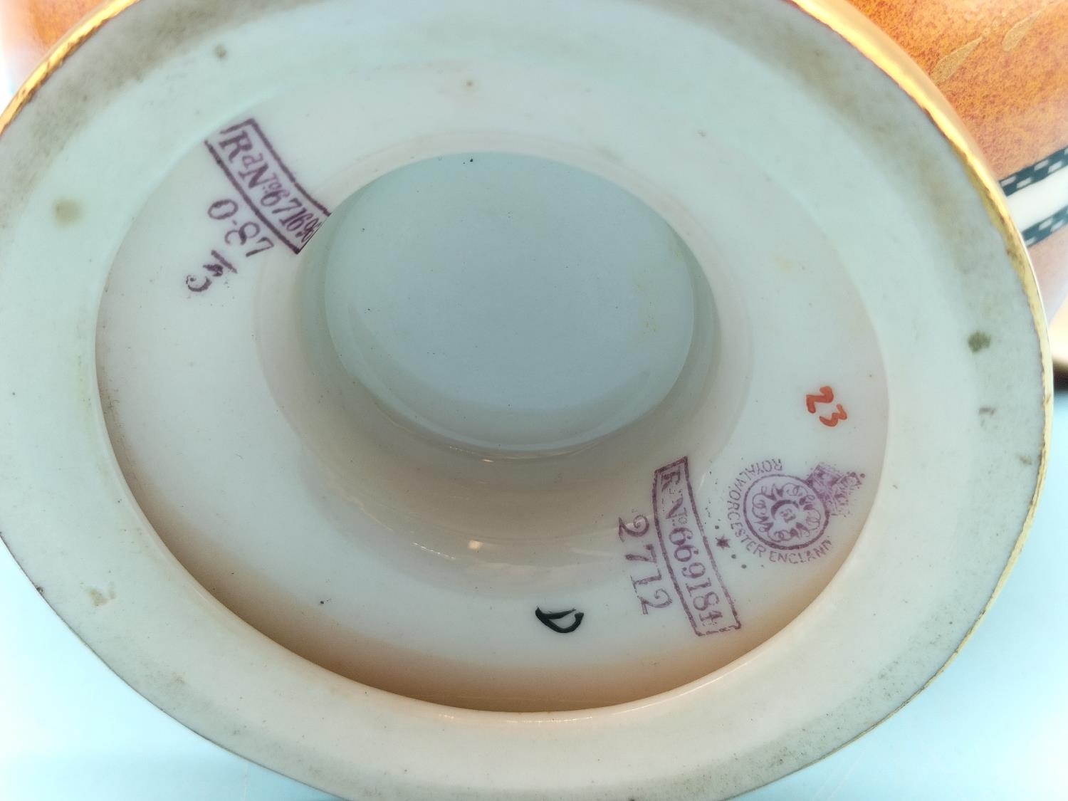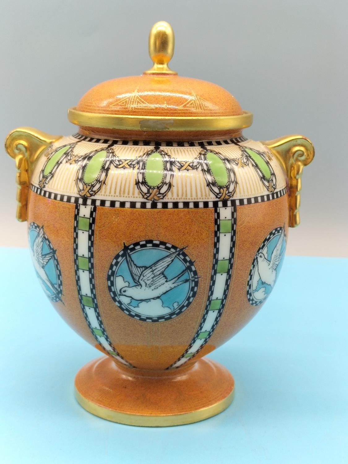 Royal Worcester 17cm Twin Handled Lidded Urn. Dated 1919. Small Nip to Rim.