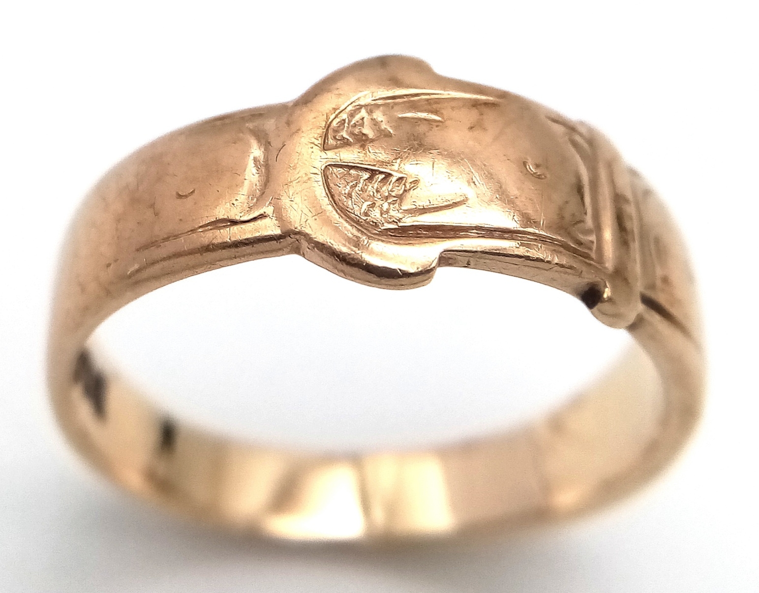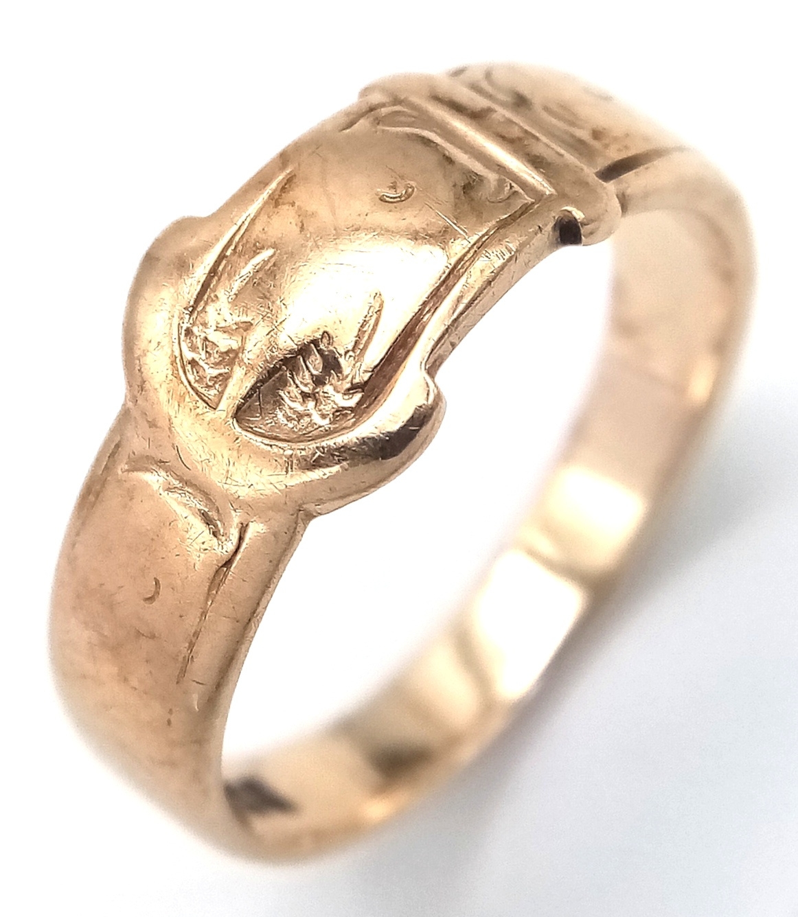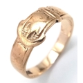 Vintage 9 CARAT GOLD ‘BUCKLE’ RING. Full UK hallmark. 3.2 Grams. Size M 1/2 - N.