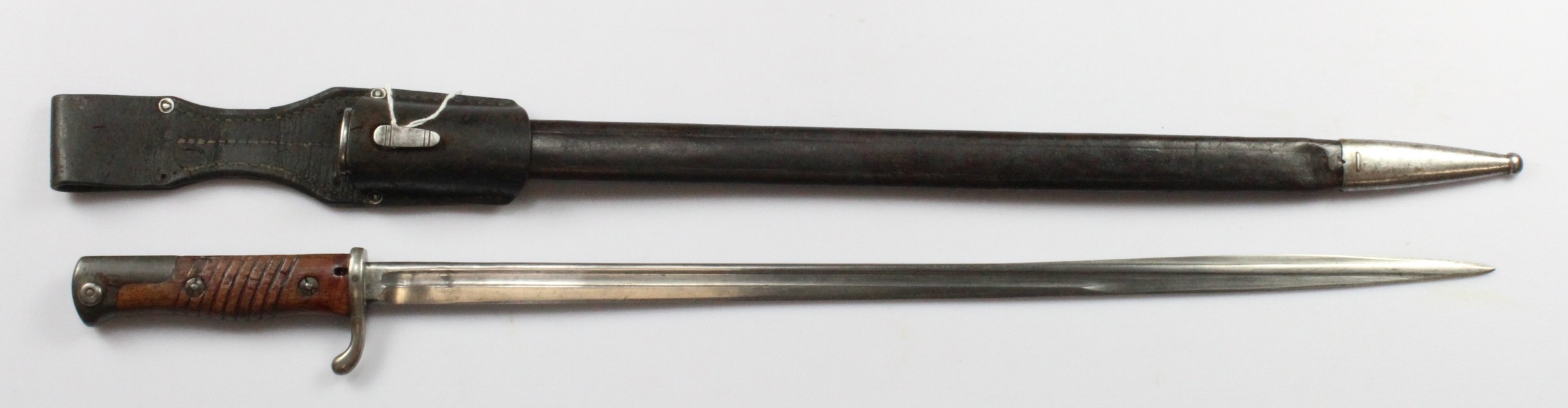 German Imperial German M1898 bayonet, scabbard unit marked. Simson 13.J2.51 01 on spine.