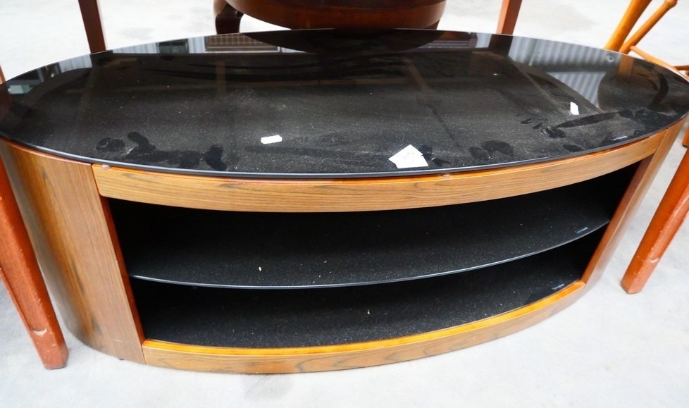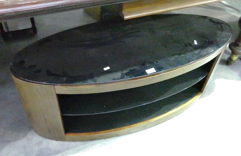 Oval Smoked Glass Tv Stand. L 111cm W 46cm H 43cm