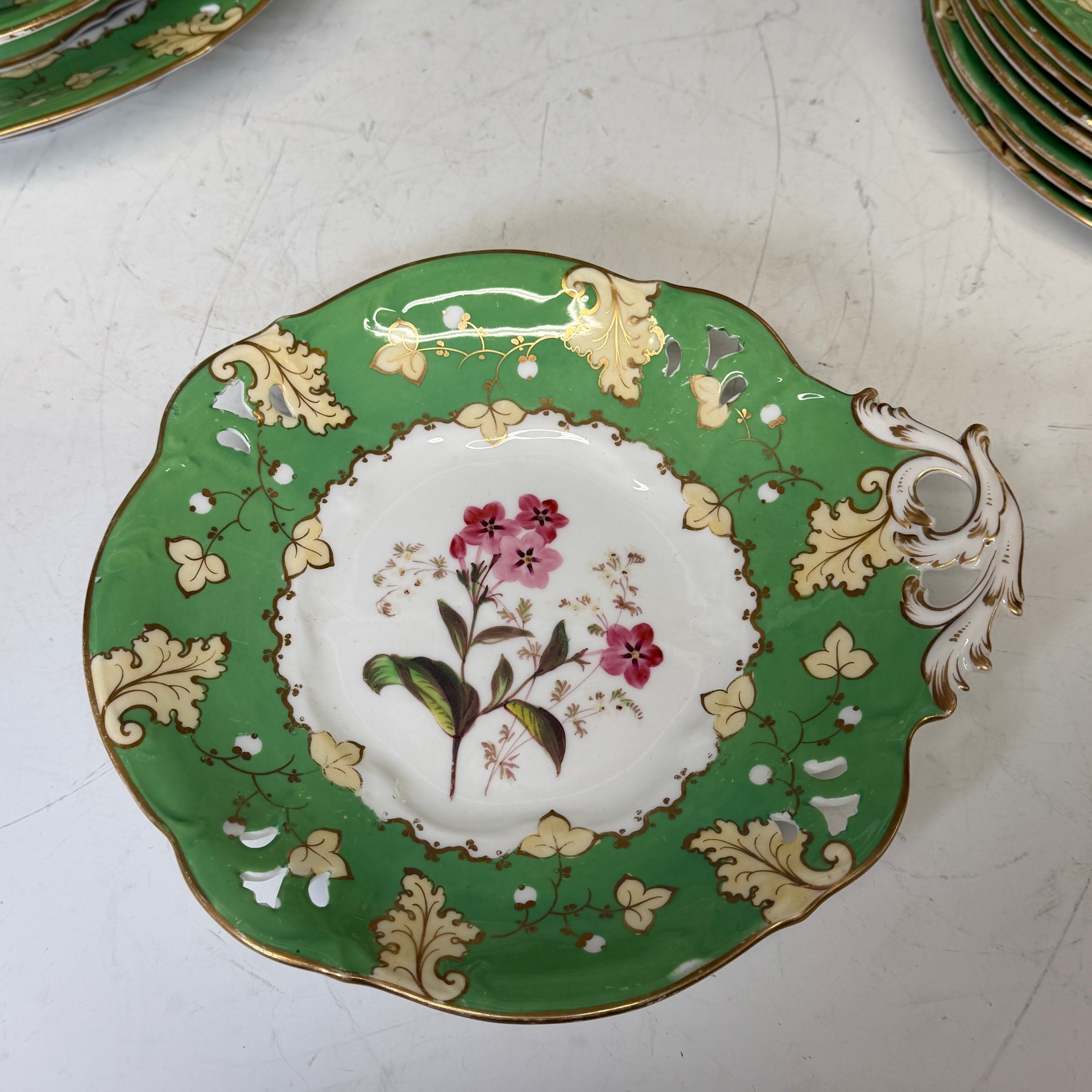 A Staffordshire apple green dessert Service, with pierced, floral, and foliate decoration. (14)