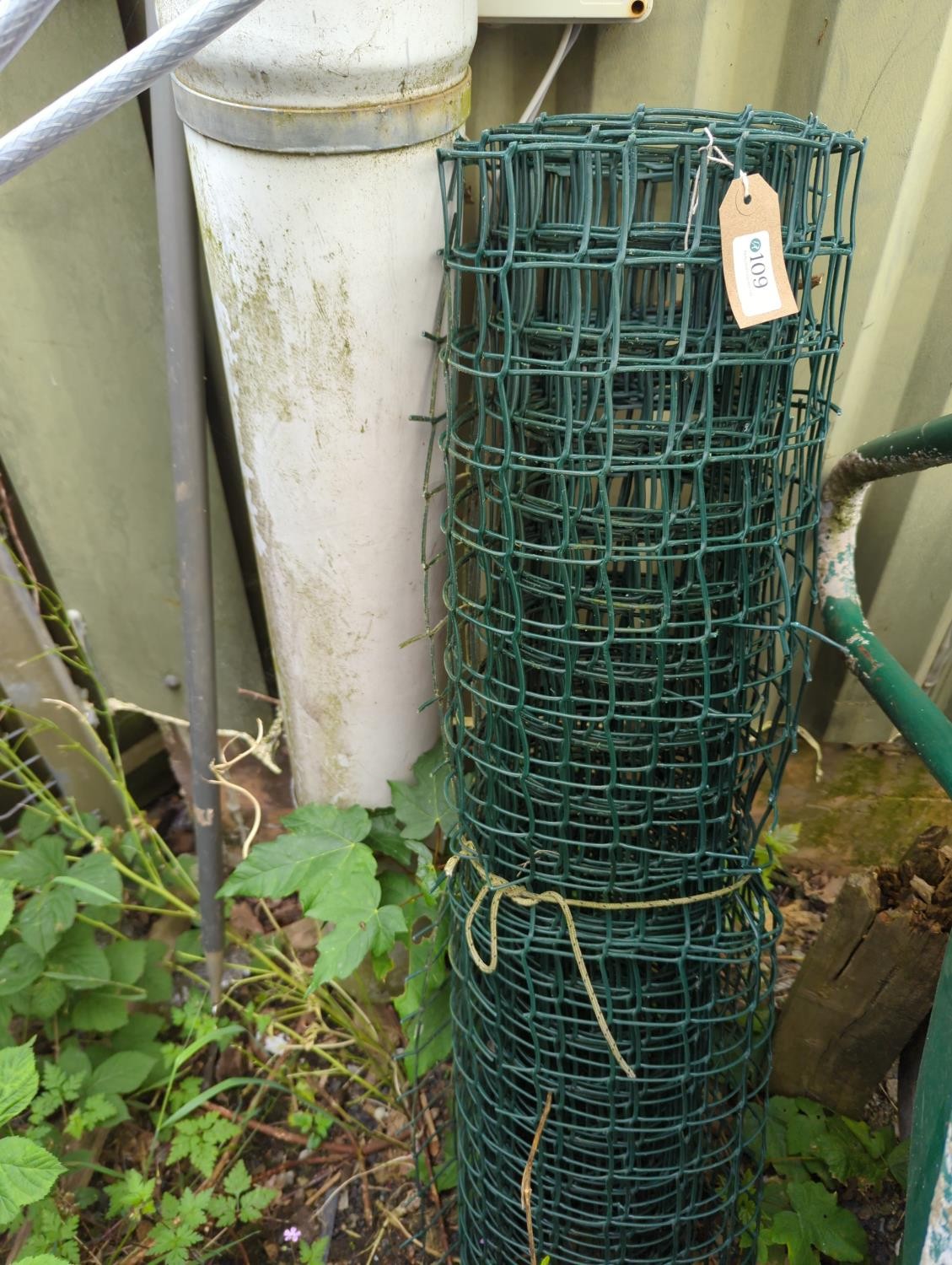 Green plastic garden fencing wire of unknown length. W104cm.