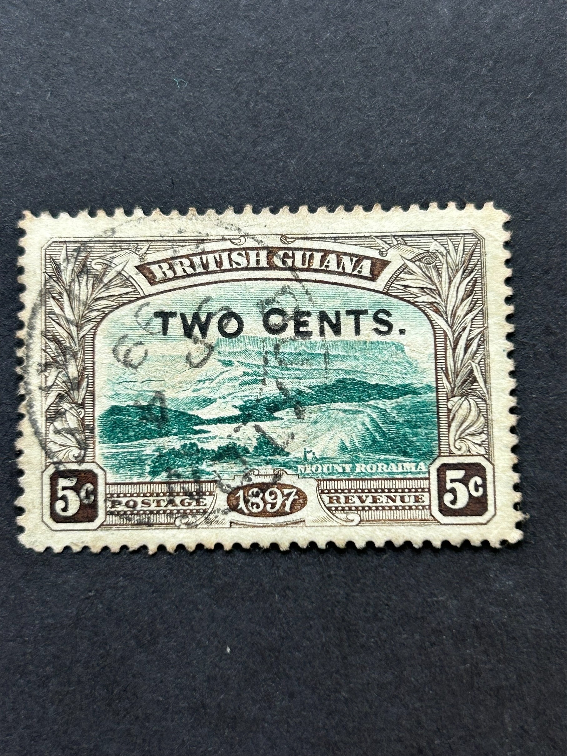 British Guiana 1899 2c on 5c used, raised C in cents SG 222 VAR. (1) (S)