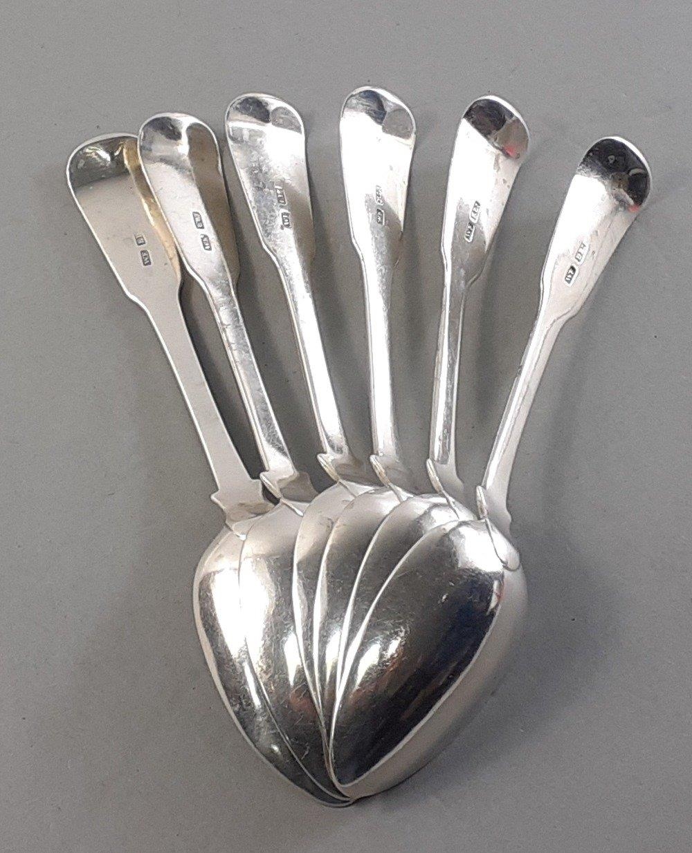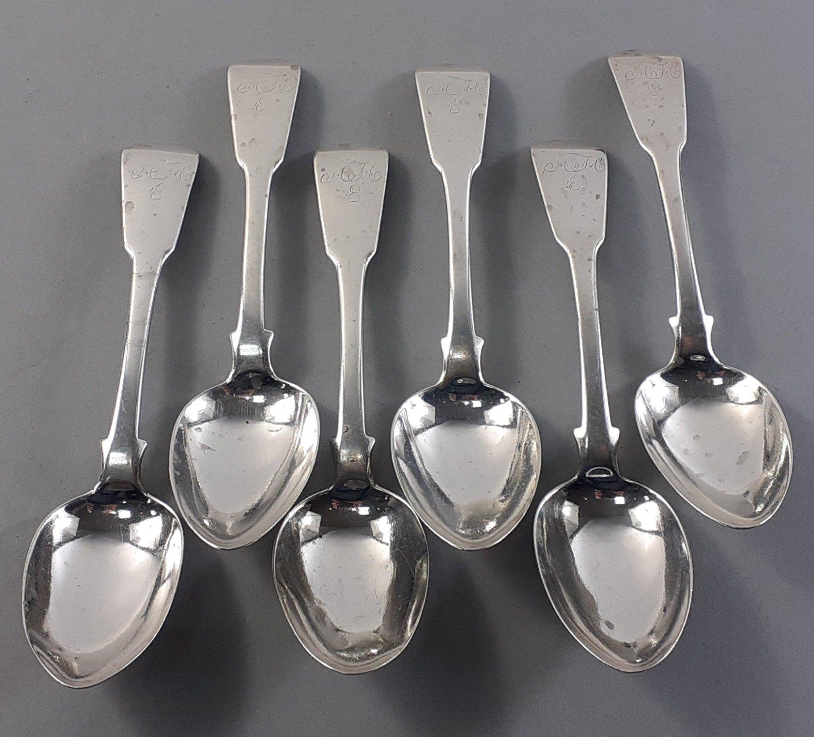 Six RARE ELGIN dessert spoons by WILLIAM FERGUSON each 17.5cm approx monogrammed on handle. Total weight 255g approx