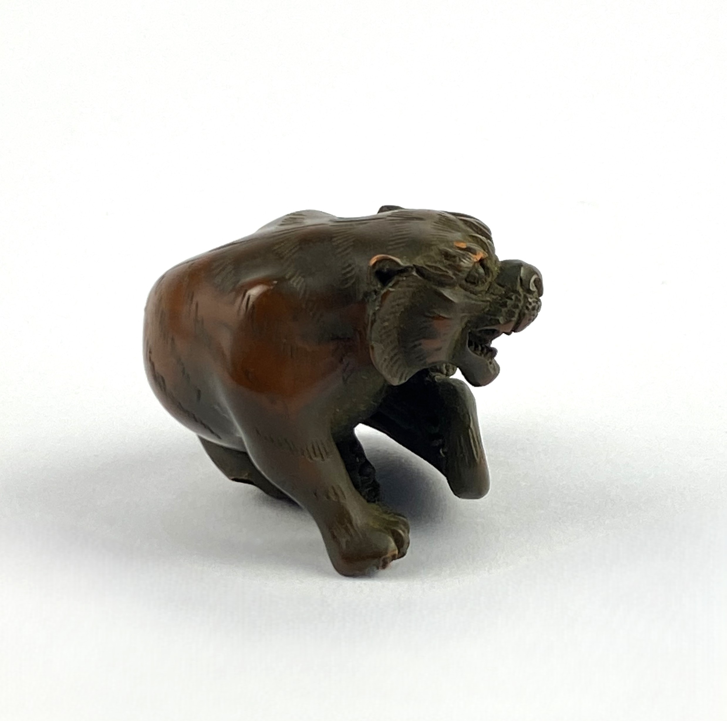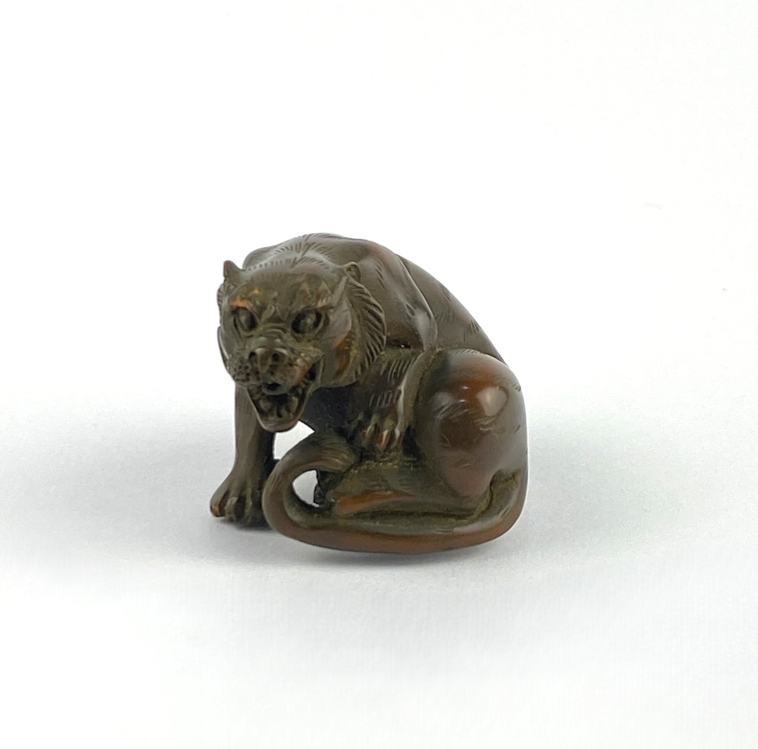 A Japanese carved netsuke in the form of a snarling tiger, 3.5cm high, 4.25cm wide