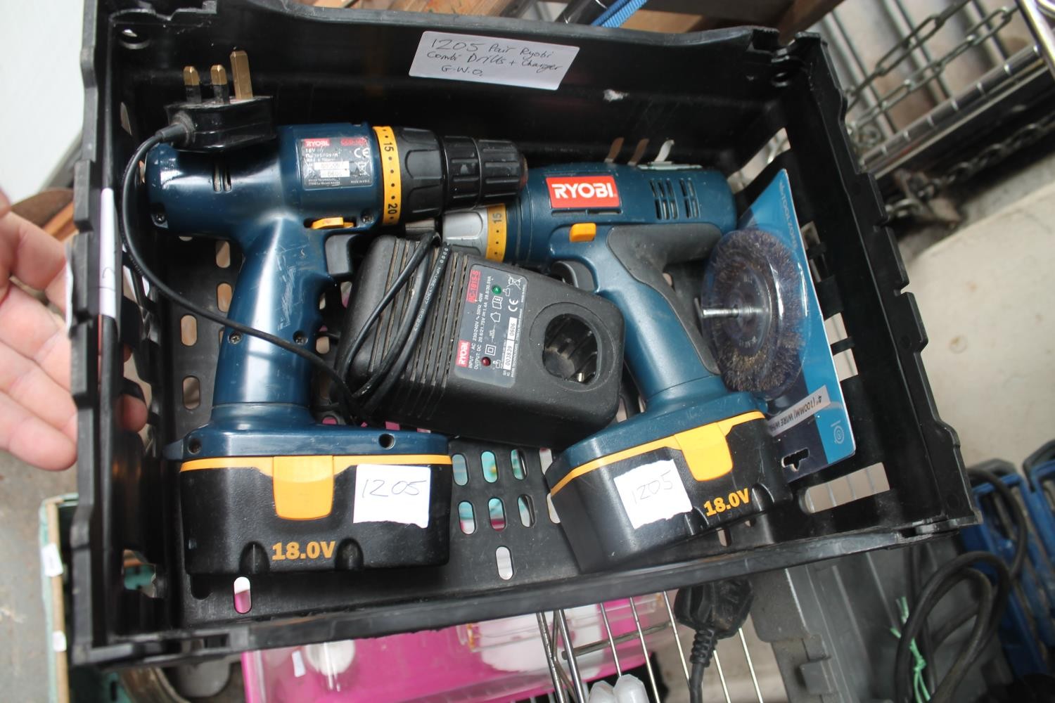 PAIR OF RYOBI COMBI DRILLS WITH BATTERIES AND CHARGERS ALL WORKING
