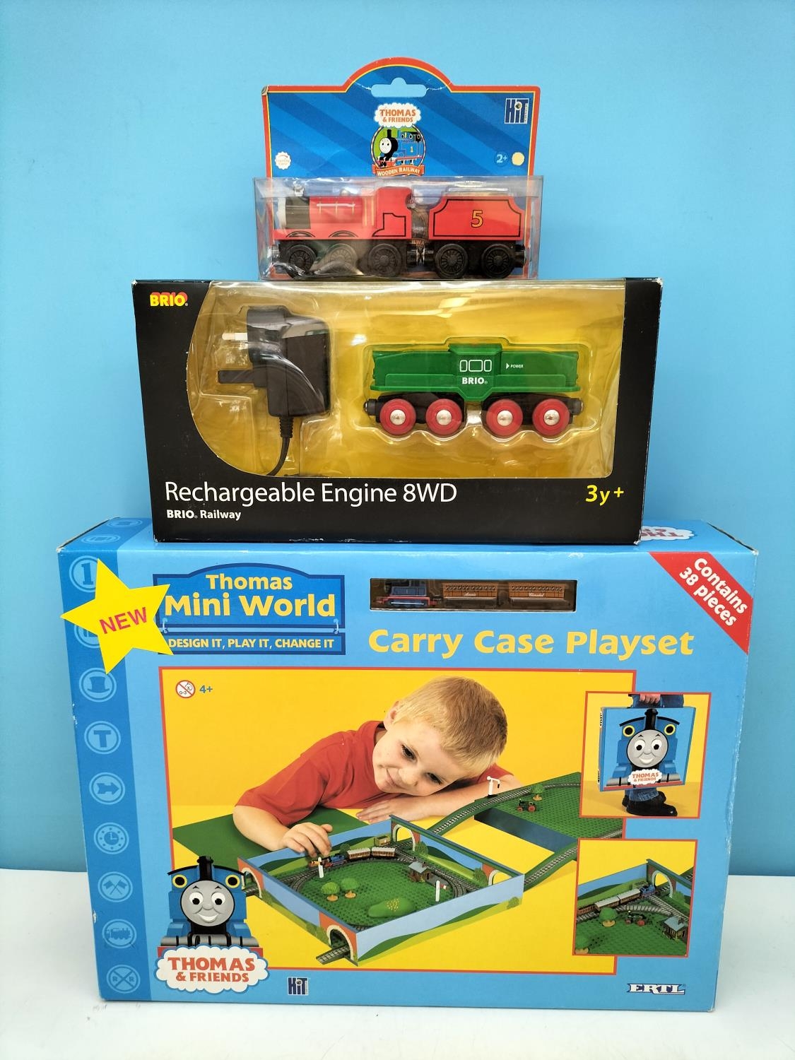 Vintage New and Sealed ERTL 'Thomas the Tank Engine' Mini World Train Carry Case Playset, James Train and Brio Rechargeable Engine. All Boxed.