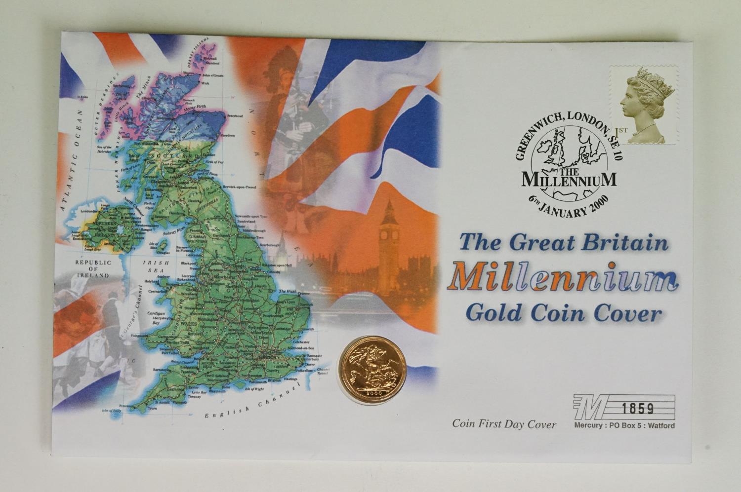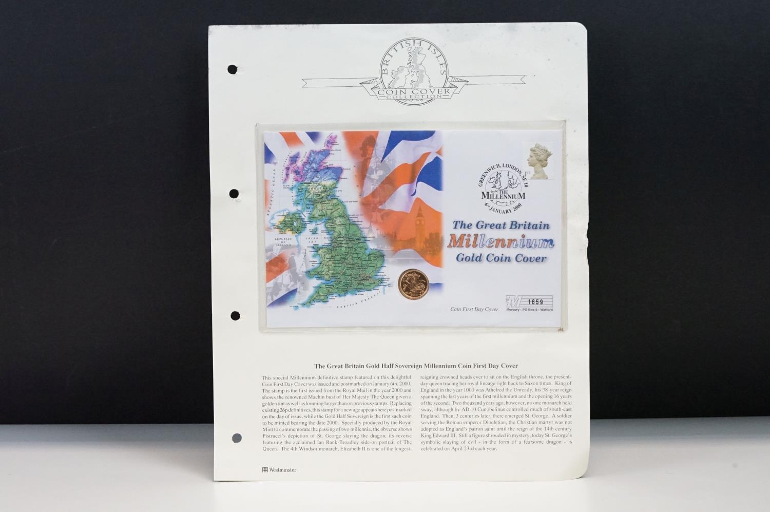 A British Queen Elizabeth II 2000 Millennium gold half sovereign coin cover