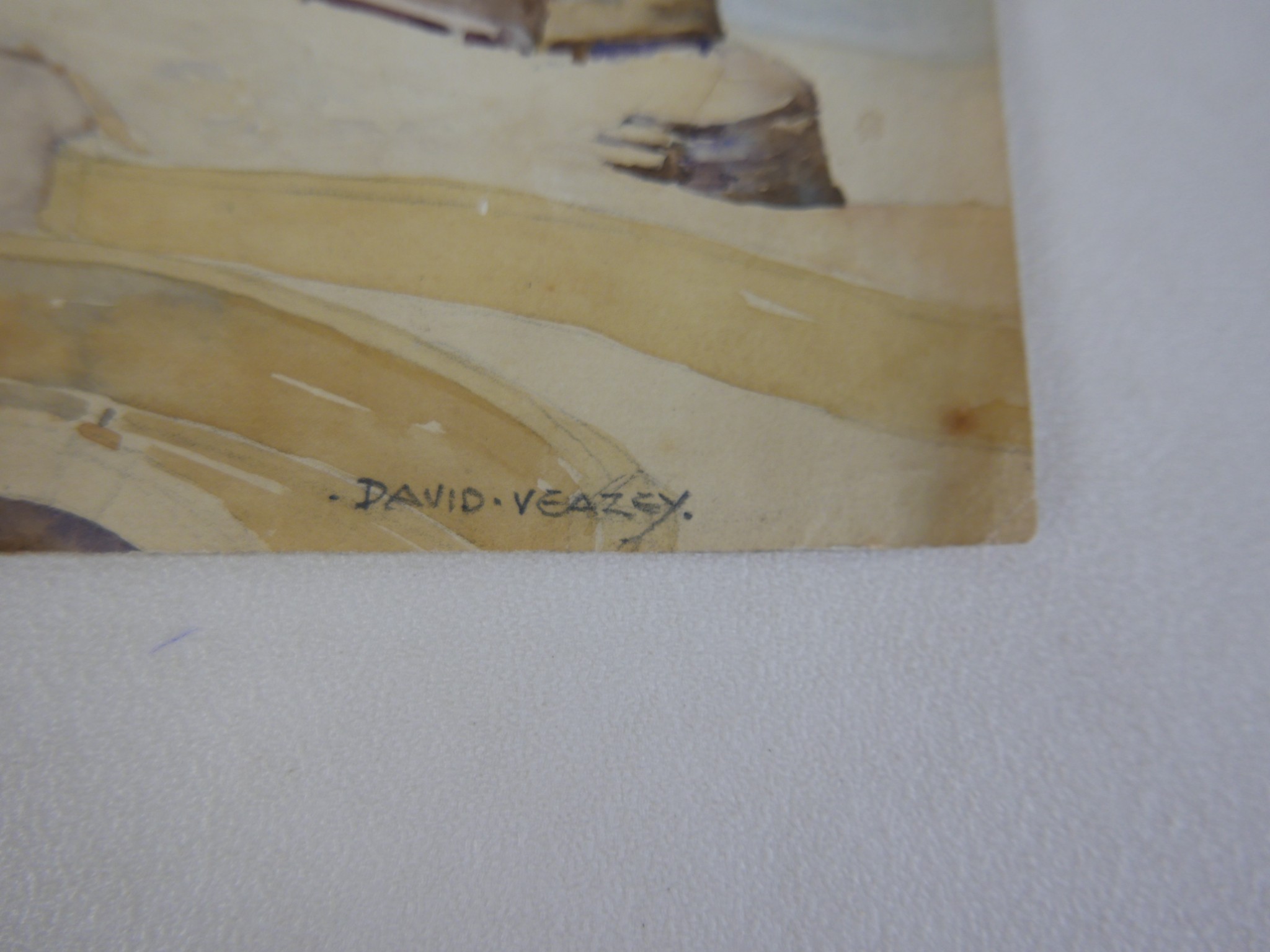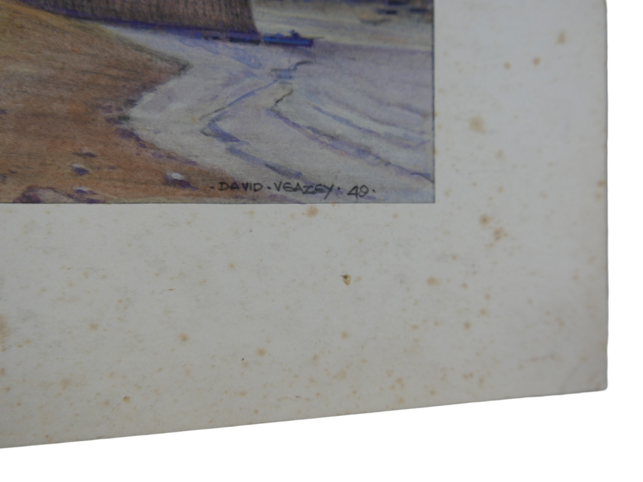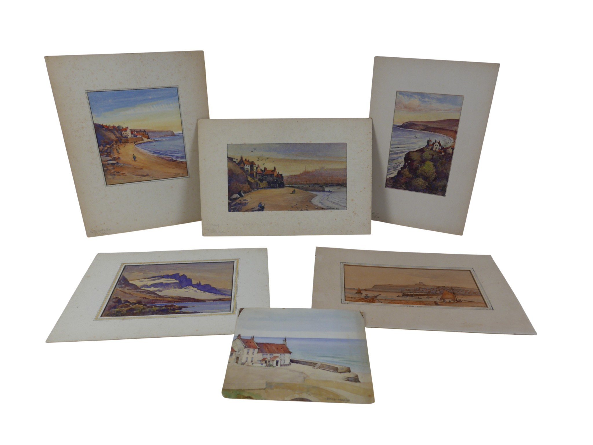 David Veazey: six assorted watercolours of British landscape subjects to include Views of Whitby Low Tide, two of Robin Hood's bay 40cm by 31cm, two untitled, all unframed (6)
