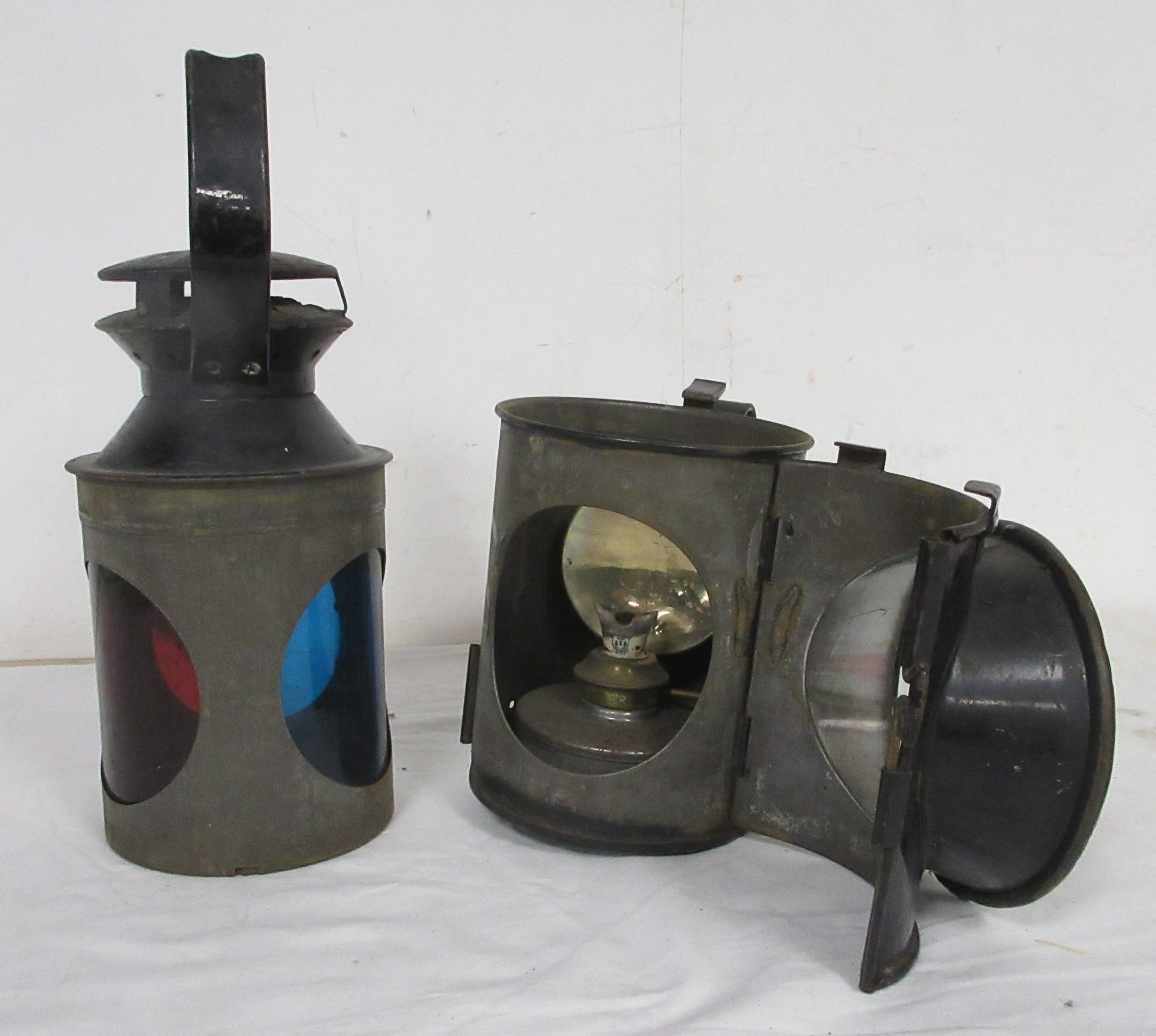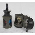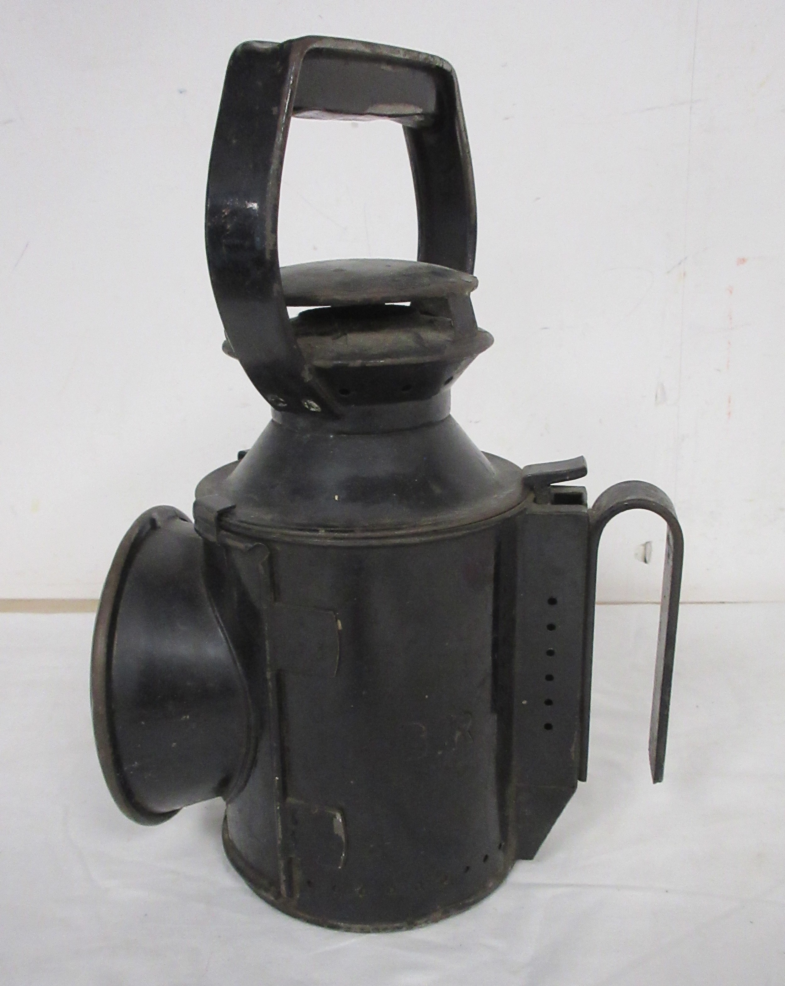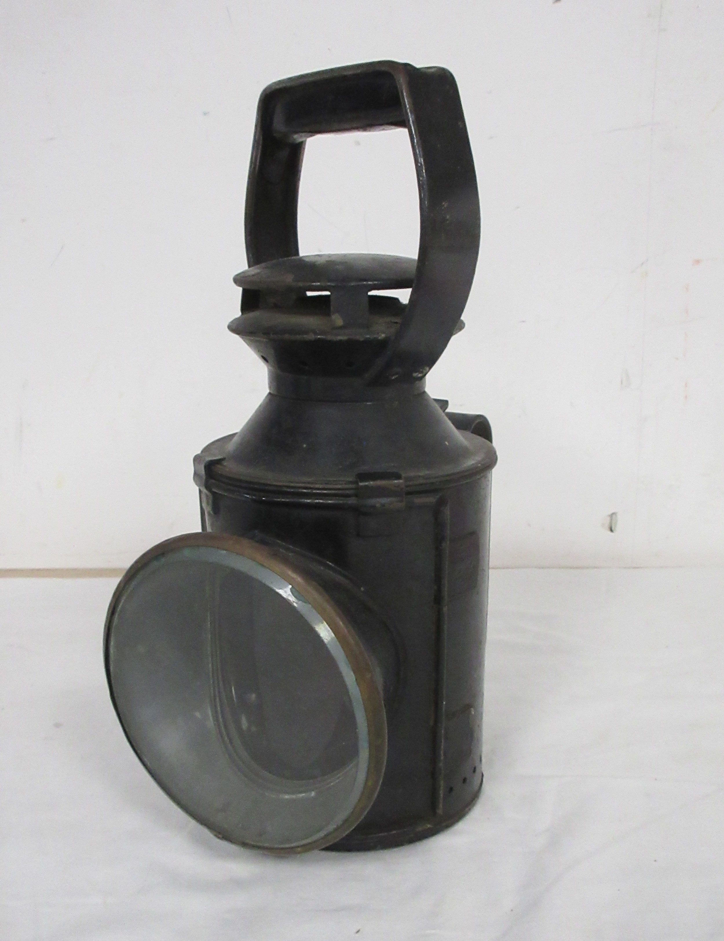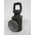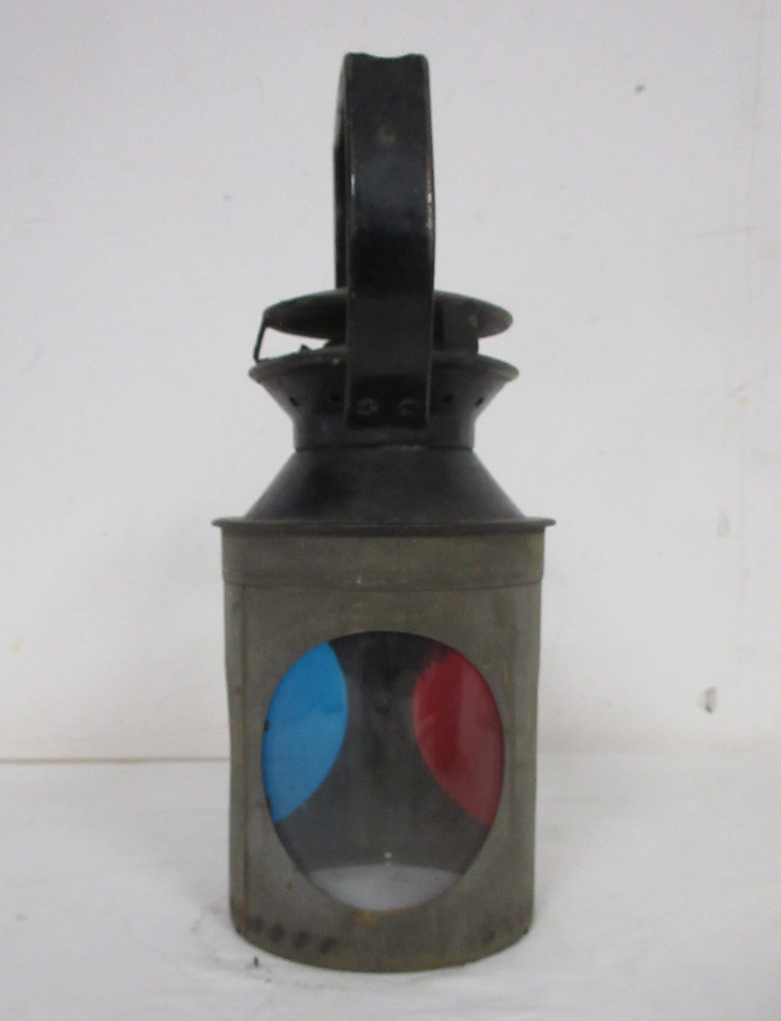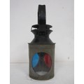 A vintage BR railway lamp in black, with burner and multi-coloured lenses, in very good cosmetic order