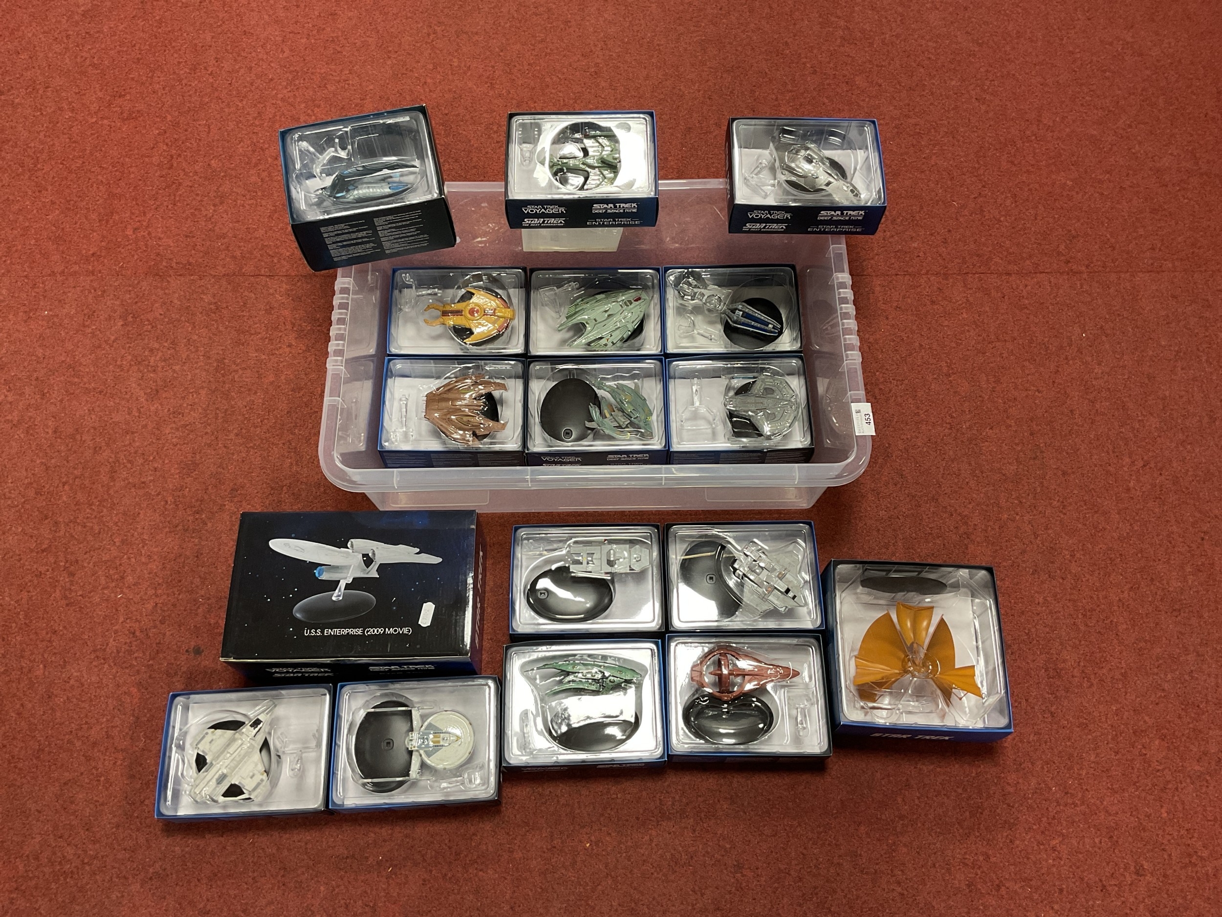 Seventeen Star Trek Diecast/Plastic Space Vehicles by Eaglemoss to include U.S.S. Enterprise (2009 Movie), Bajoran Lightship, Klingon Transport. Boxed.