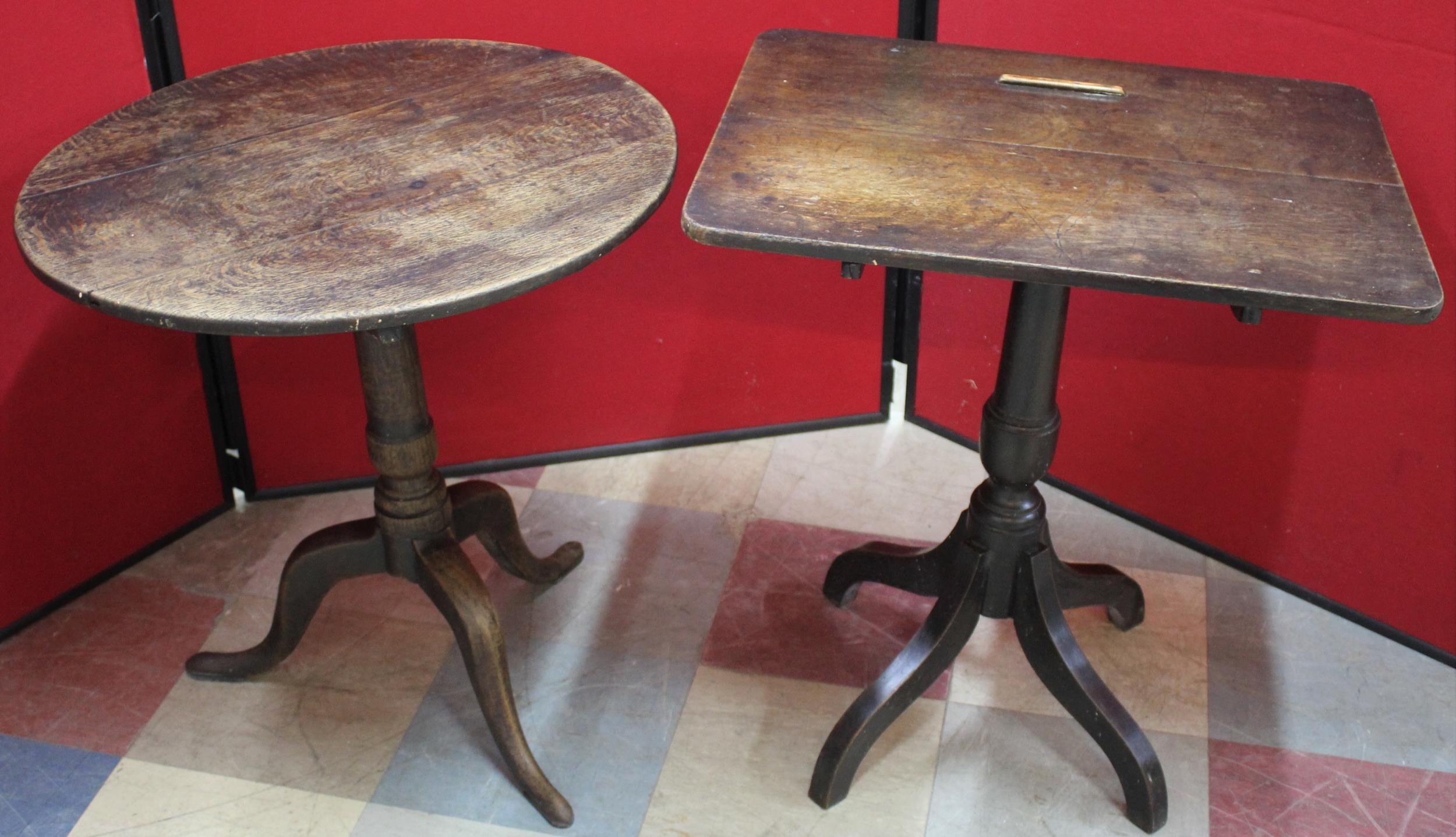 2 TRIPOD BASE TILT TOP TABLES