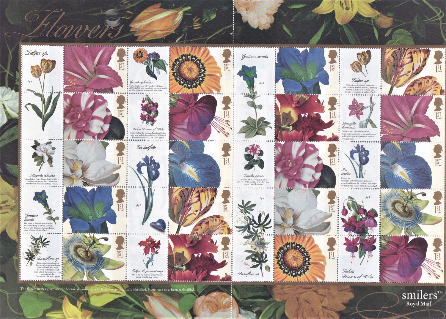Great Britain 2003 'Flower Paintings' P.O, Smilers Sheet, SG LS11, u/m mint