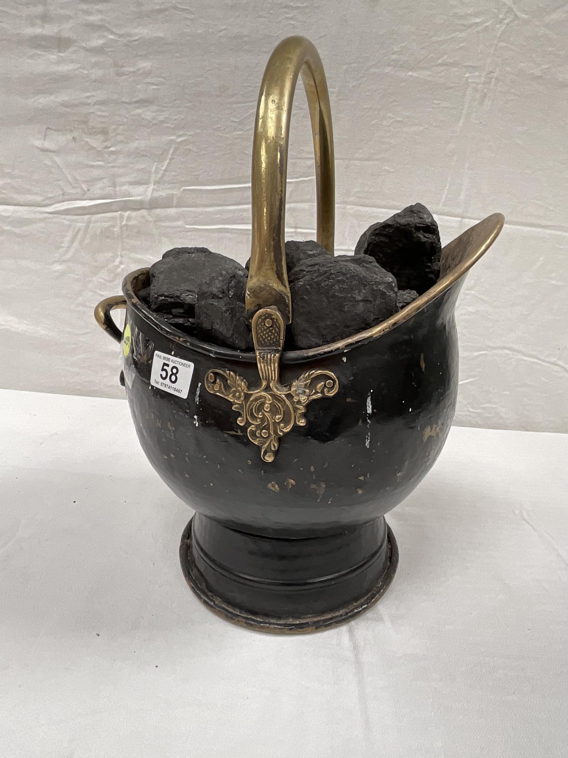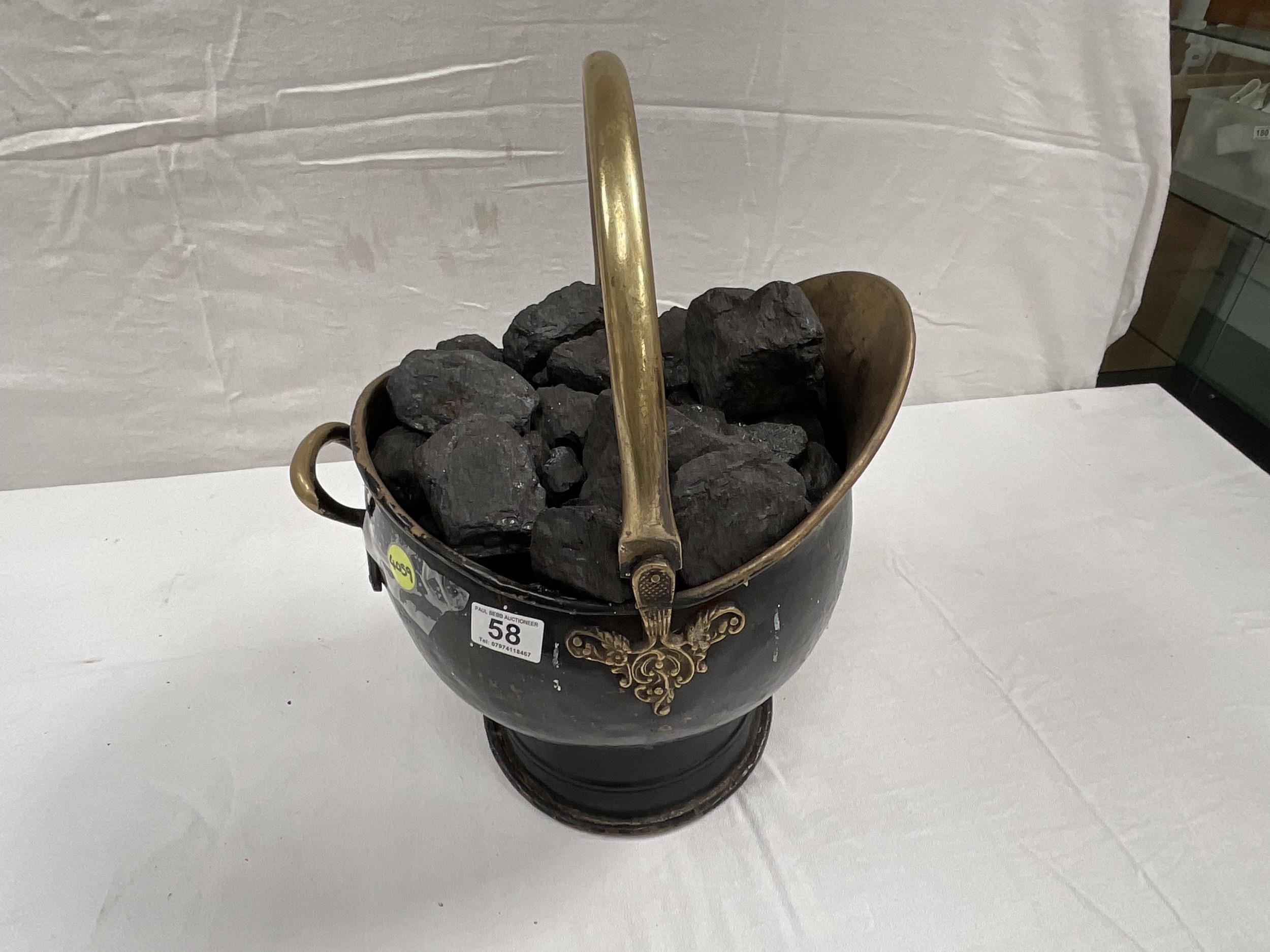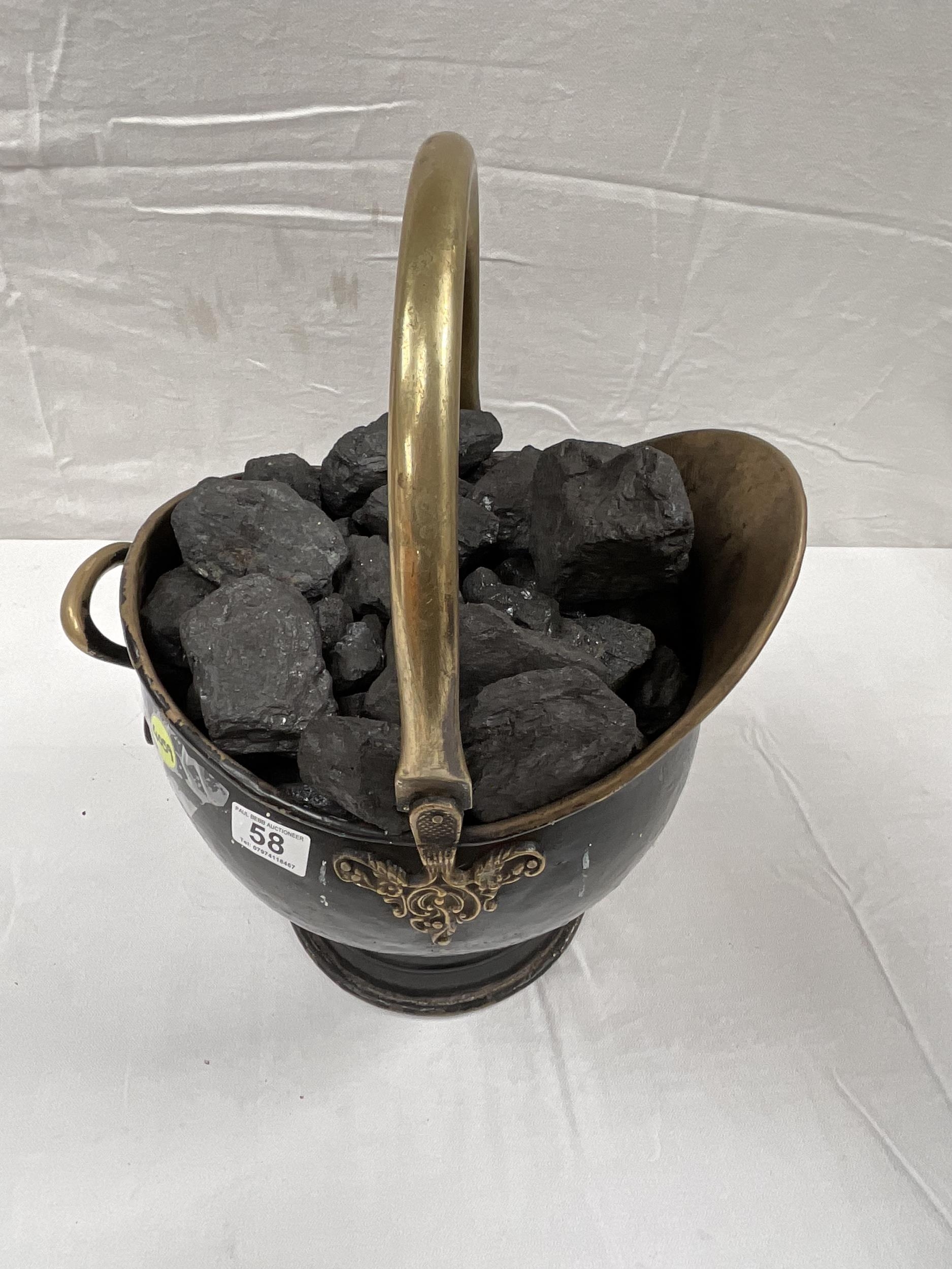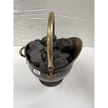 ANTIQUE STYLE BRASS COAL SCUTTLE FULL OF COAL H18"