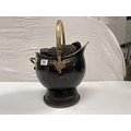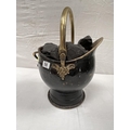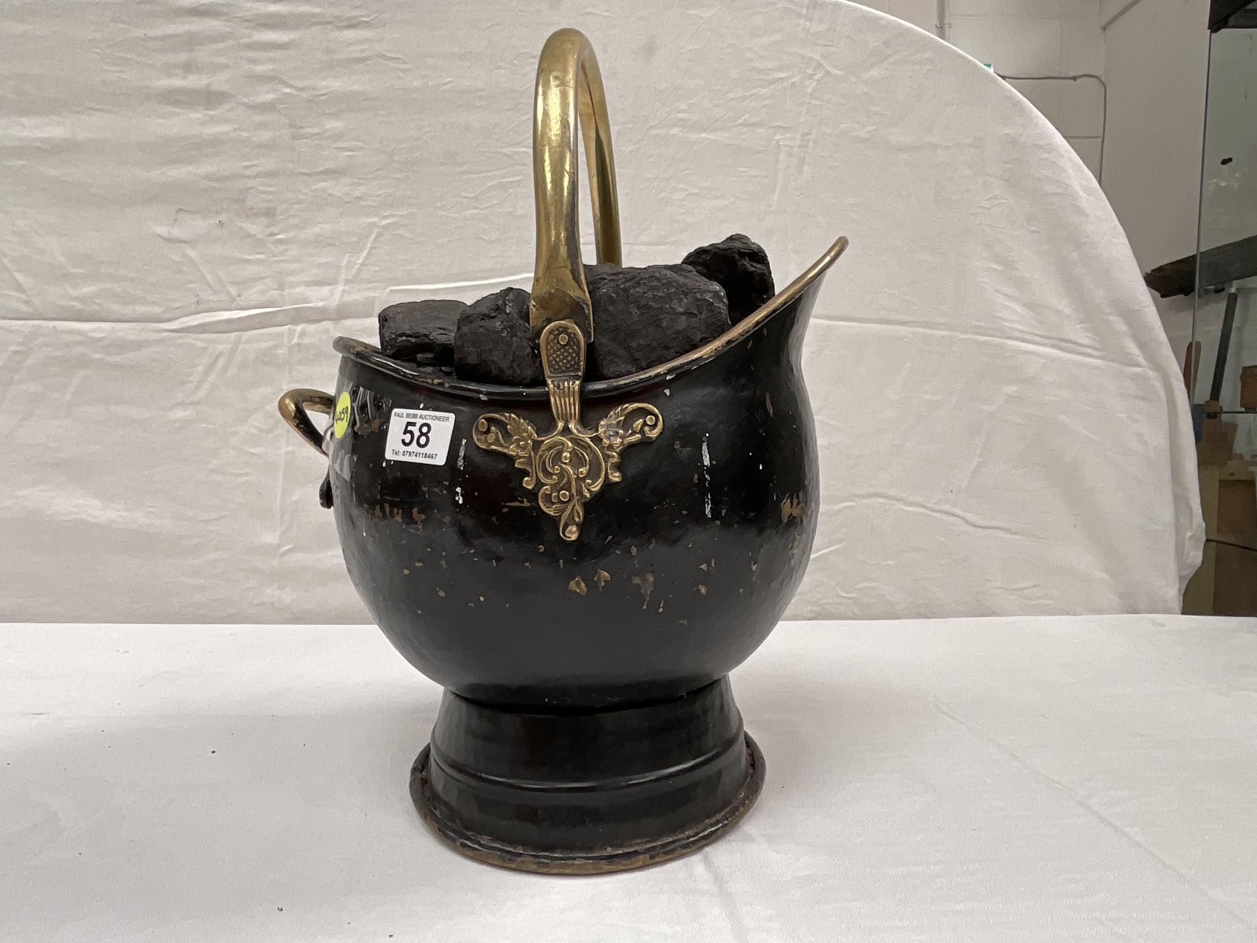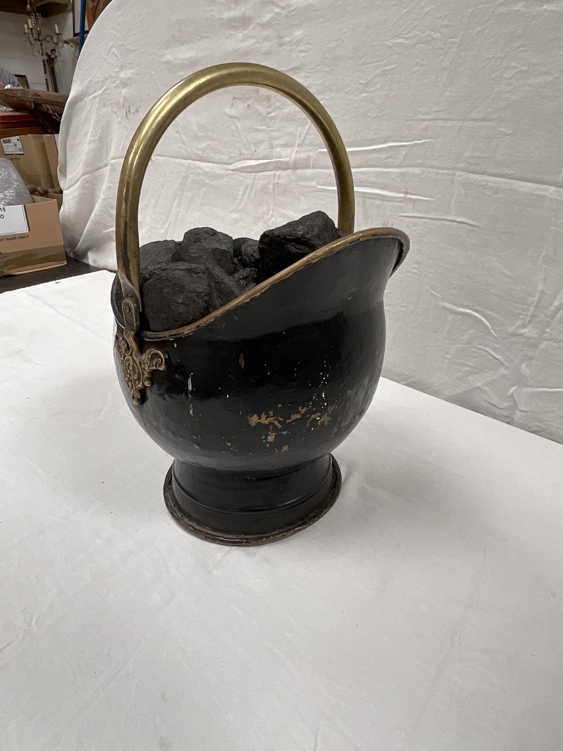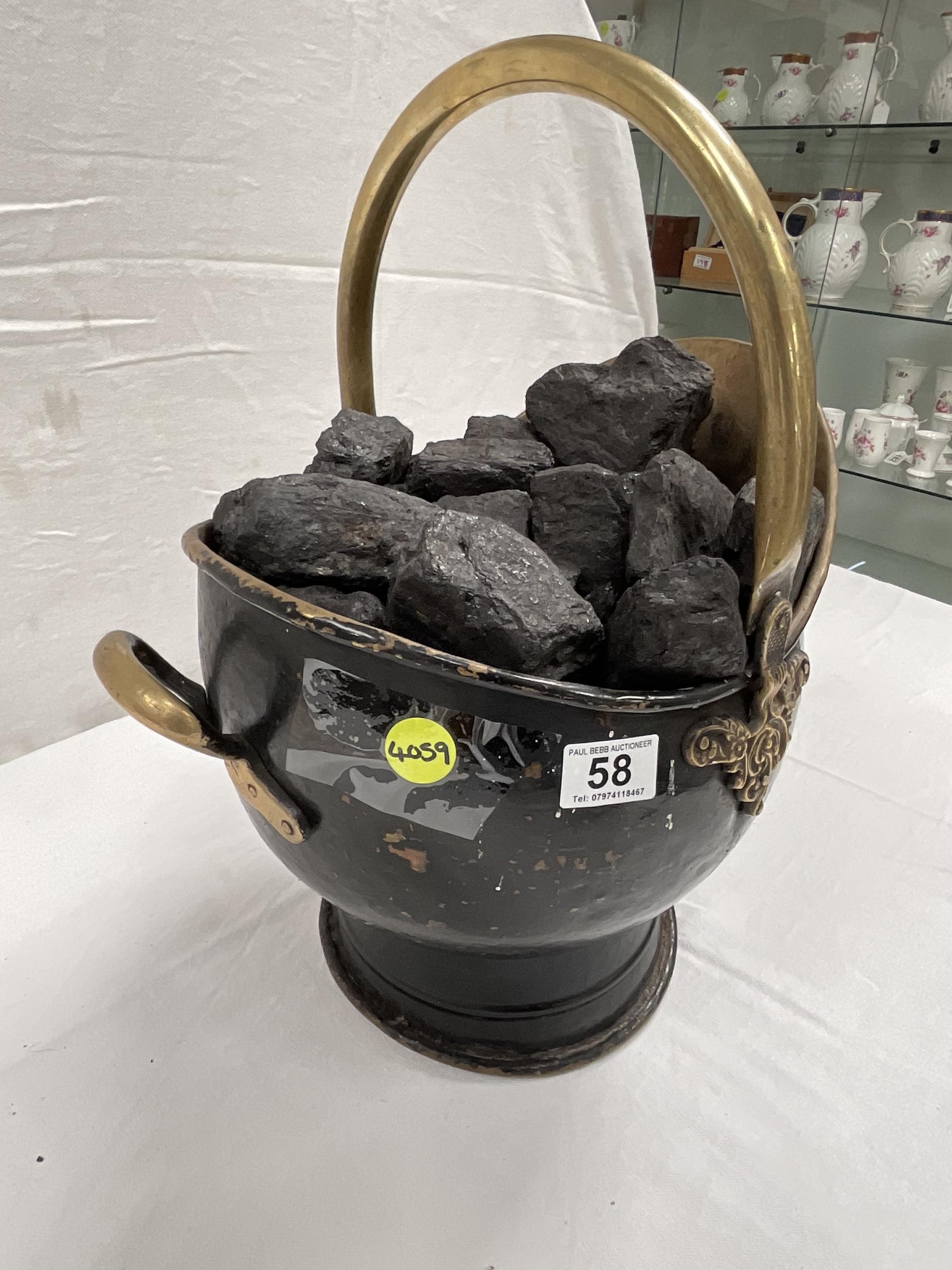 ANTIQUE STYLE BRASS COAL SCUTTLE FULL OF COAL H18"